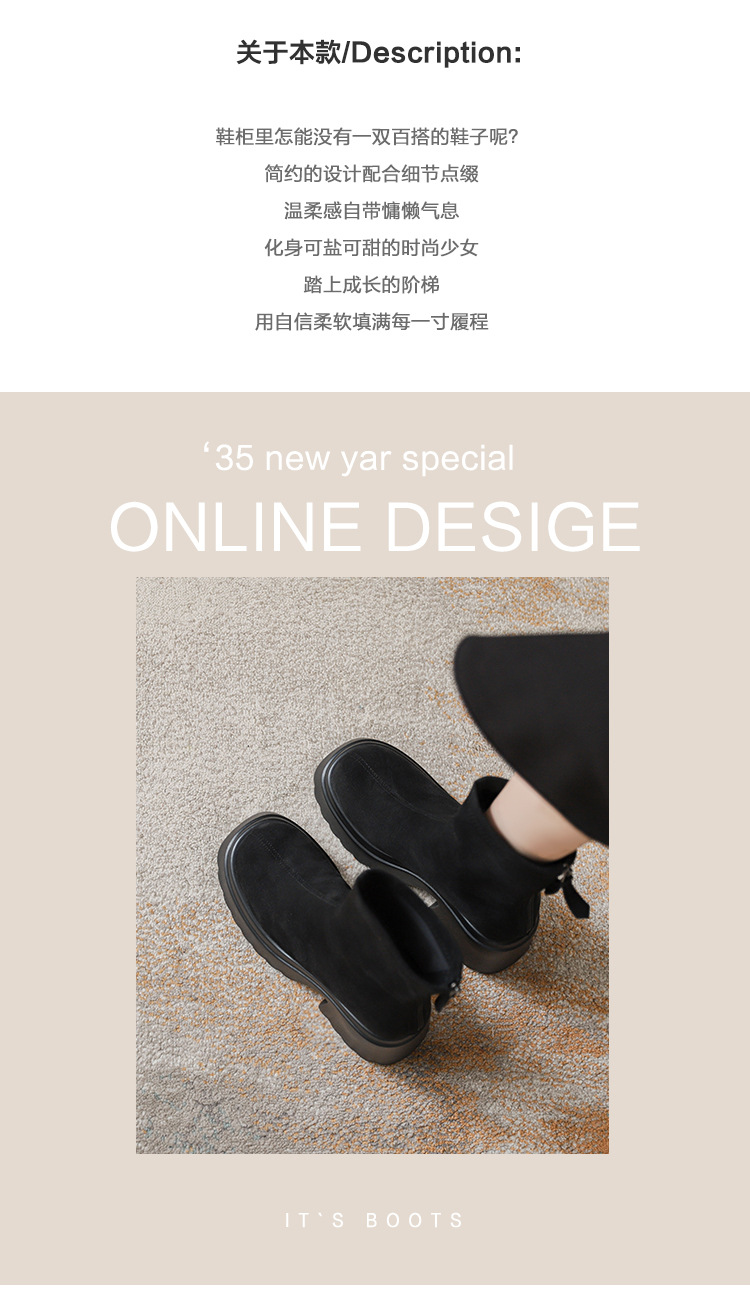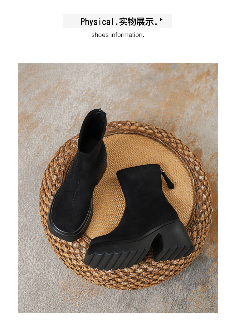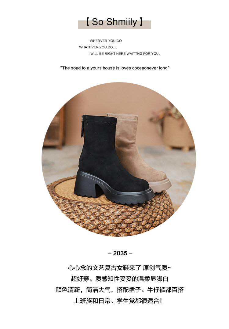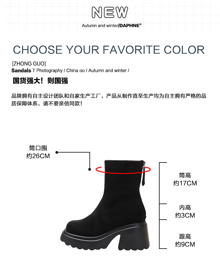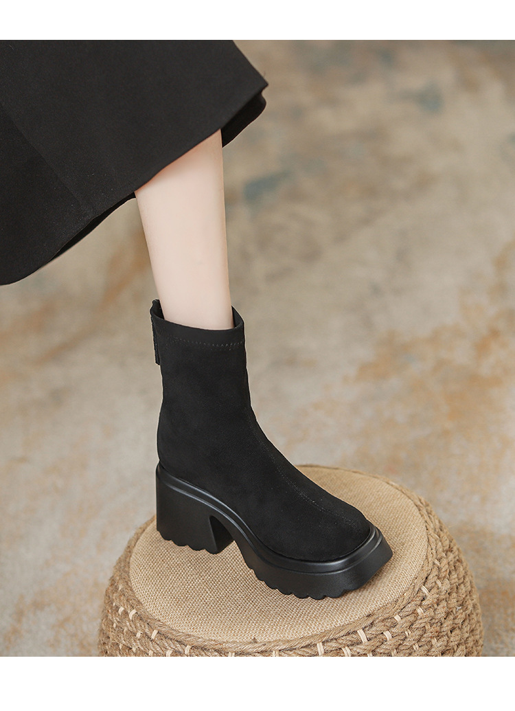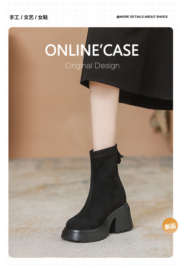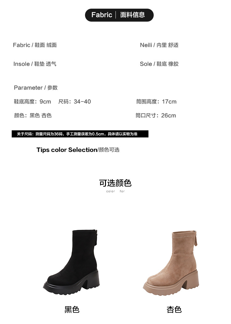 2025년 신상 가을 겨울 슬림 브라운 탄력성 슬림 부츠 여성용 키높이 숏부츠 두꺼운 밑창 영국 스타일 마틴 부츠