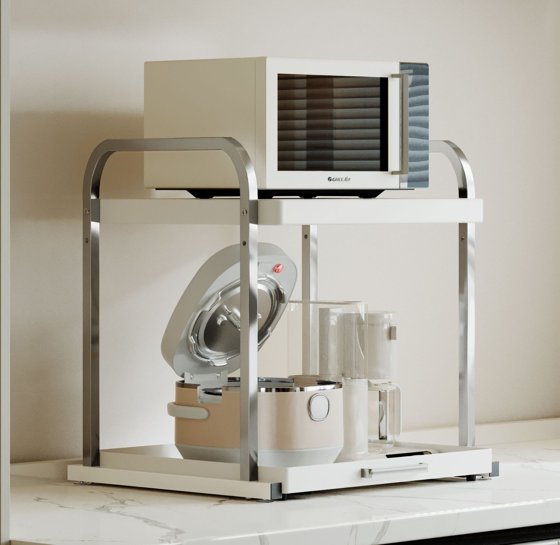 주방 전자 레인지 스토리지 랙 스테인레스 스틸 카운터 탑 풀 아웃 오븐 밥솥 에어 프라이어 어플라이언스 스토리지 랙