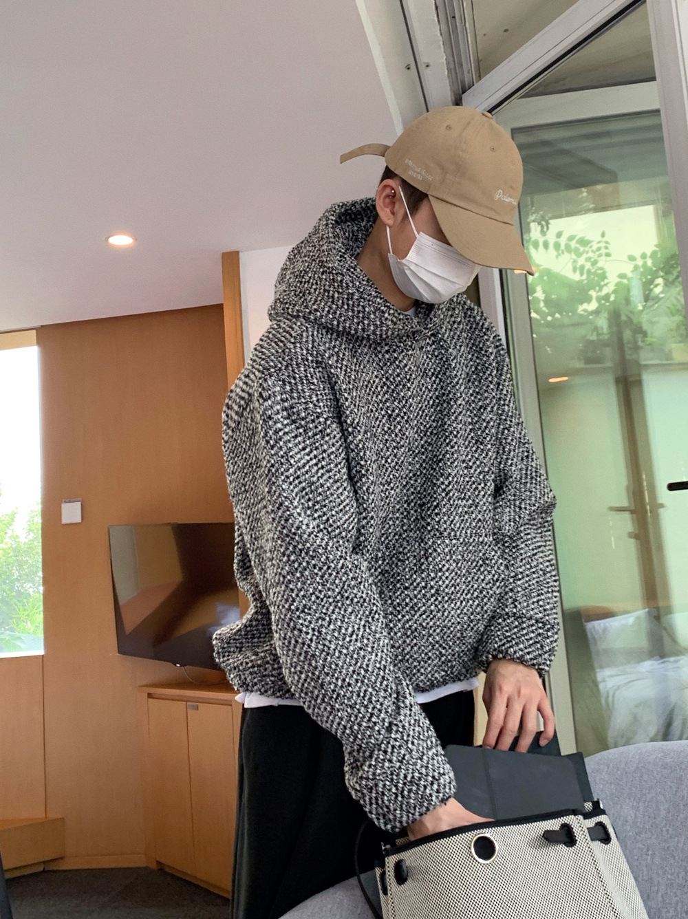 작은 향기로운 스타일 후드 스웨트 셔츠 남자의 봄과 가을 새로운 유행 무거운 무게 거친 꽃 짠 소매 느슨한 올 매치 긴팔 탑