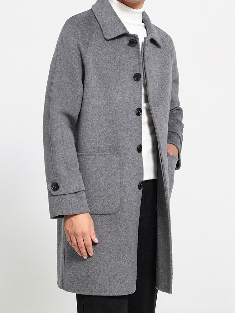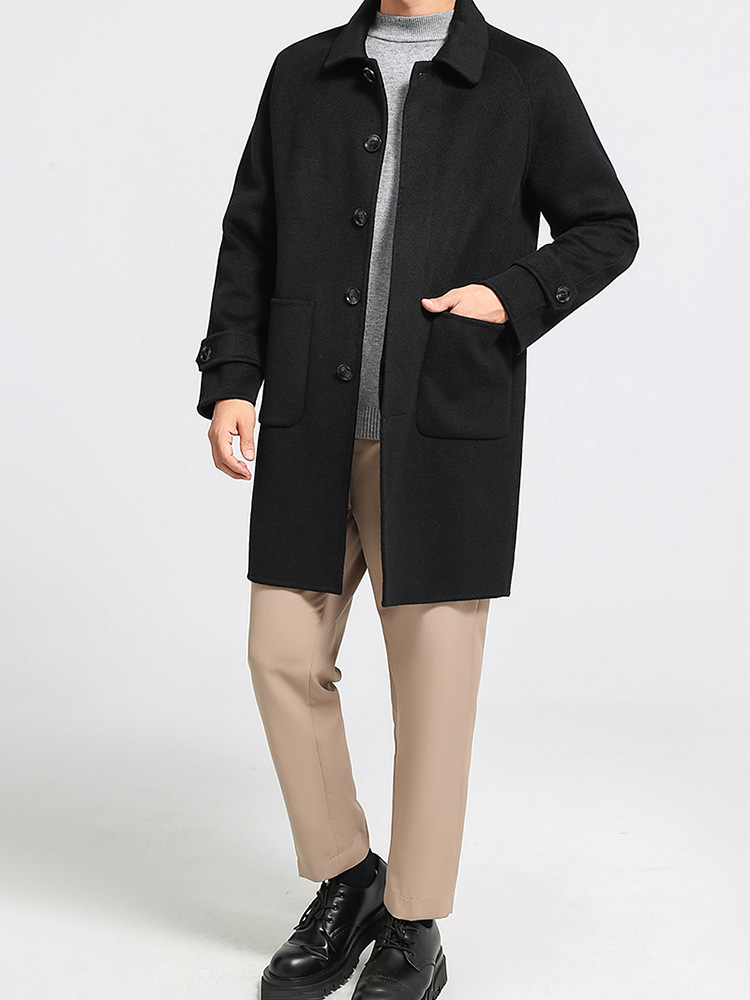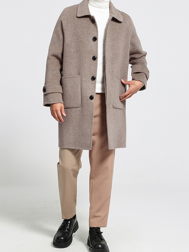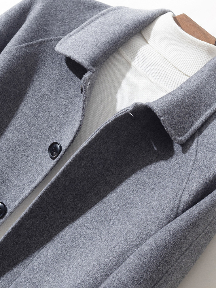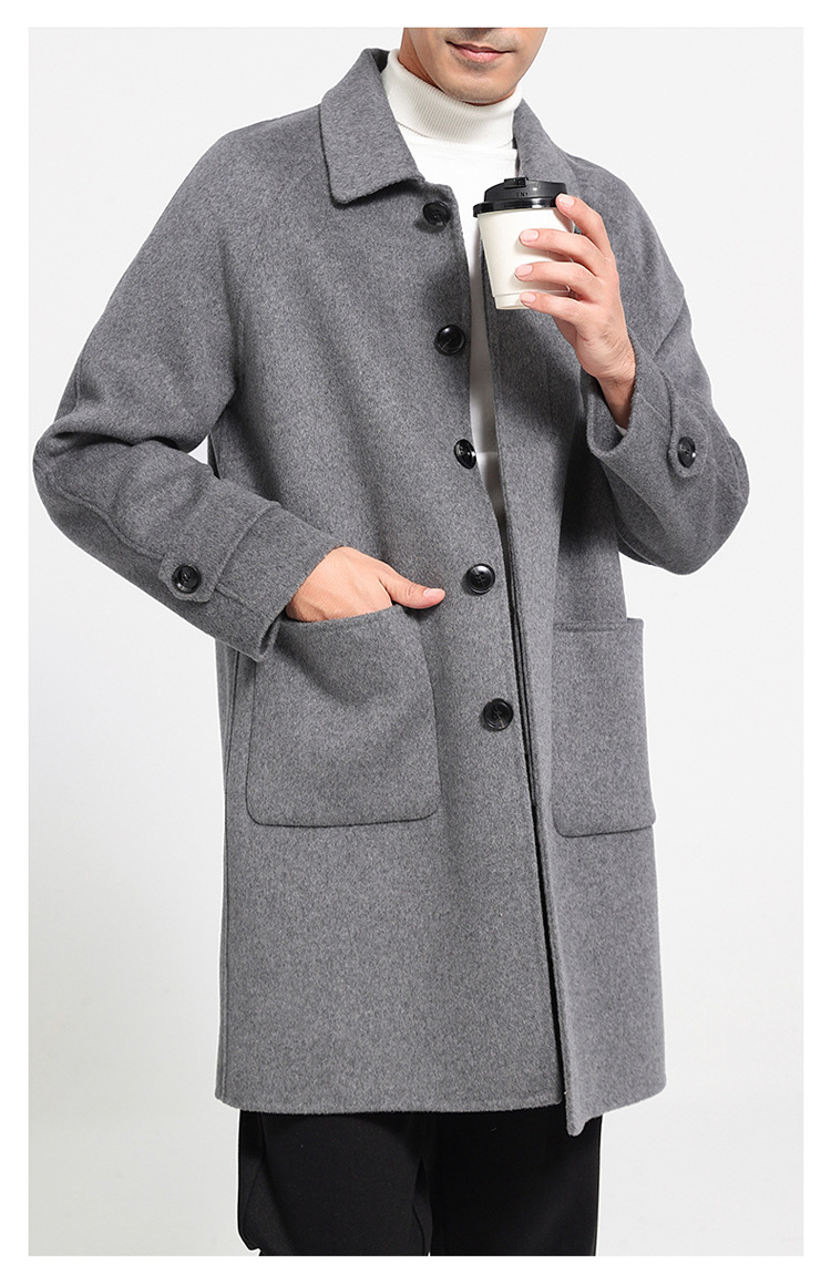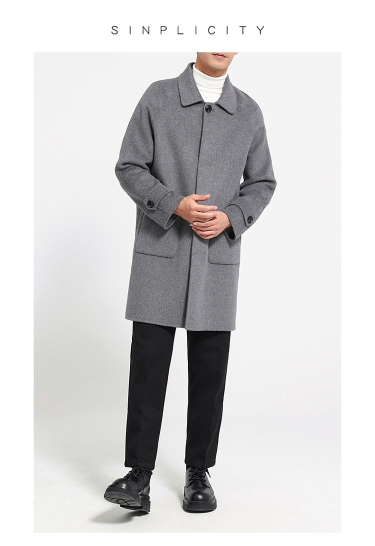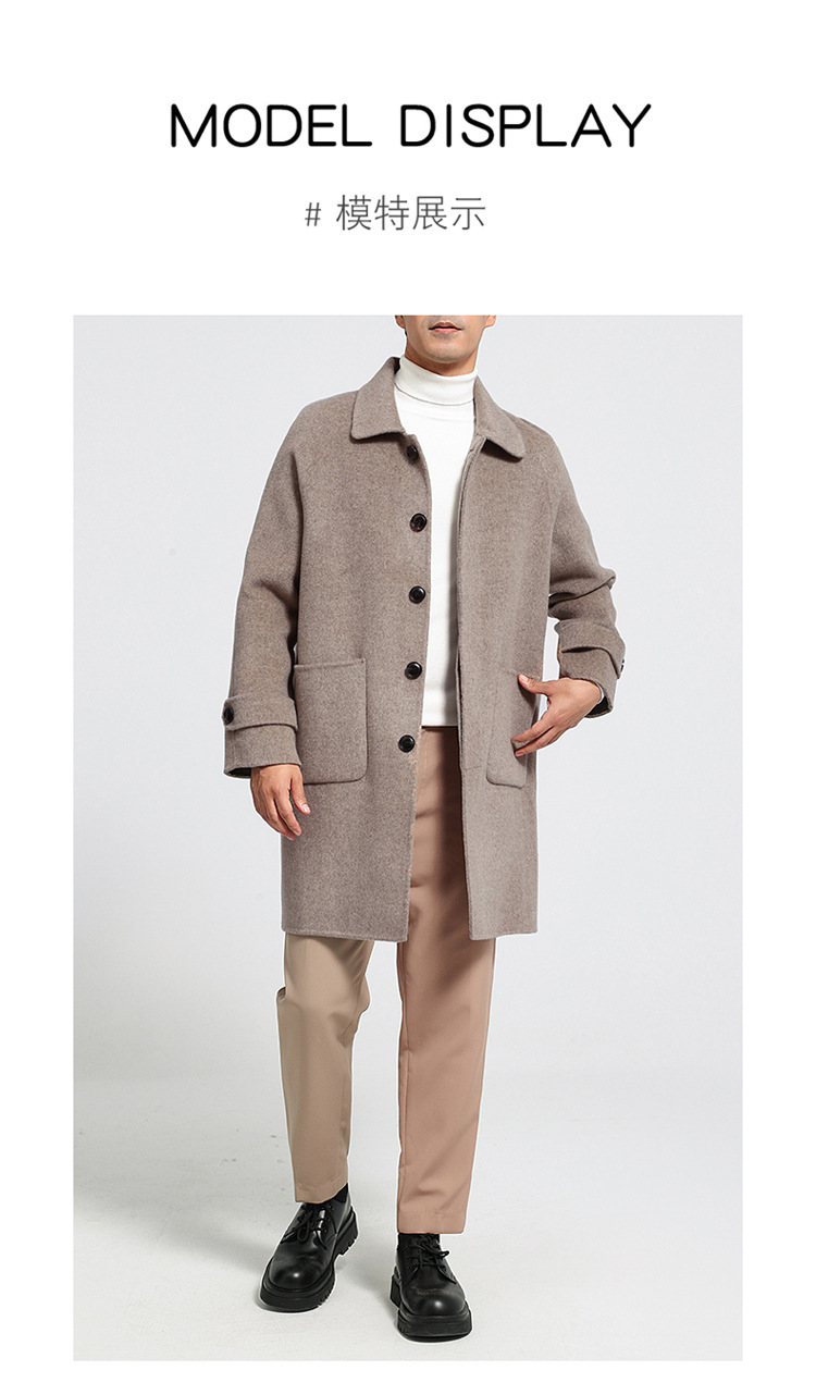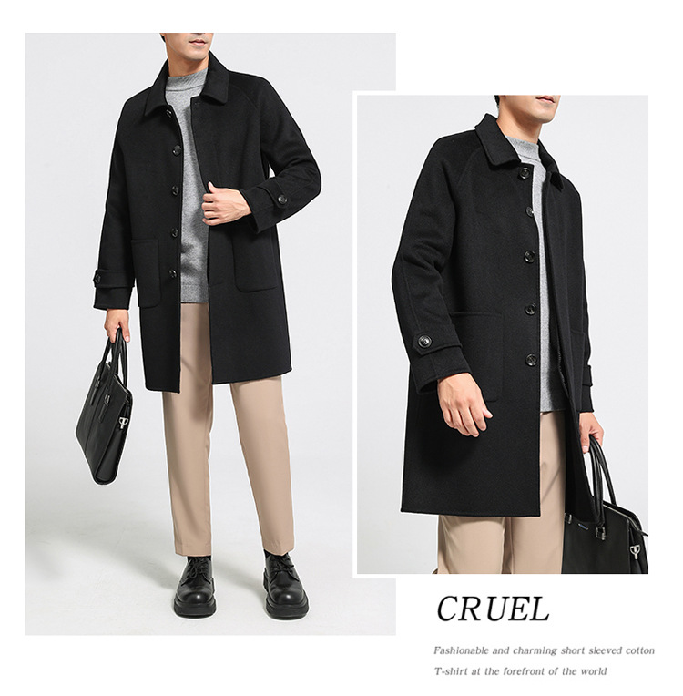 양모 세트 재킷 남성 비즈니스 캐주얼 하이 엔드 랩 간단한 중간 길이의 가을 새로운 양면 캐시미어 코트