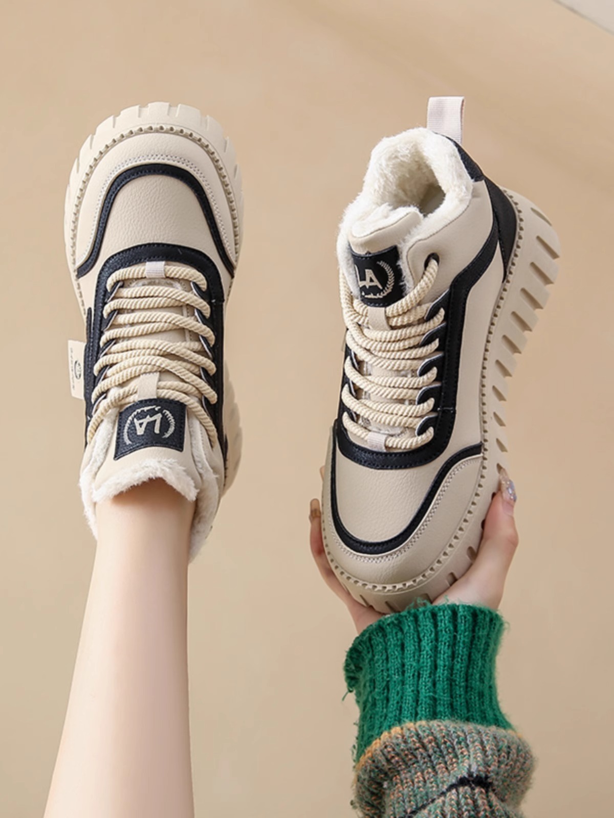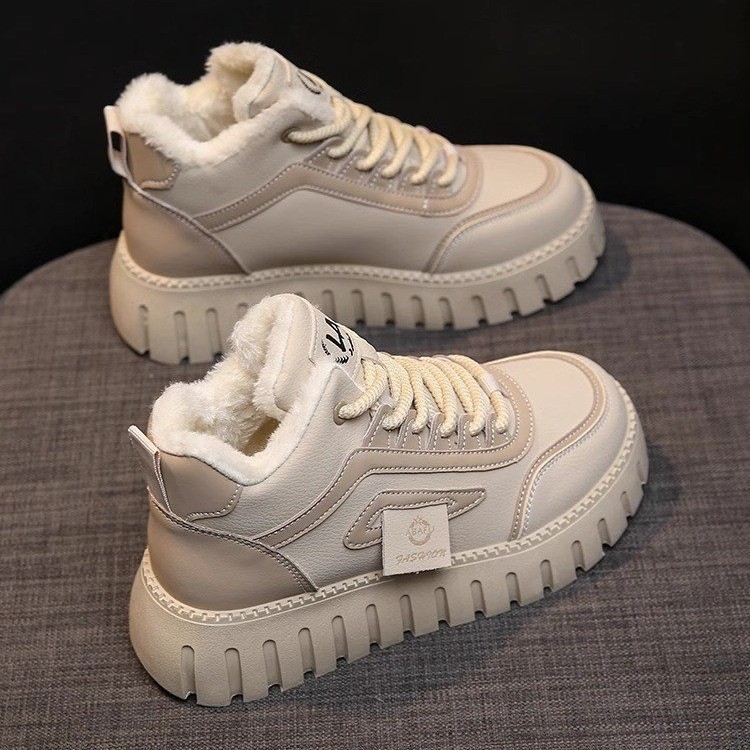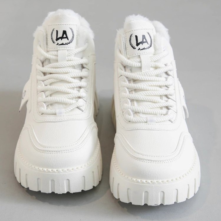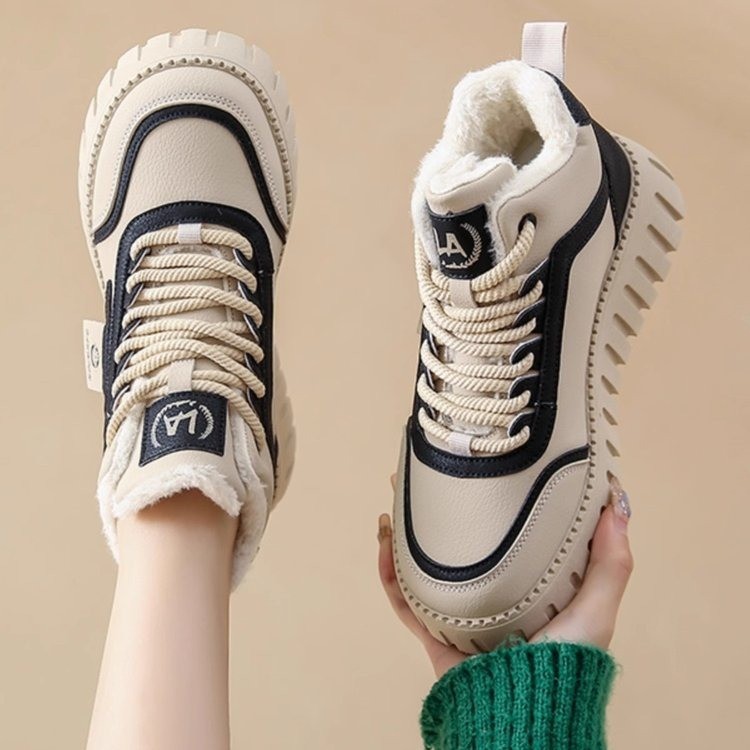 2024 새로운 겨울 면화 여성 신발 기모 하이 탑 스포츠 캐주얼 신발 두꺼운 밑창 스노우 부츠 따뜻한 발목 부츠