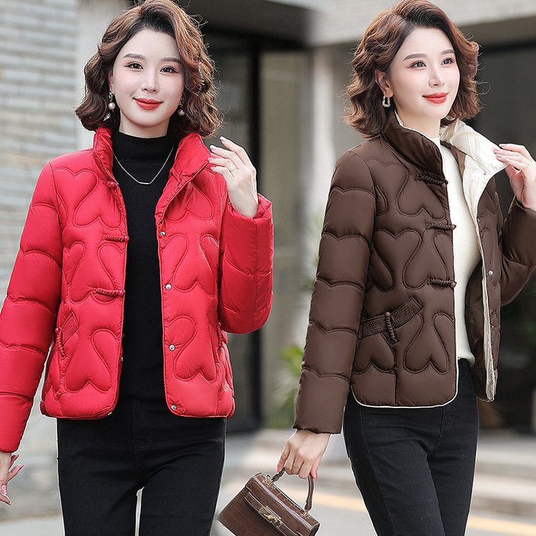 어머니의 겨울 짧은 면 패딩 코트 서양식 중년 및 노인 여성의 가을 및 겨울 담 양털 코트 패션 코튼 코트