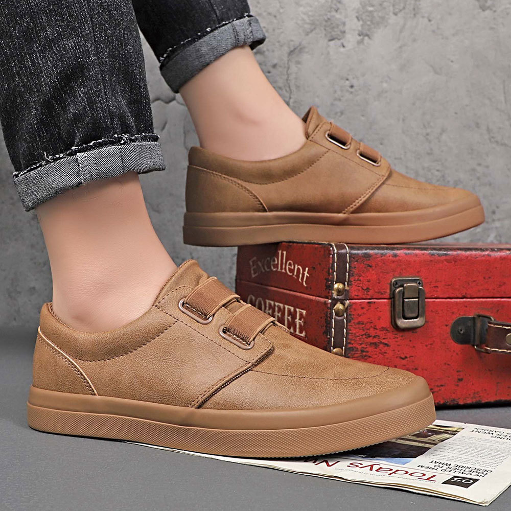 2025 남성 신발 가을 새로운 캐주얼 가죽 신발 세련된 부드러운 밑창 슬립 온 운동화 남성 다목적 한국 스타일 유행 신발