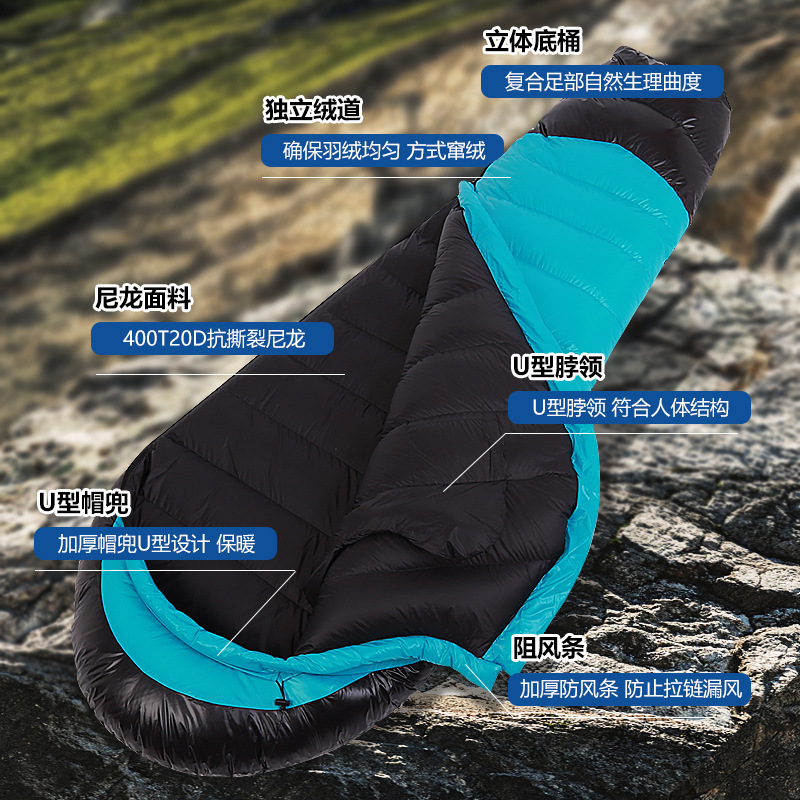本厂专业生产户外羽绒睡袋、羽绒服、羽绒被等全品类羽绒制品,拥有完整、科学的质量管理体系