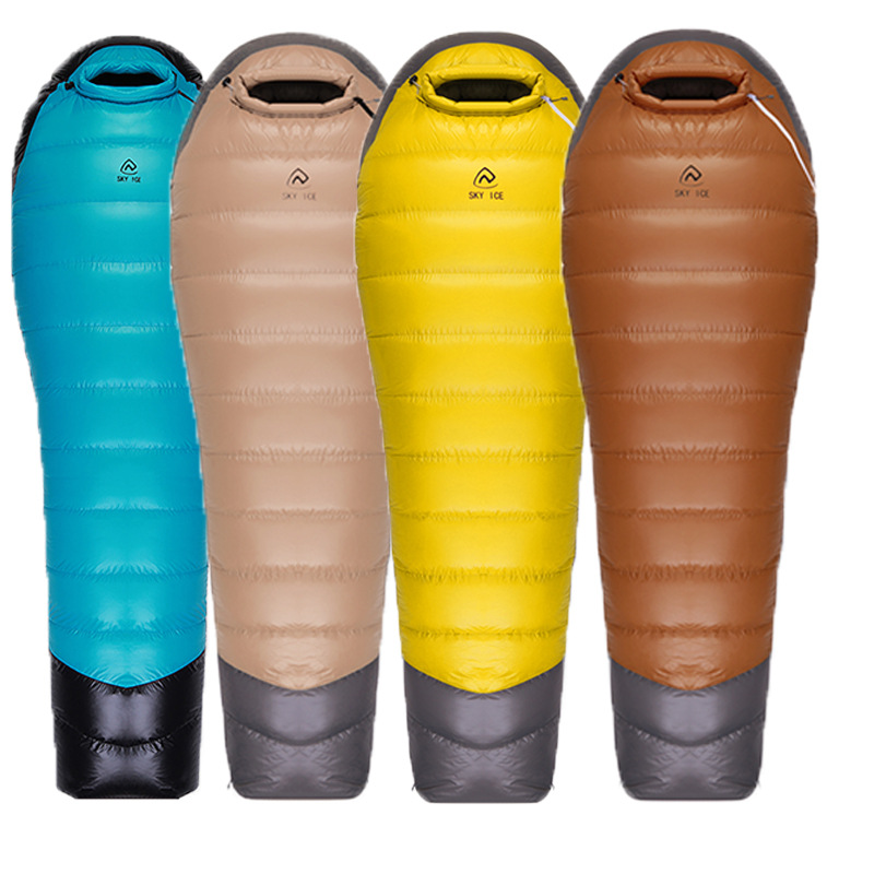 SKY ICE 성인용 야외 캠핑용 다운 침낭, 겨울철 두꺼운 오리털로 추위를 막아 따뜻하게 유지합니다.