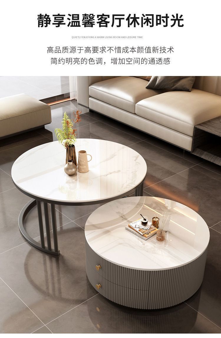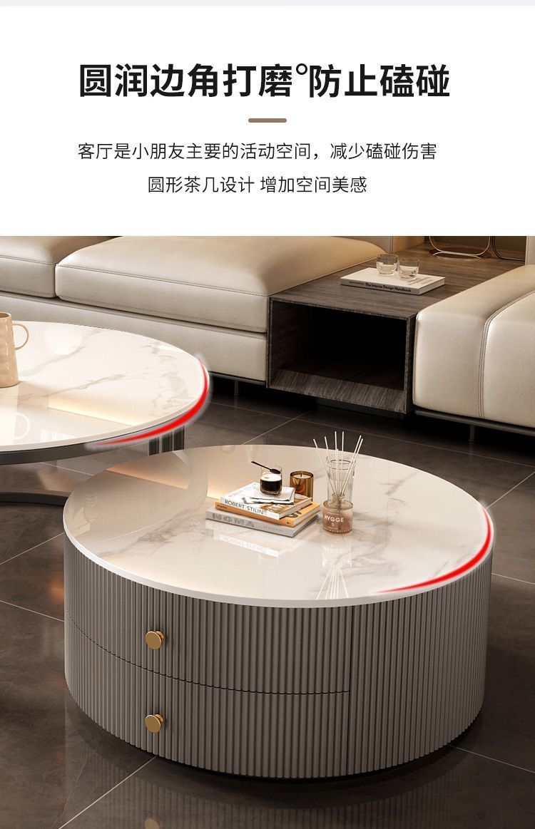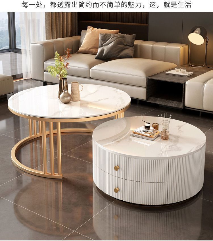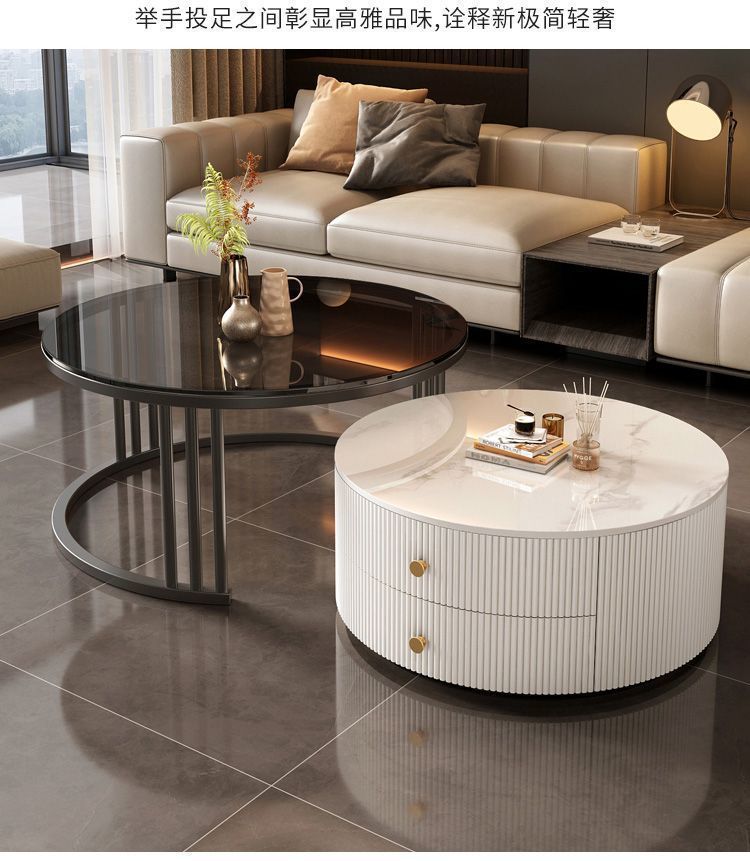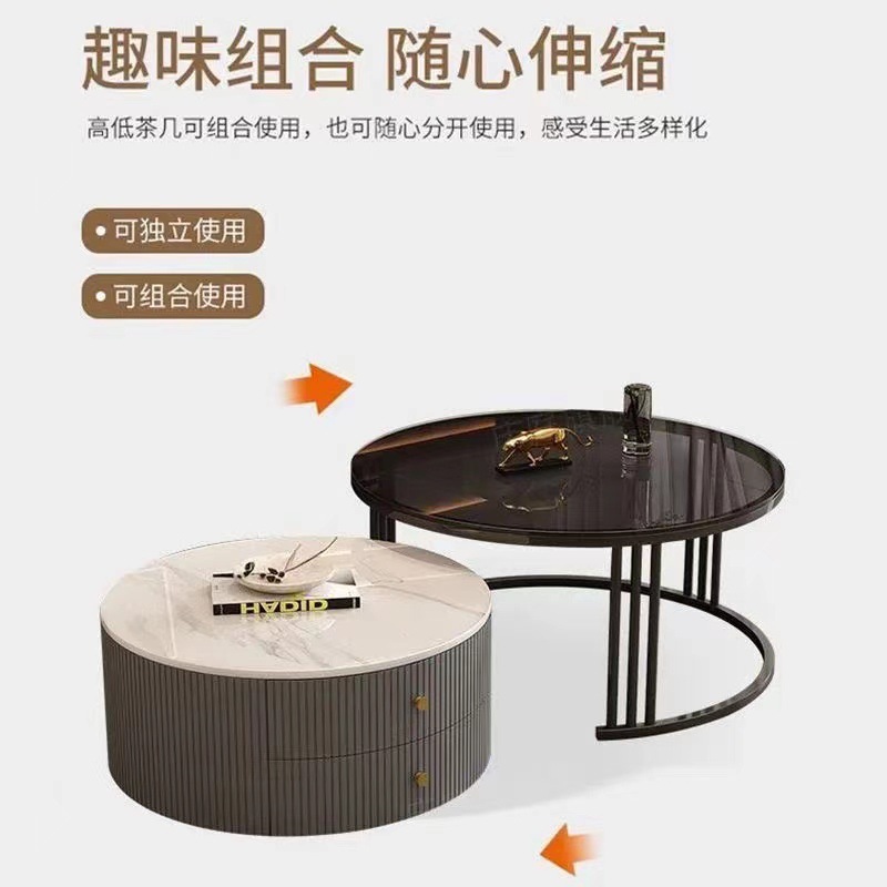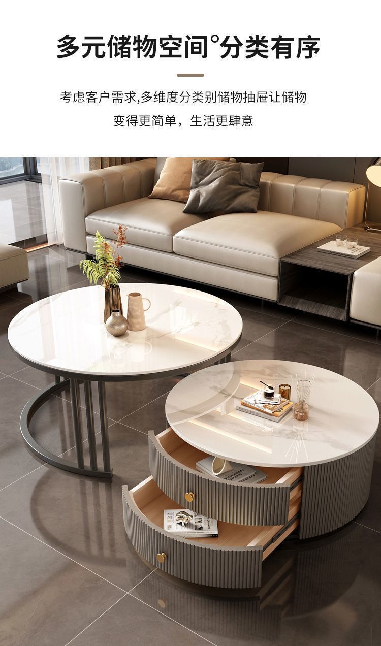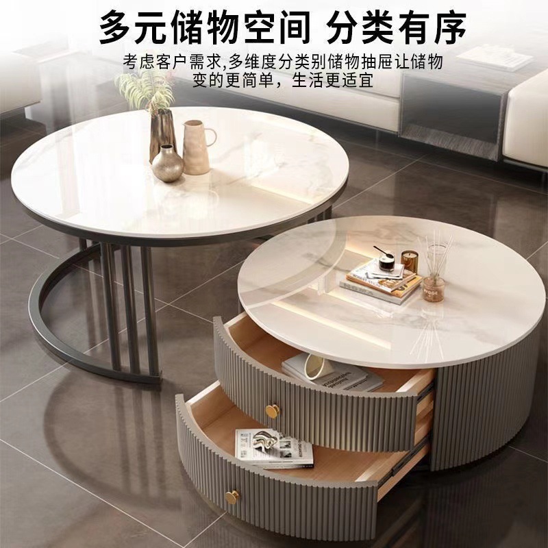 크림 이탈리아 암판 개폐식 커피 테이블 빛 고급 현대 조합 간단한 거실 가정용 작은 아파트 라운드 테이블