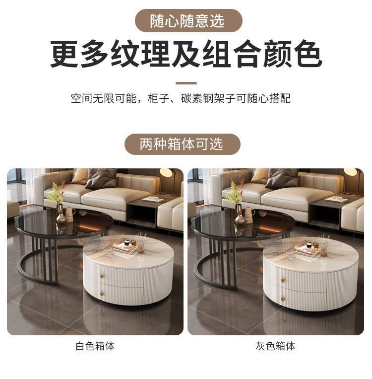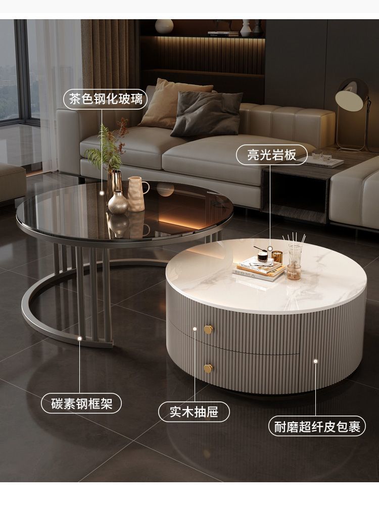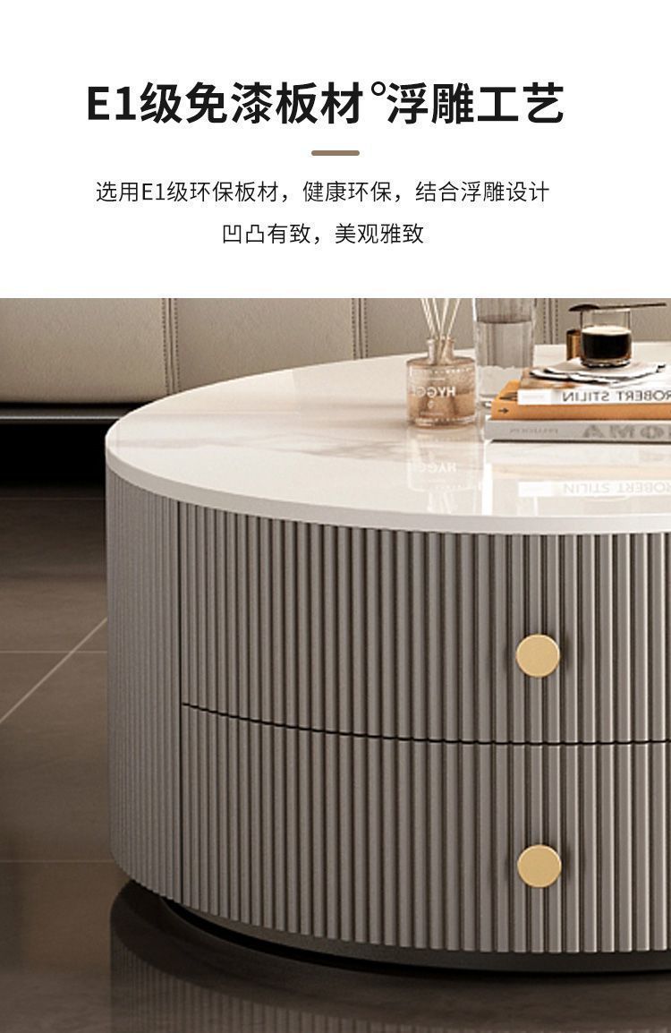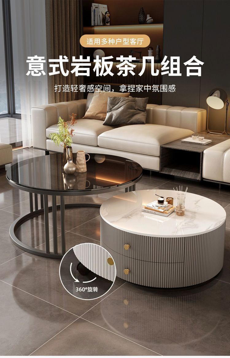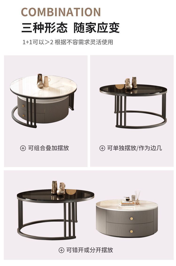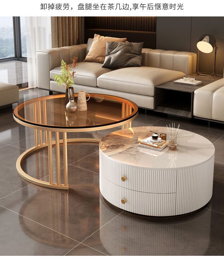 크림 이탈리아 암판 개폐식 커피 테이블 빛 고급 현대 조합 간단한 거실 가정용 작은 아파트 라운드 테이블