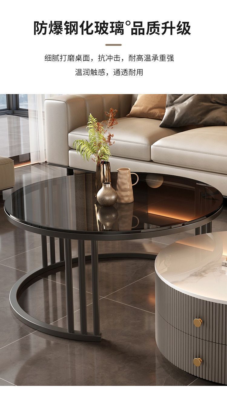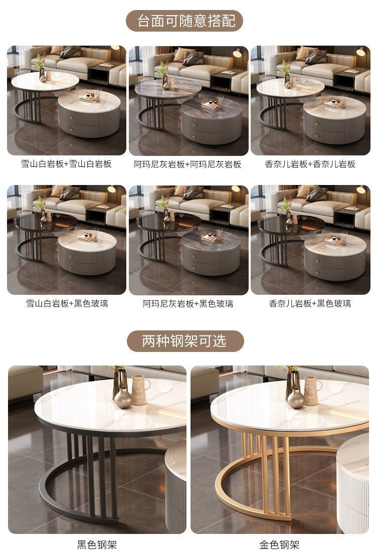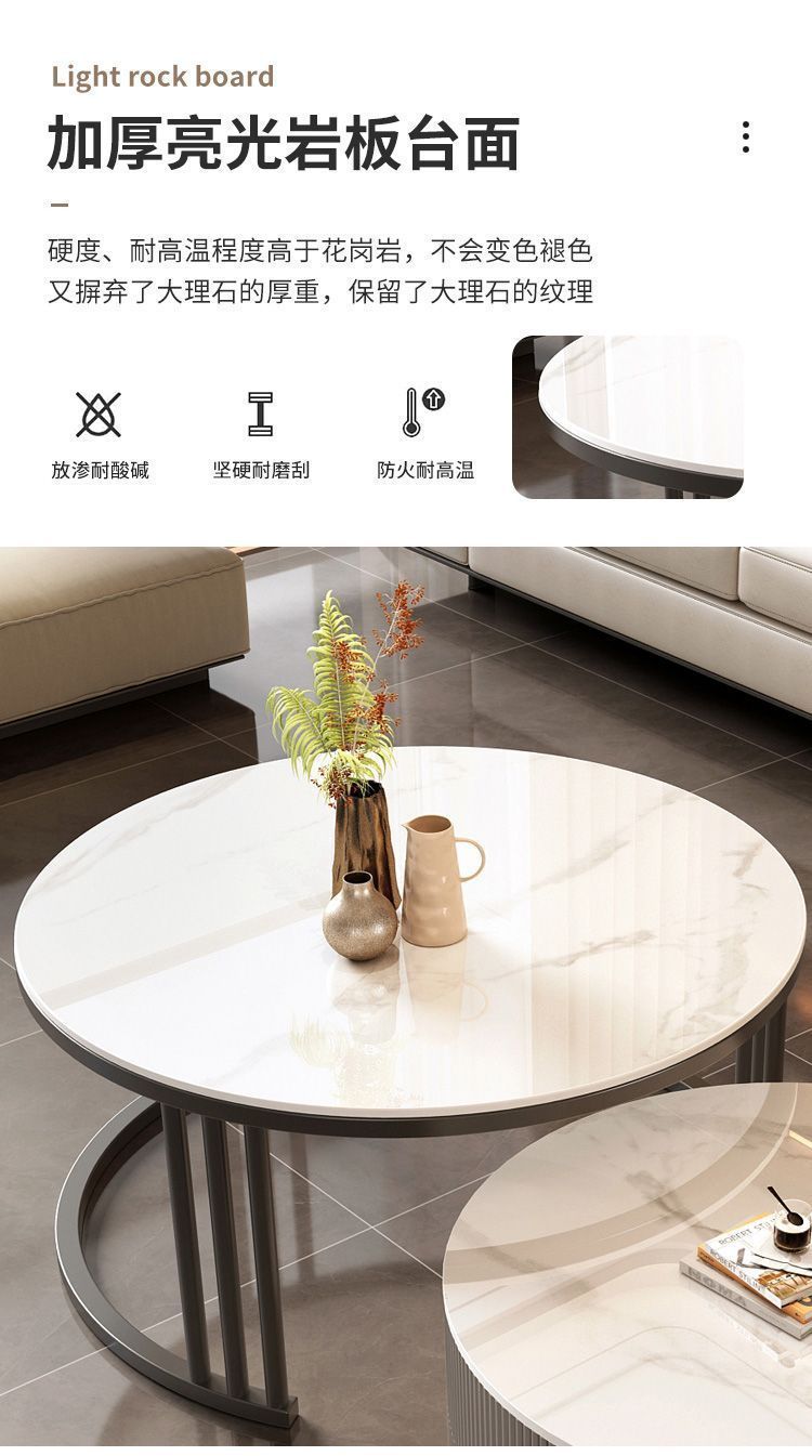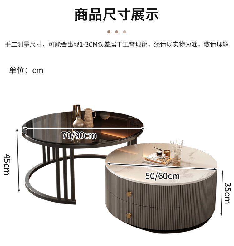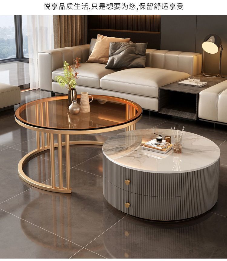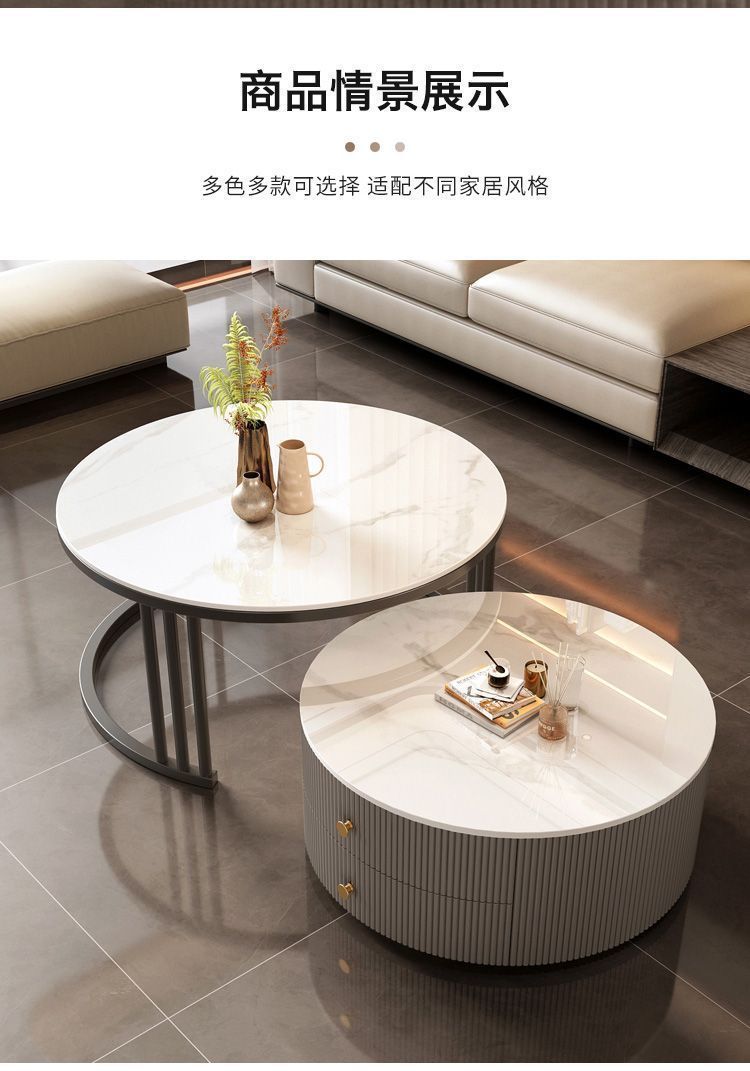 크림 이탈리아 암판 개폐식 커피 테이블 빛 고급 현대 조합 간단한 거실 가정용 작은 아파트 라운드 테이블