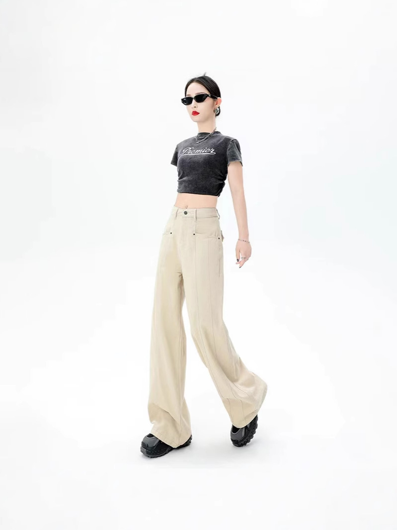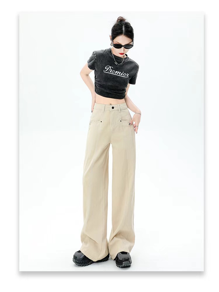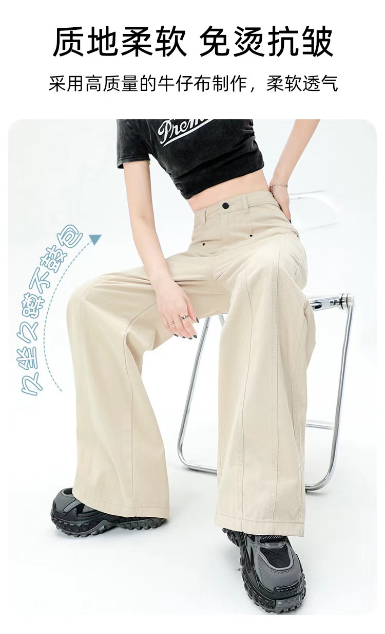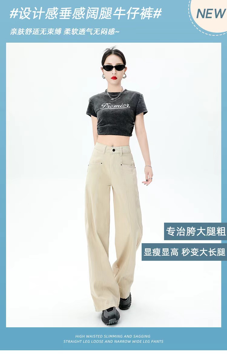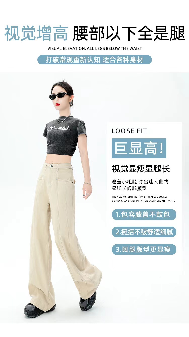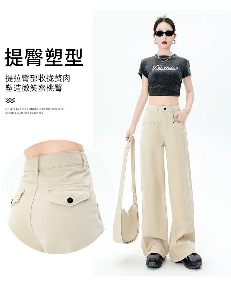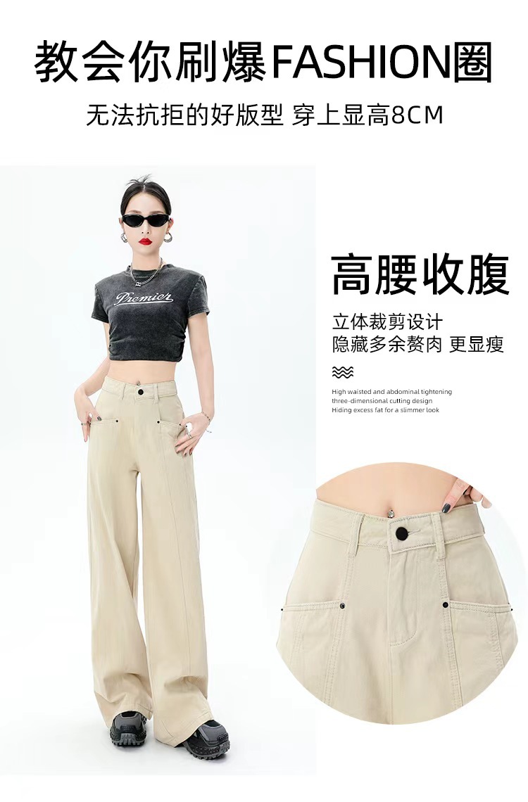 미국 야피 모래 흰색 도구 청바지 여성의 봄과 가을 유행 높은 허리 슬리밍 느슨한 직선 다리 넓은 다리 바지