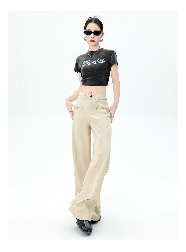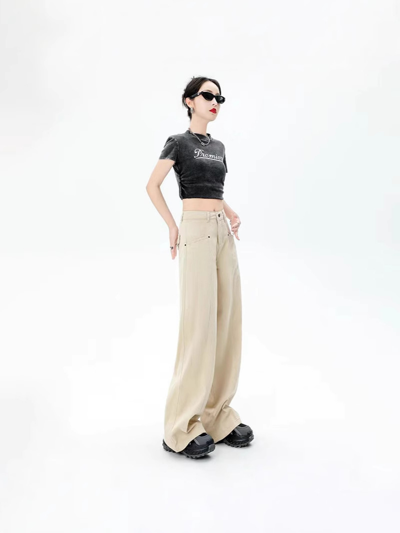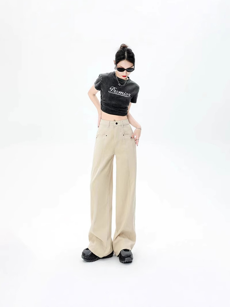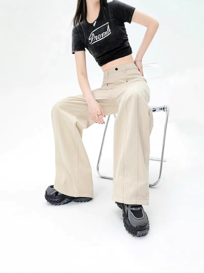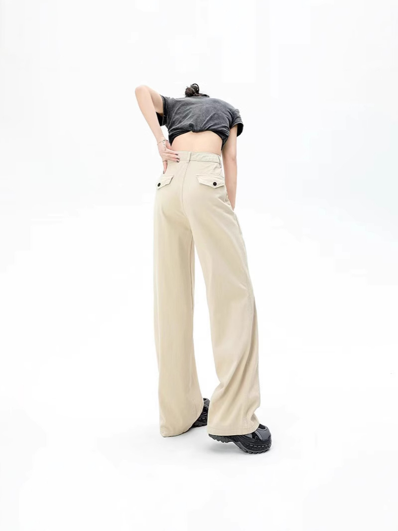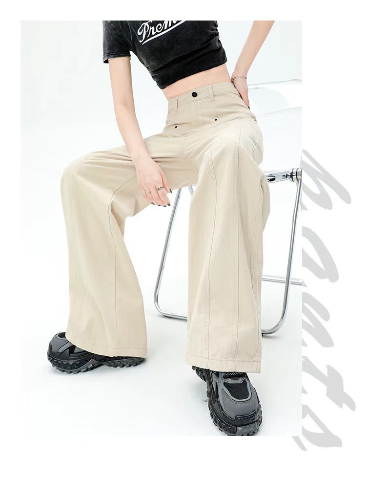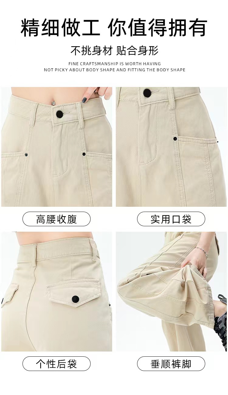 미국 야피 모래 흰색 도구 청바지 여성의 봄과 가을 유행 높은 허리 슬리밍 느슨한 직선 다리 넓은 다리 바지