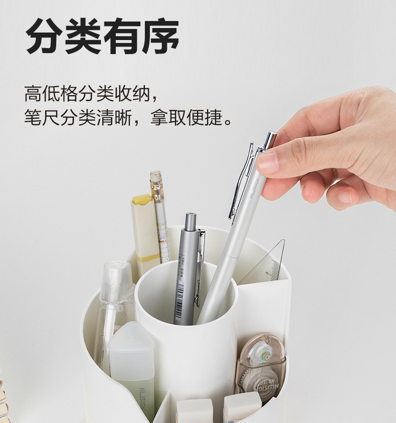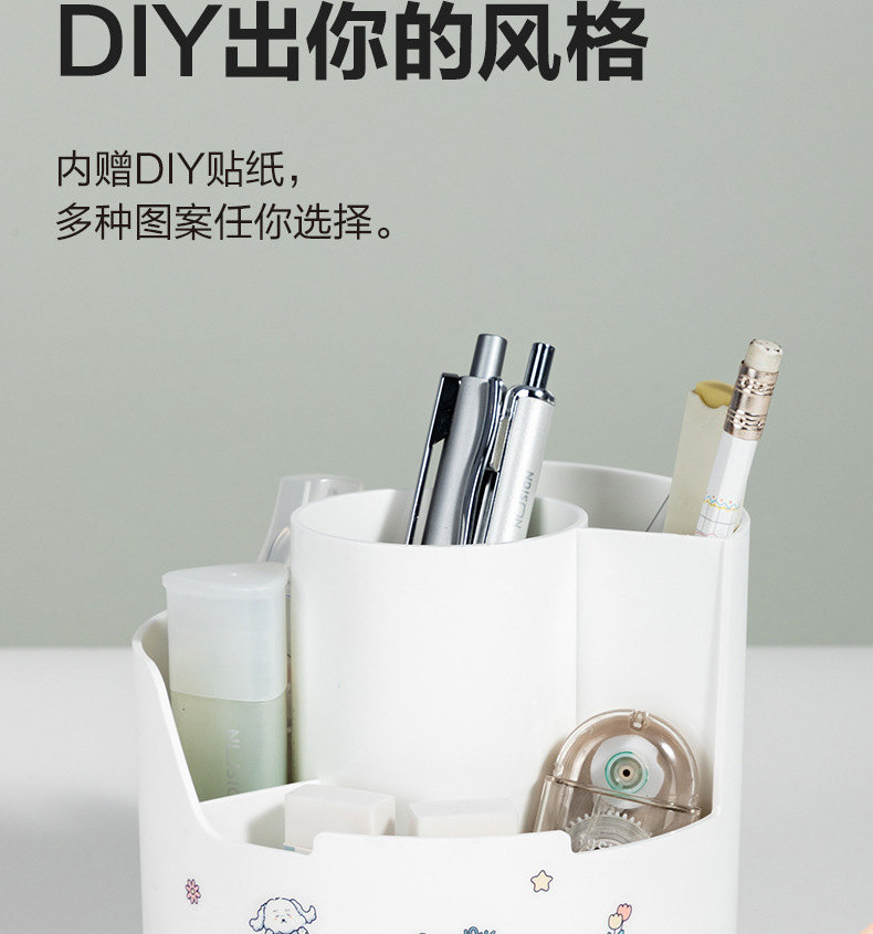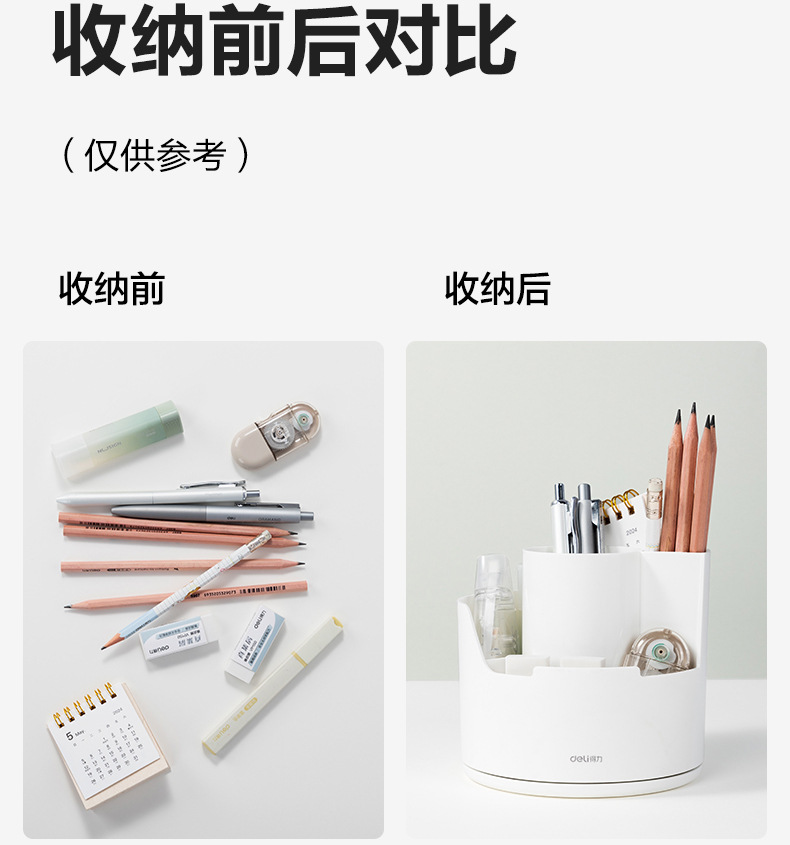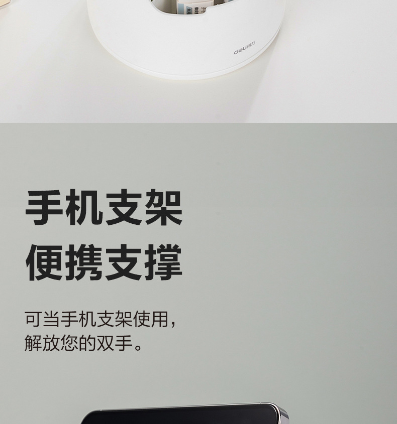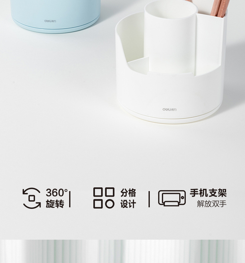 델리 PK414 창조적 인 분할 회전 펜 홀더 다기능 사무실 데스크탑 휴대 전화 브래킷 저장 문구