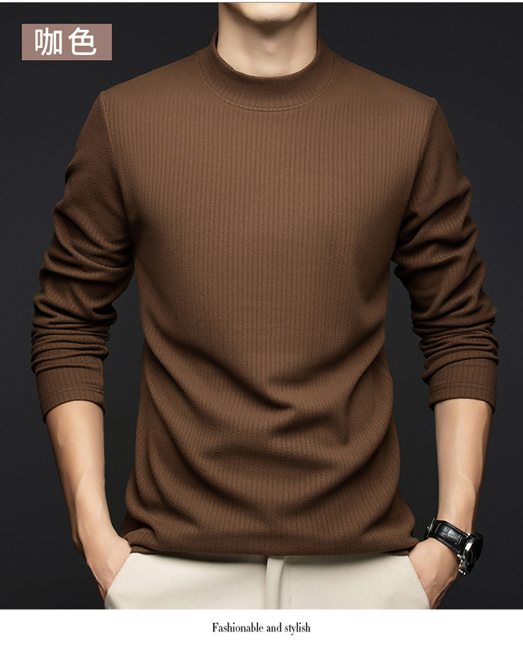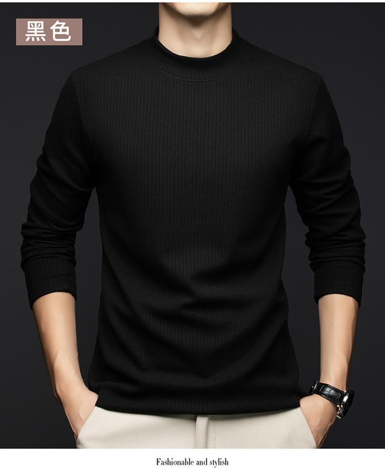 반높이 칼라베이스 셔츠 가을과 겨울 긴팔 내부 티셔츠 젊고 중년 남성 올매치 솔리드 컬러 긴팔 티셔츠 슬림 핏 트렌디