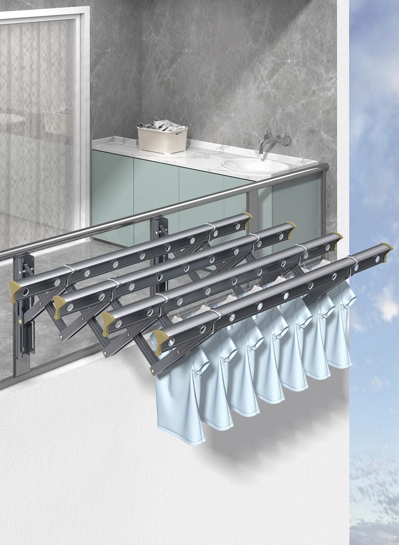 텔레스코픽 빨래 건조대 알루미늄 합금 발코니 슬라이딩 빨래 건조대 접이식 가정용 창 외부 건조대 벽걸이형 빨래 건조대