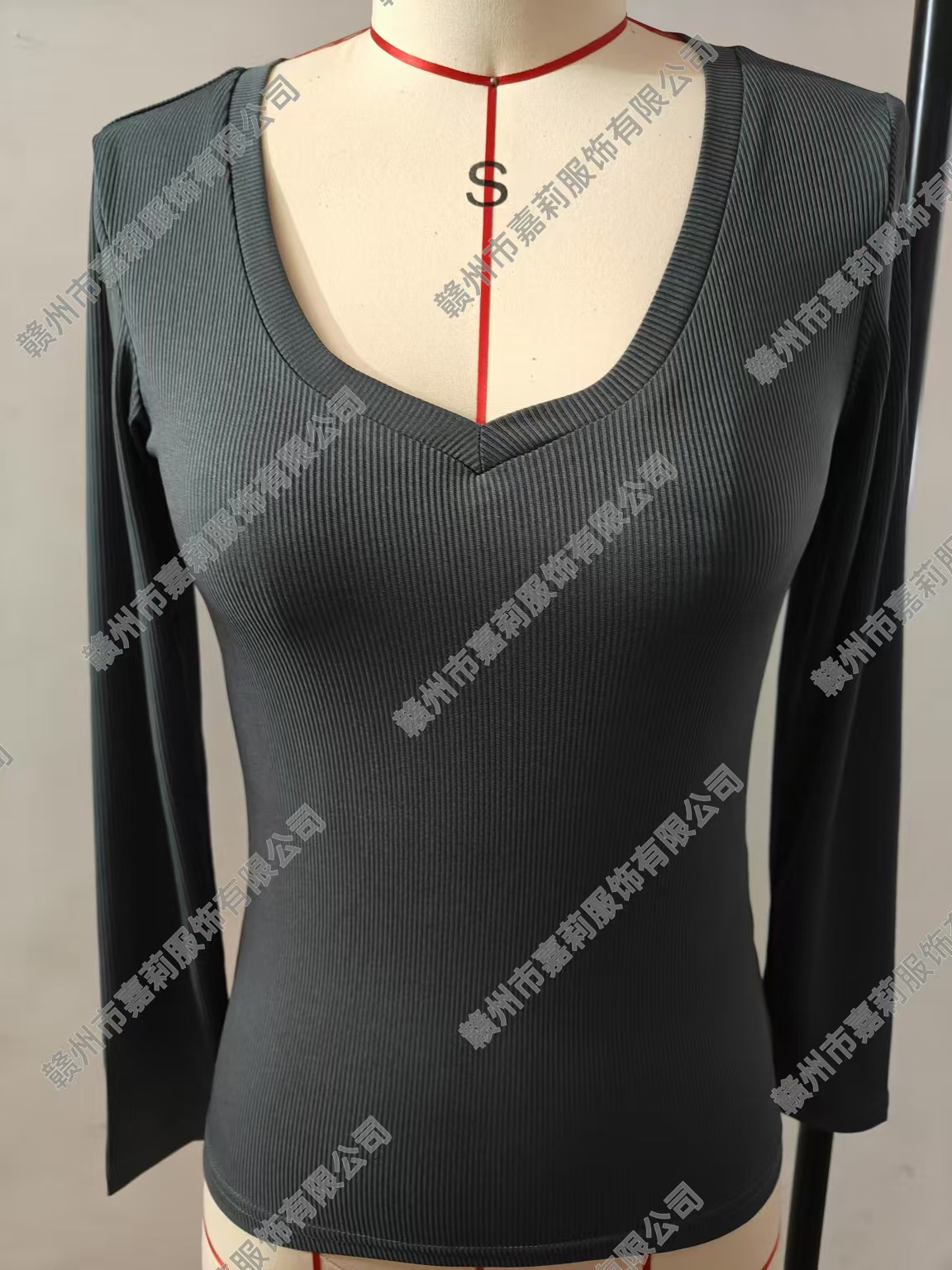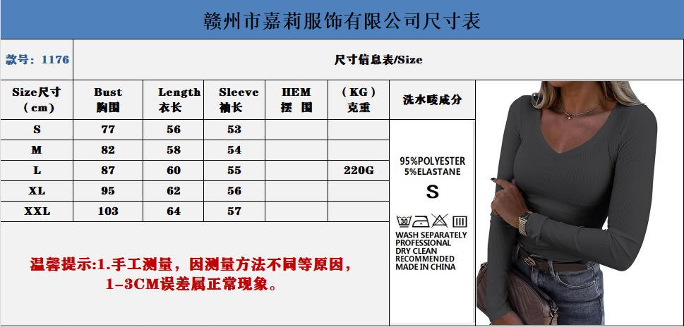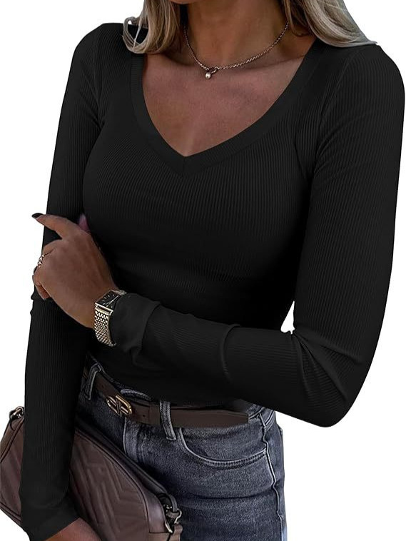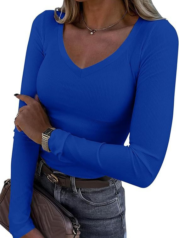 국경 간 아마존 새로운 유럽 및 미국 폭발 나사 피트 슬림 긴 긴 소매 섹시한 V-목 캐주얼 여성 T