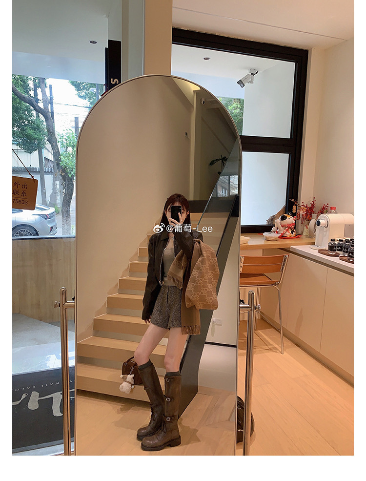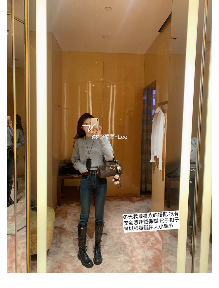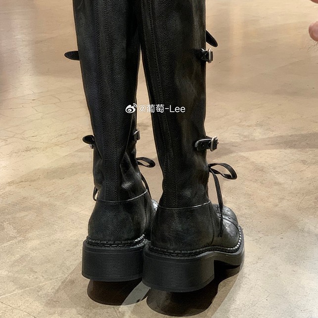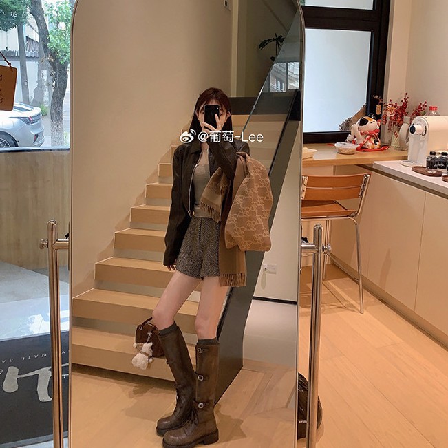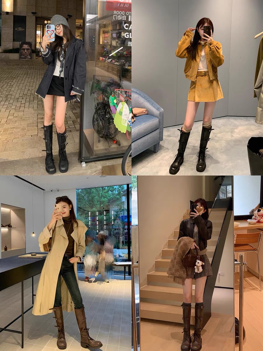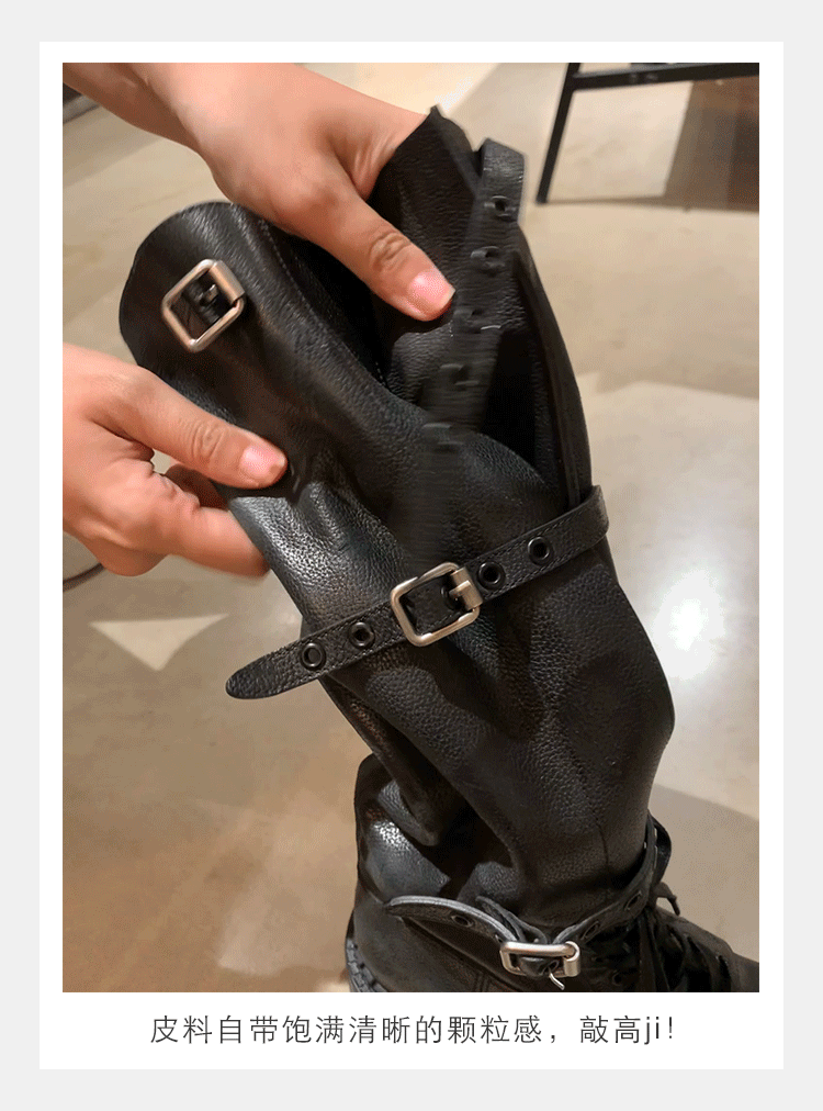 포도 엄마 studiolee 오토바이 Miu 유행 고급 벨트 버클 빈티지 두꺼운 힐 미드 하이 나이츠 부츠 여성의 가을
