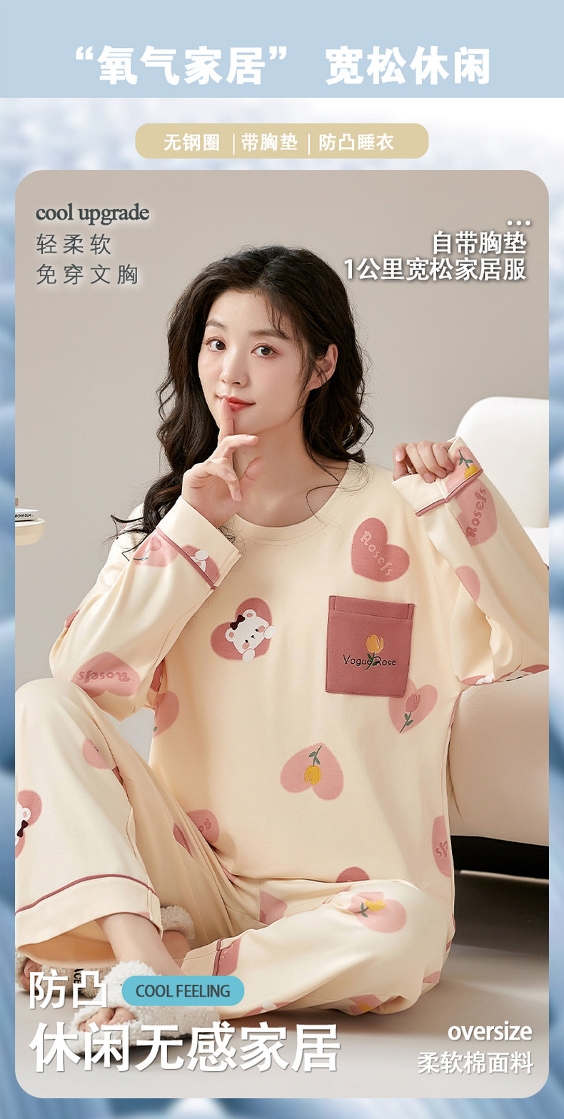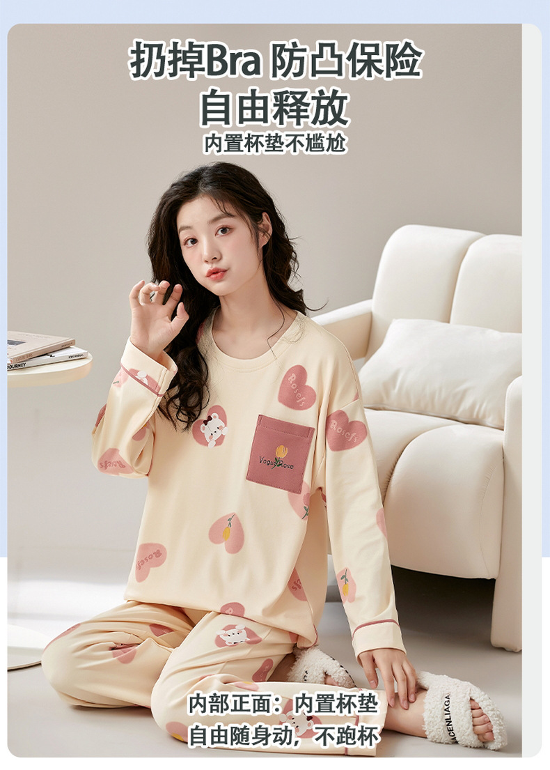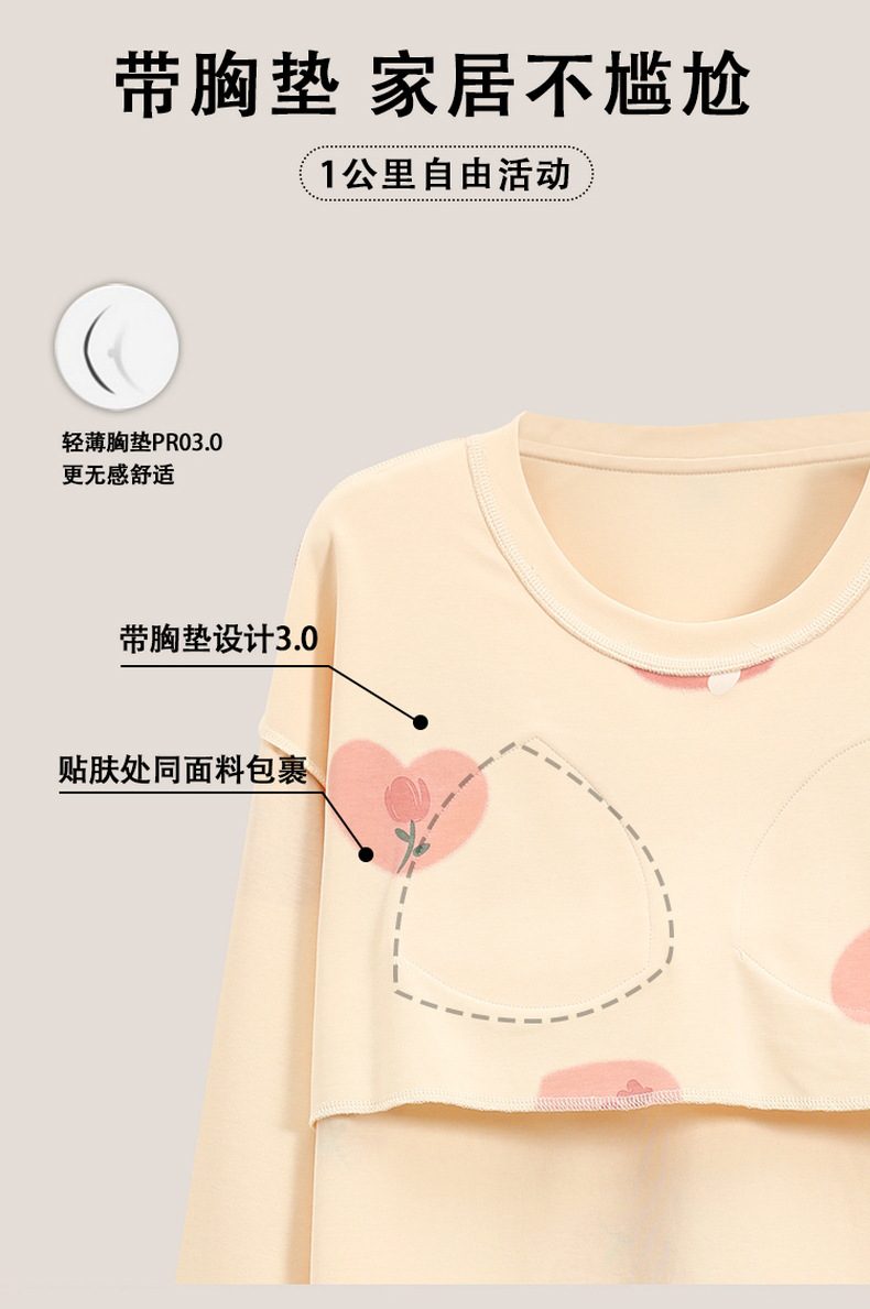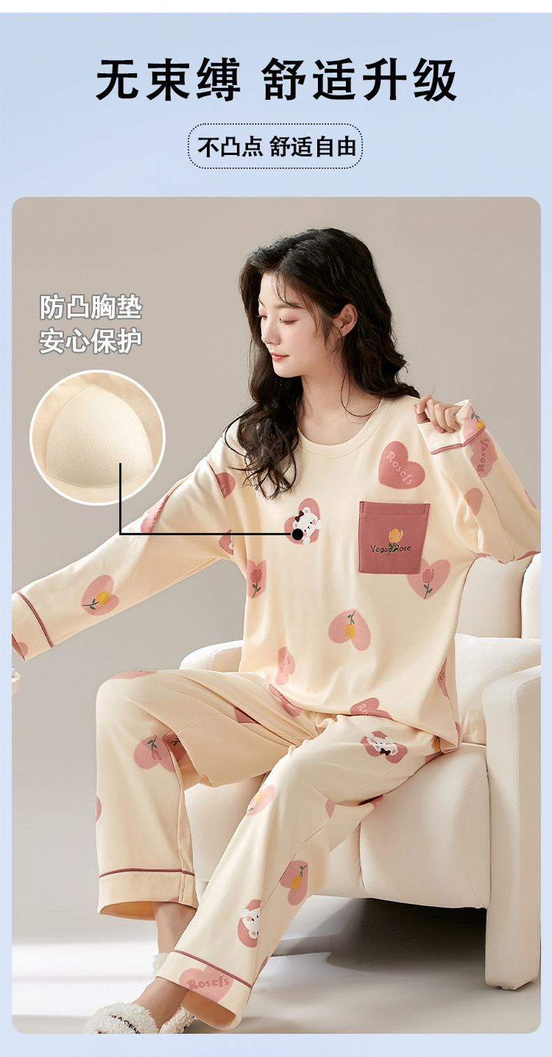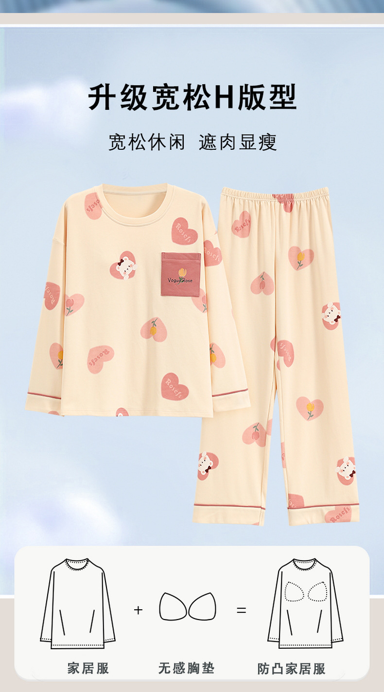 크루 넥 풀오버 파자마 여자 세트 봄 가을 가슴 패드 긴 소매 안티 범프 소녀 의상 홈 의류 가을
