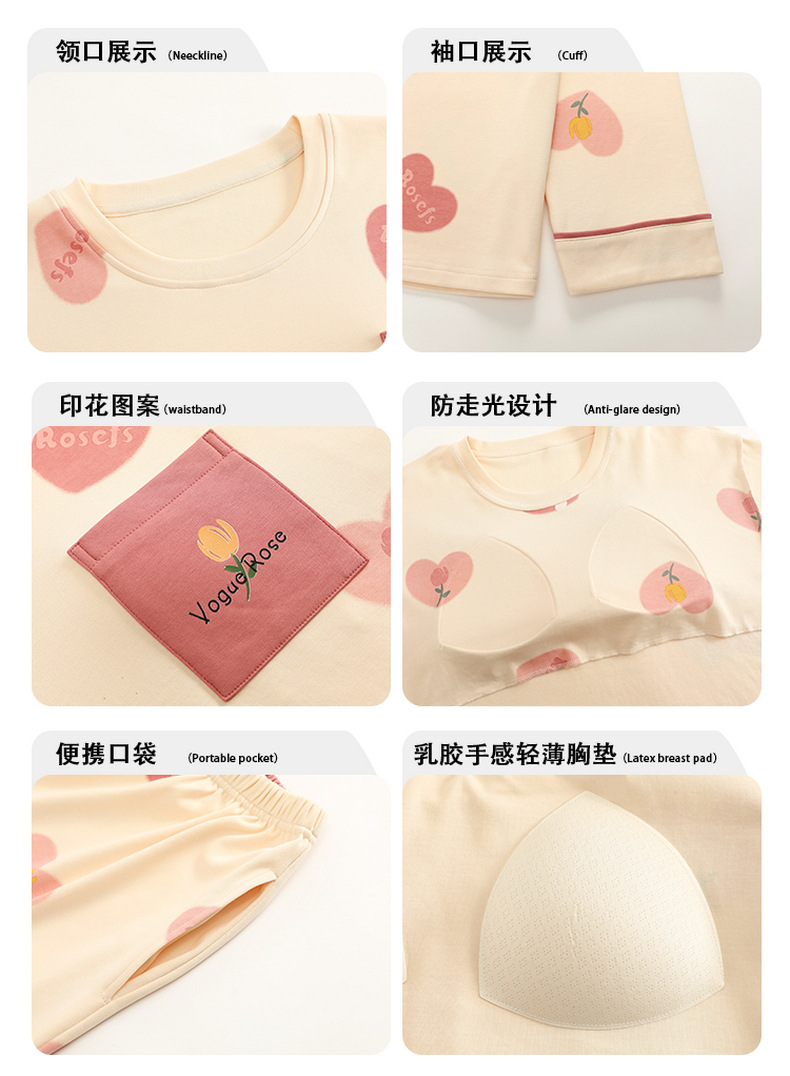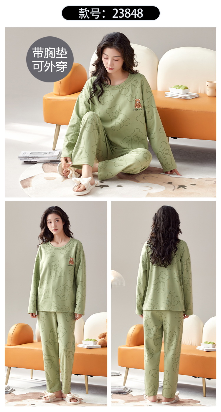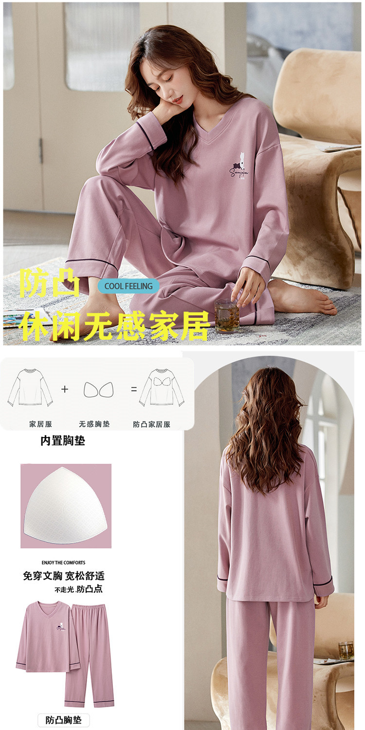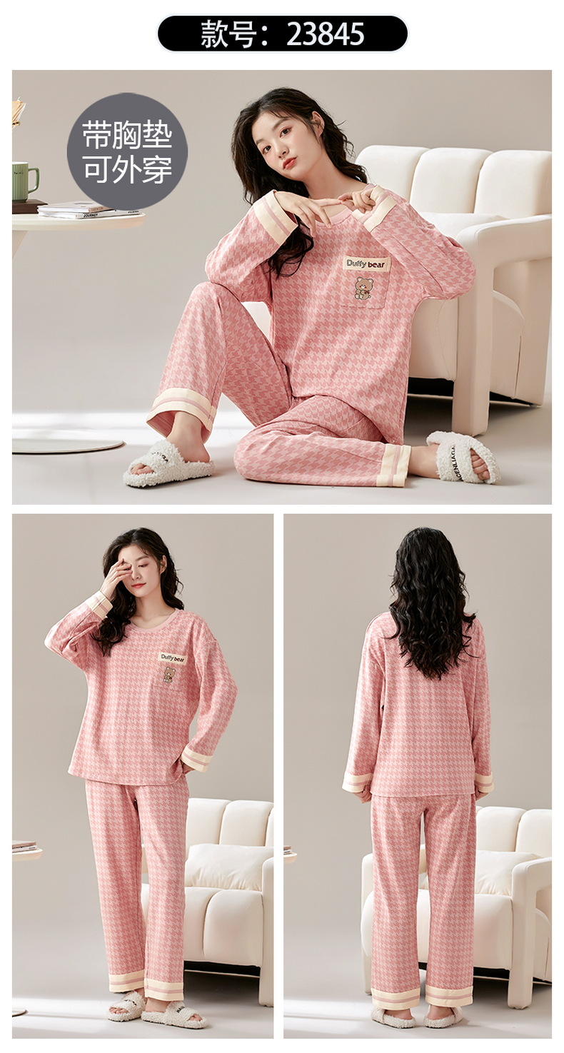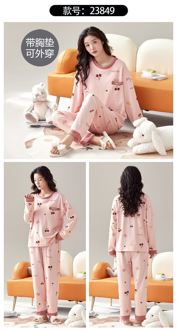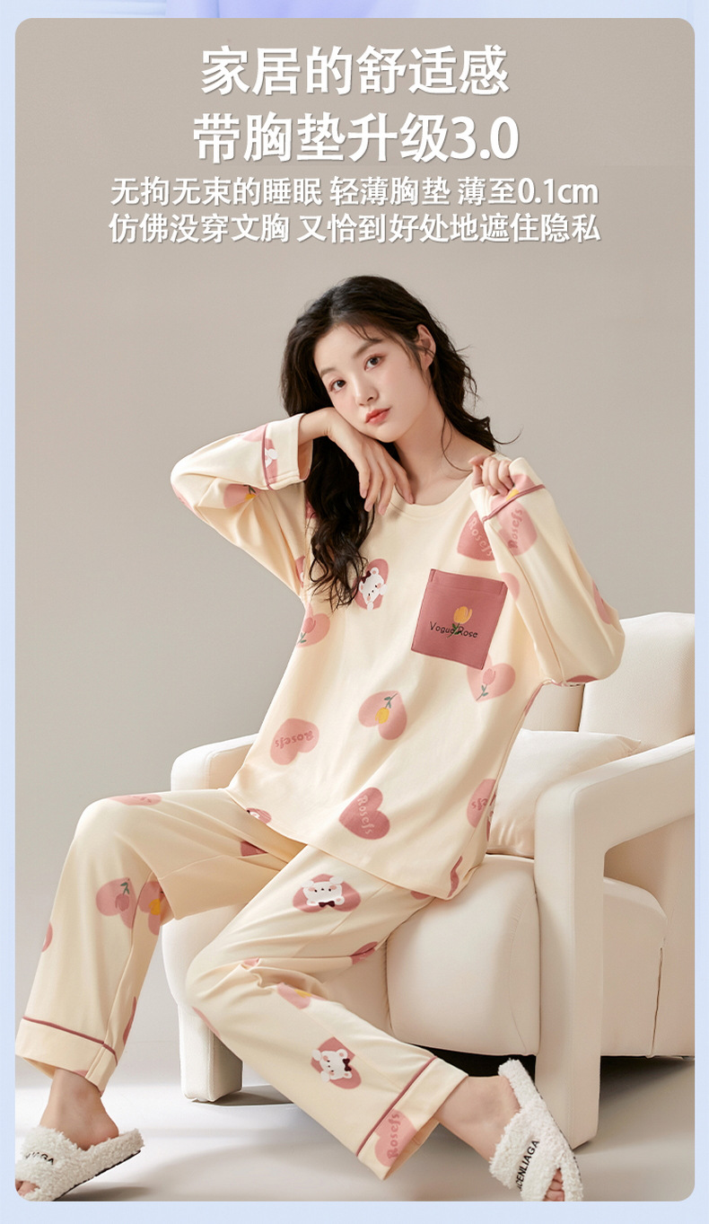 크루 넥 풀오버 파자마 여자 세트 봄 가을 가슴 패드 긴 소매 안티 범프 소녀 의상 홈 의류 가을