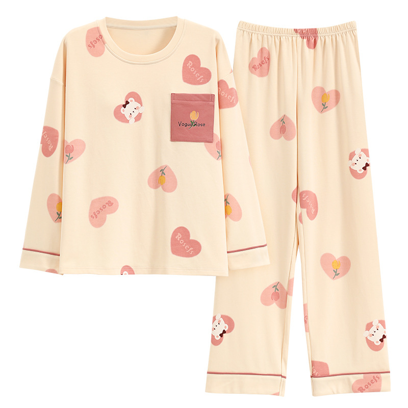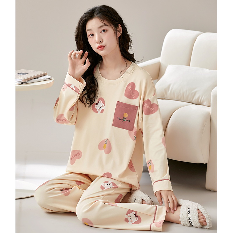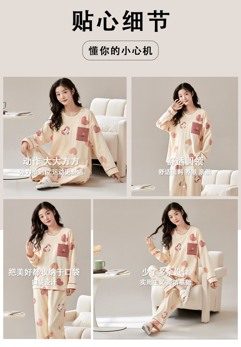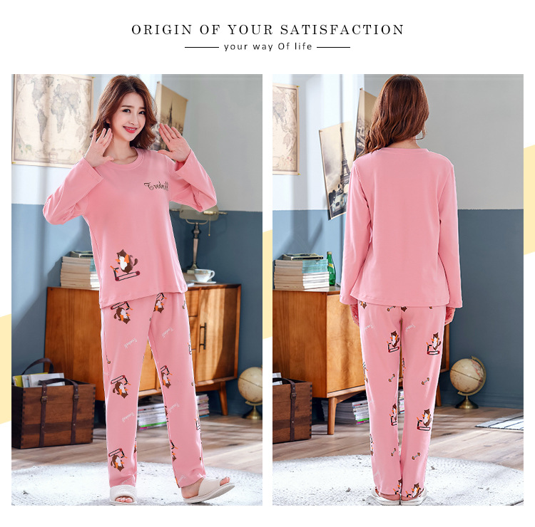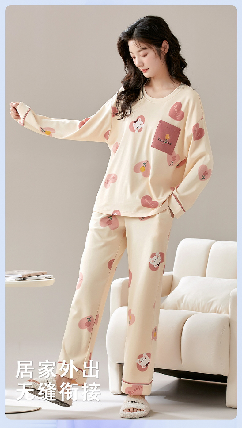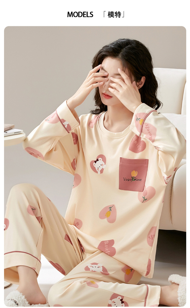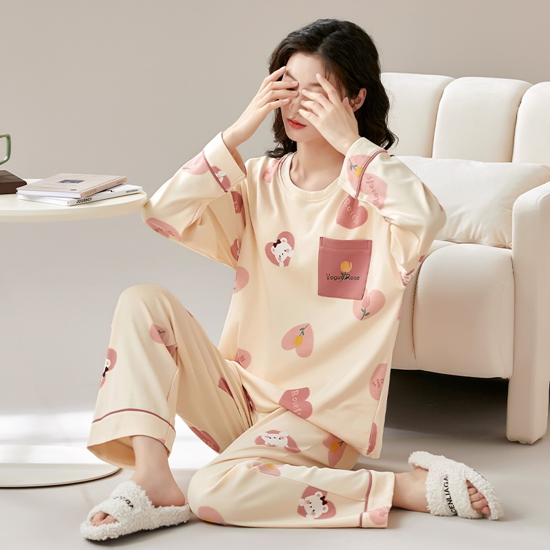 크루 넥 풀오버 파자마 여자 세트 봄 가을 가슴 패드 긴 소매 안티 범프 소녀 의상 홈 의류 가을