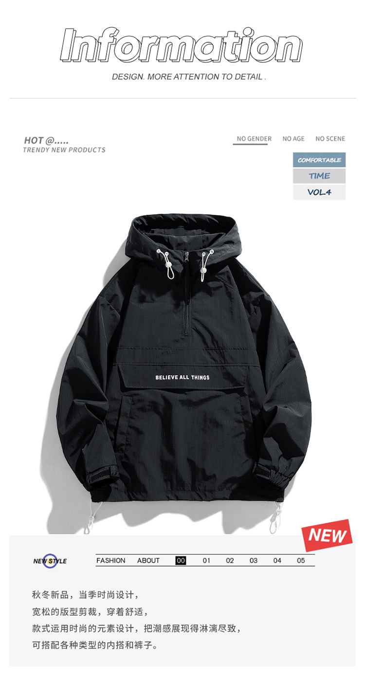 NASOVER 한국 캐주얼 풀오버 재킷 봄과 가을 남녀 커플의 트렌디 한 올 매치 하프 지퍼 재킷