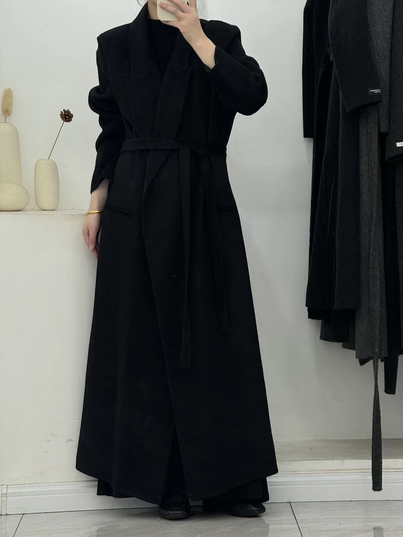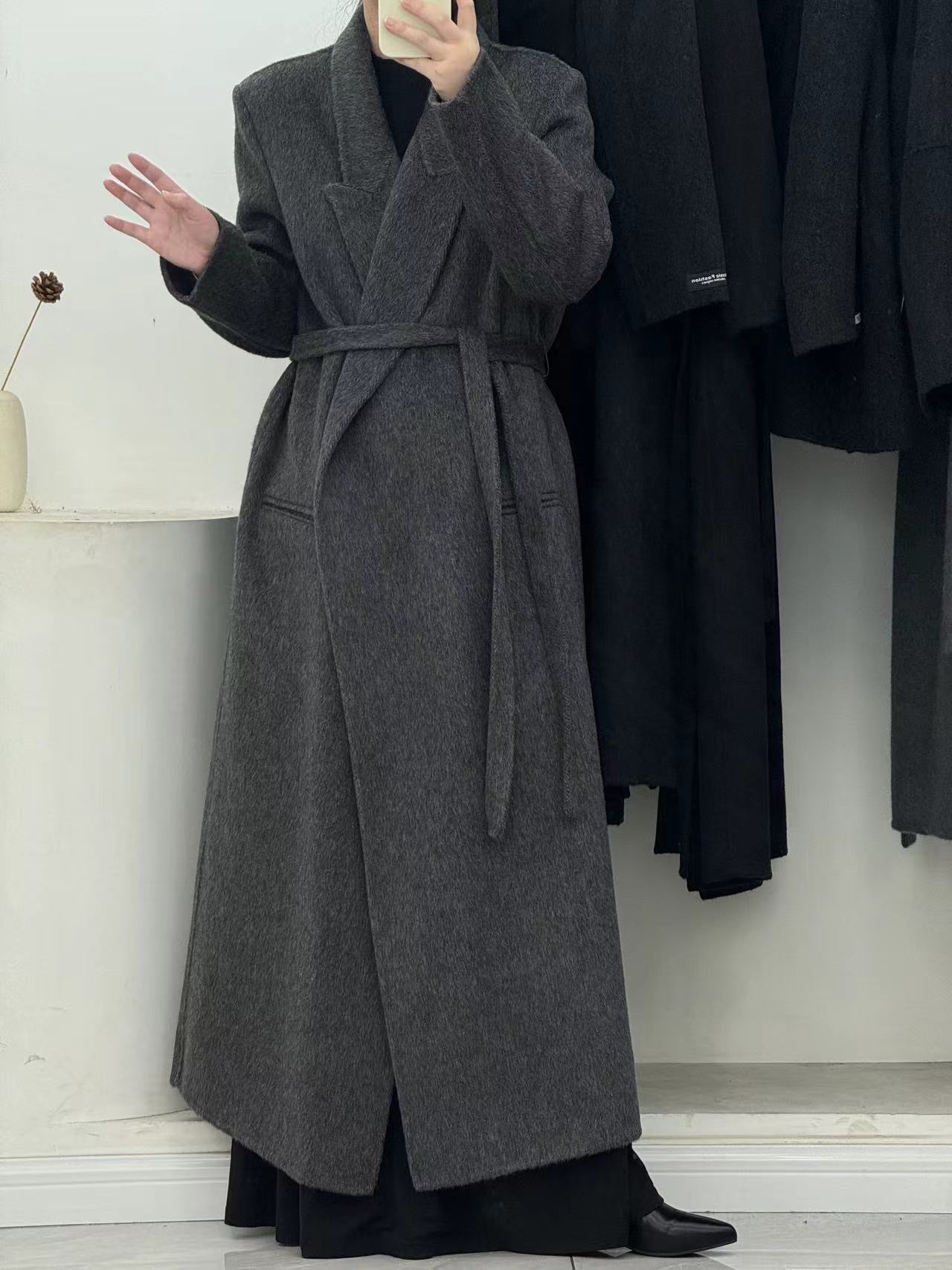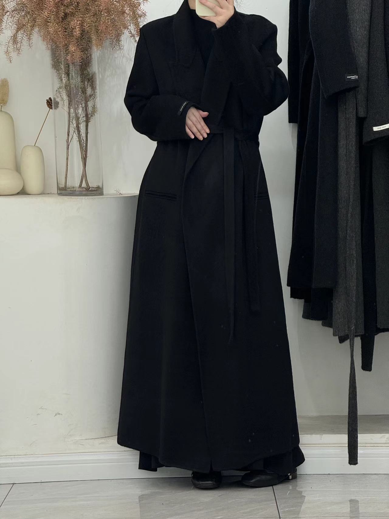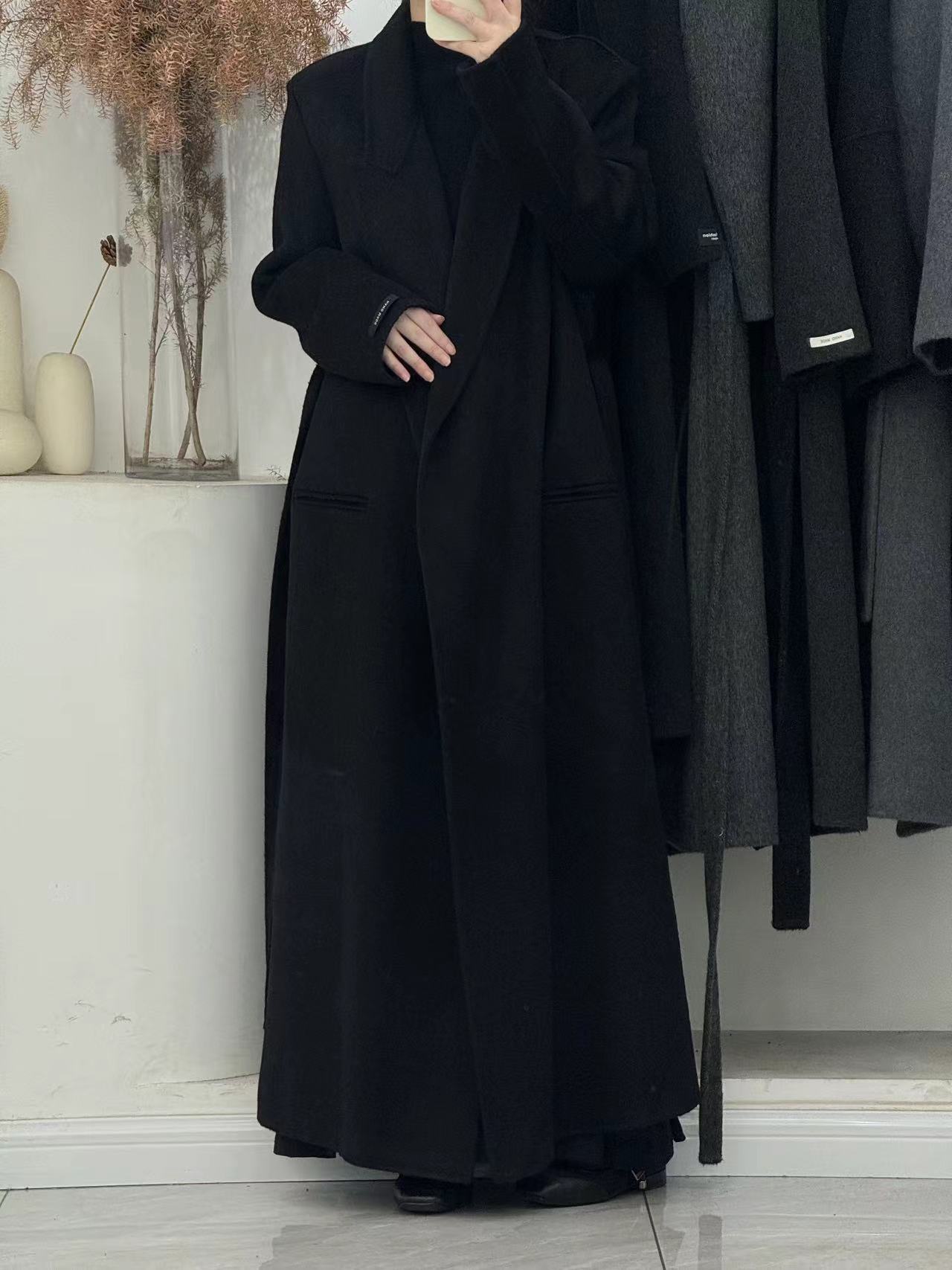 [어깨 게으른 목욕 가운] 느슨한 양면 양모 코트 여자 겨울 라인드 오버 무릎 하이 엔드 두꺼운 여성