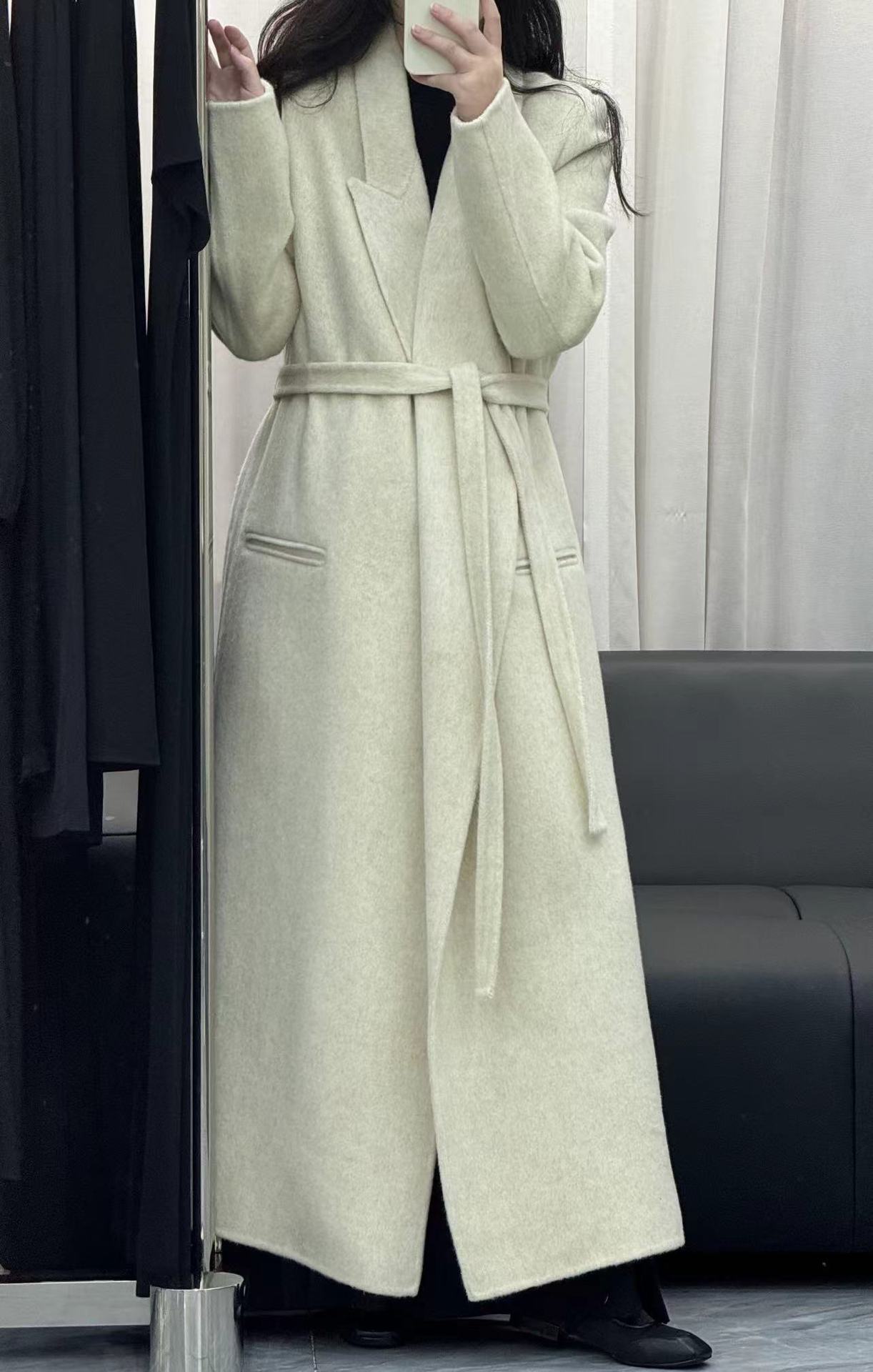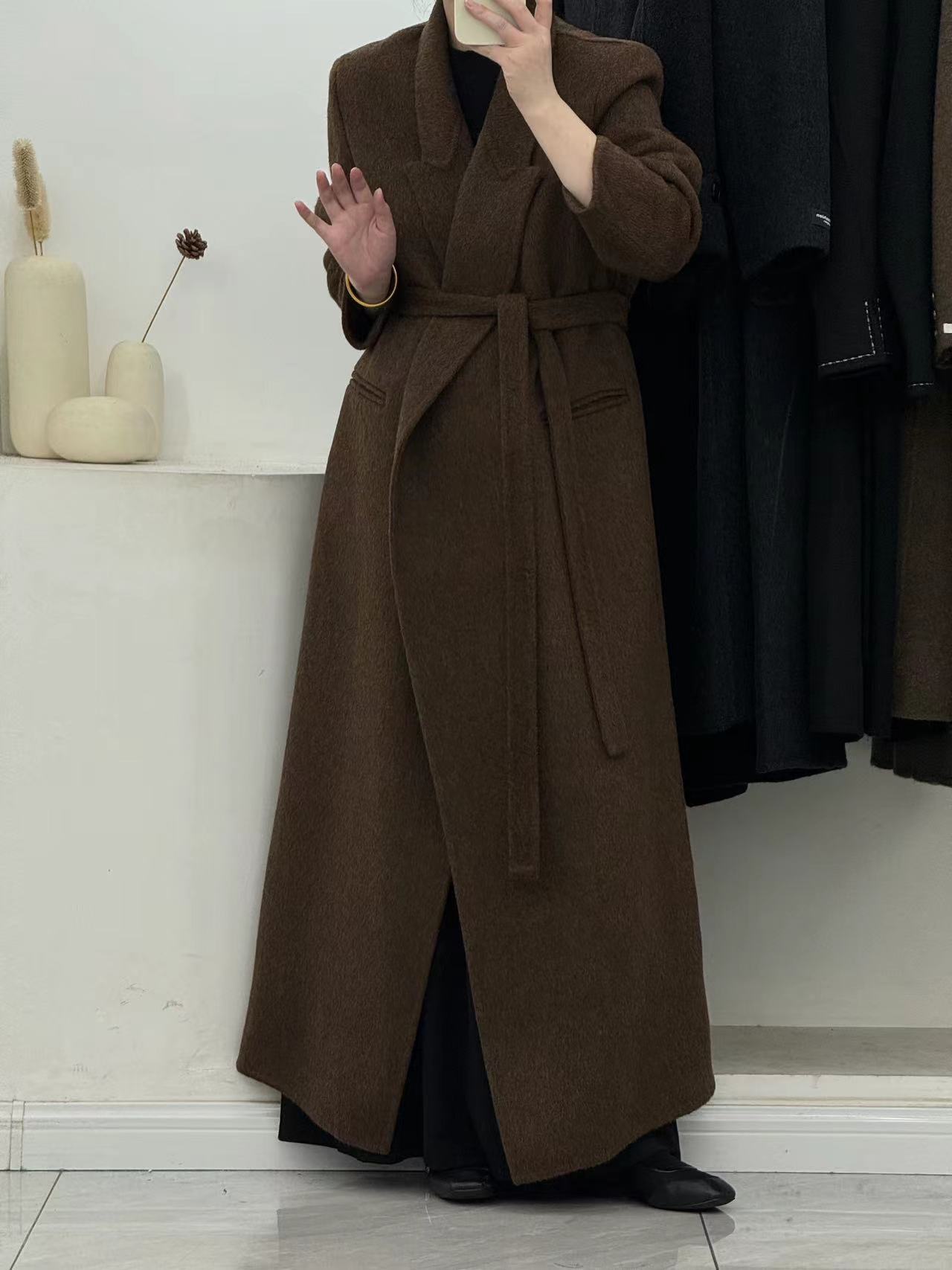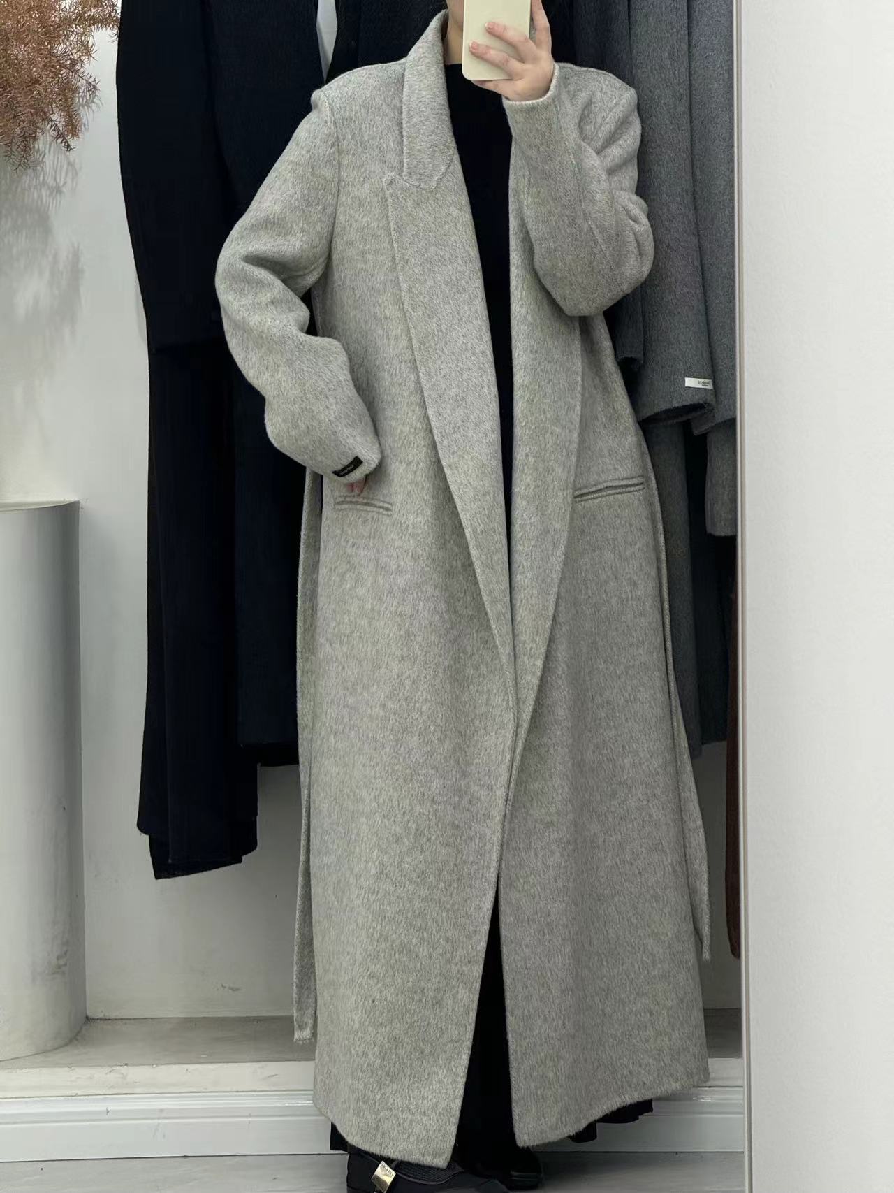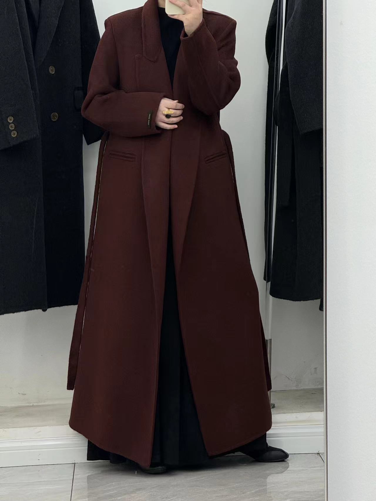 [어깨 게으른 목욕 가운] 느슨한 양면 양모 코트 여자 겨울 라인드 오버 무릎 하이 엔드 두꺼운 여성