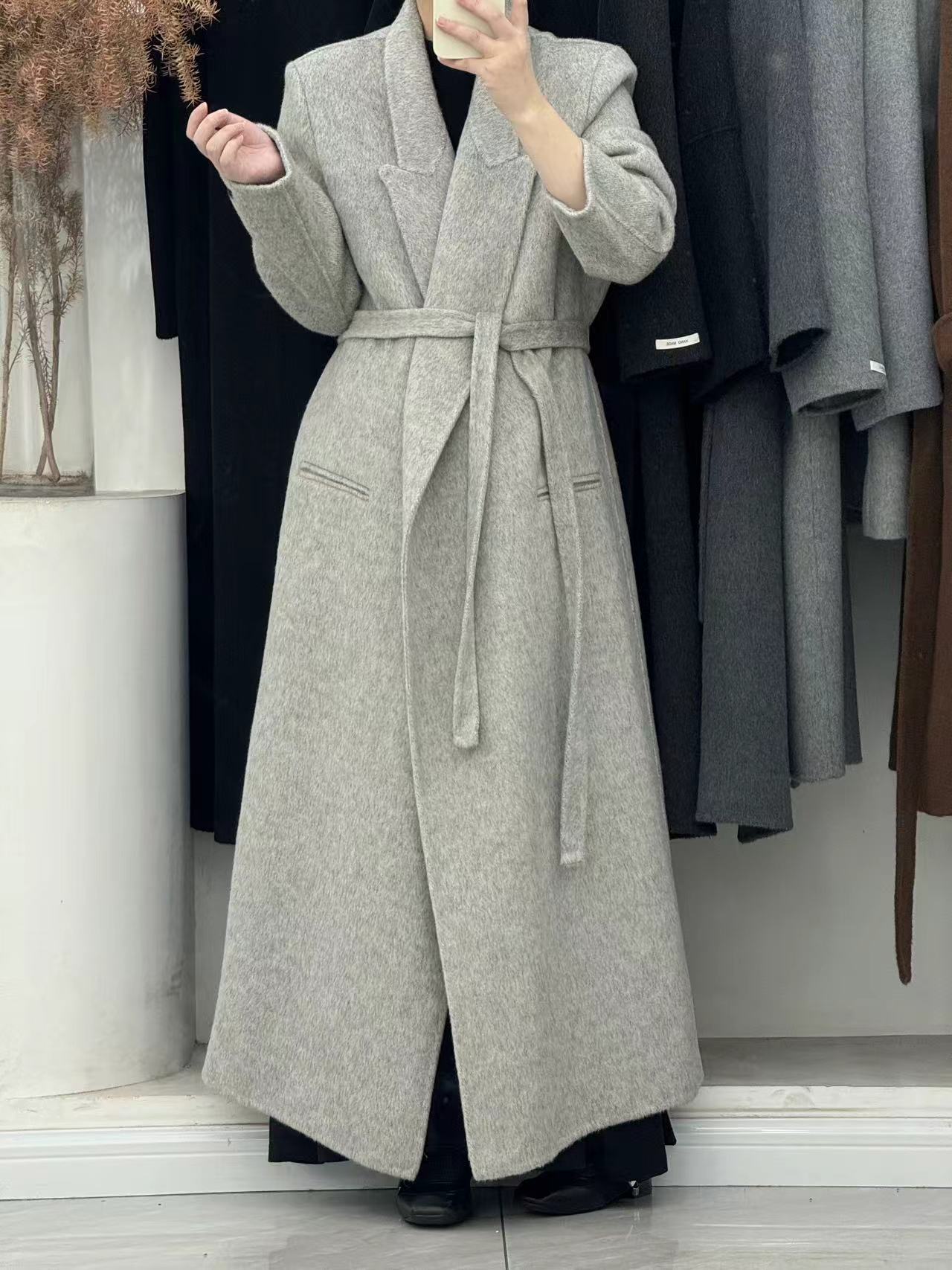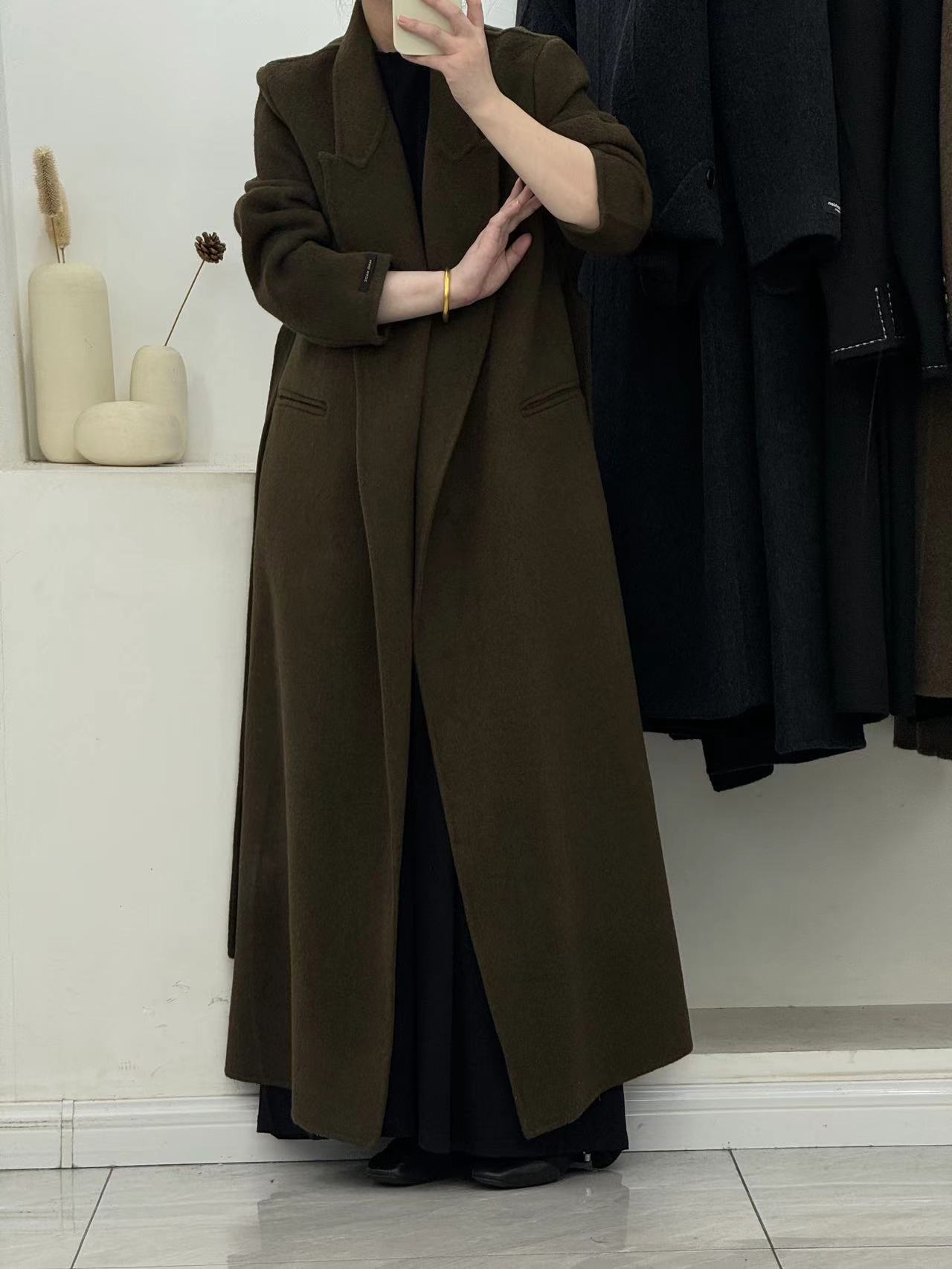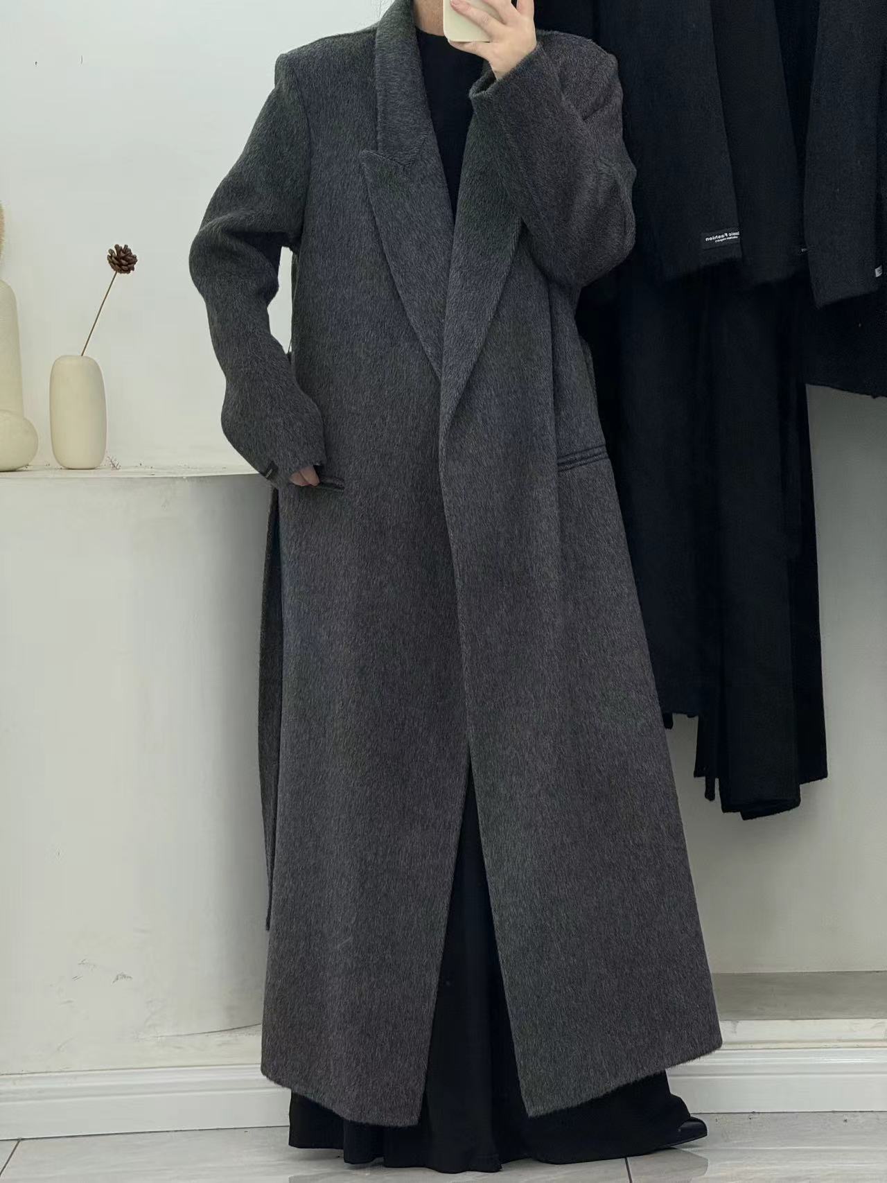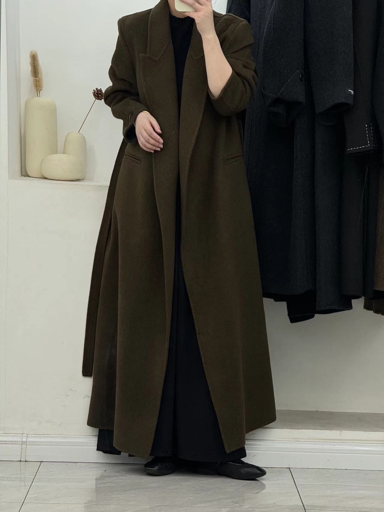 [어깨 게으른 목욕 가운] 느슨한 양면 양모 코트 여자 겨울 라인드 오버 무릎 하이 엔드 두꺼운 여성
