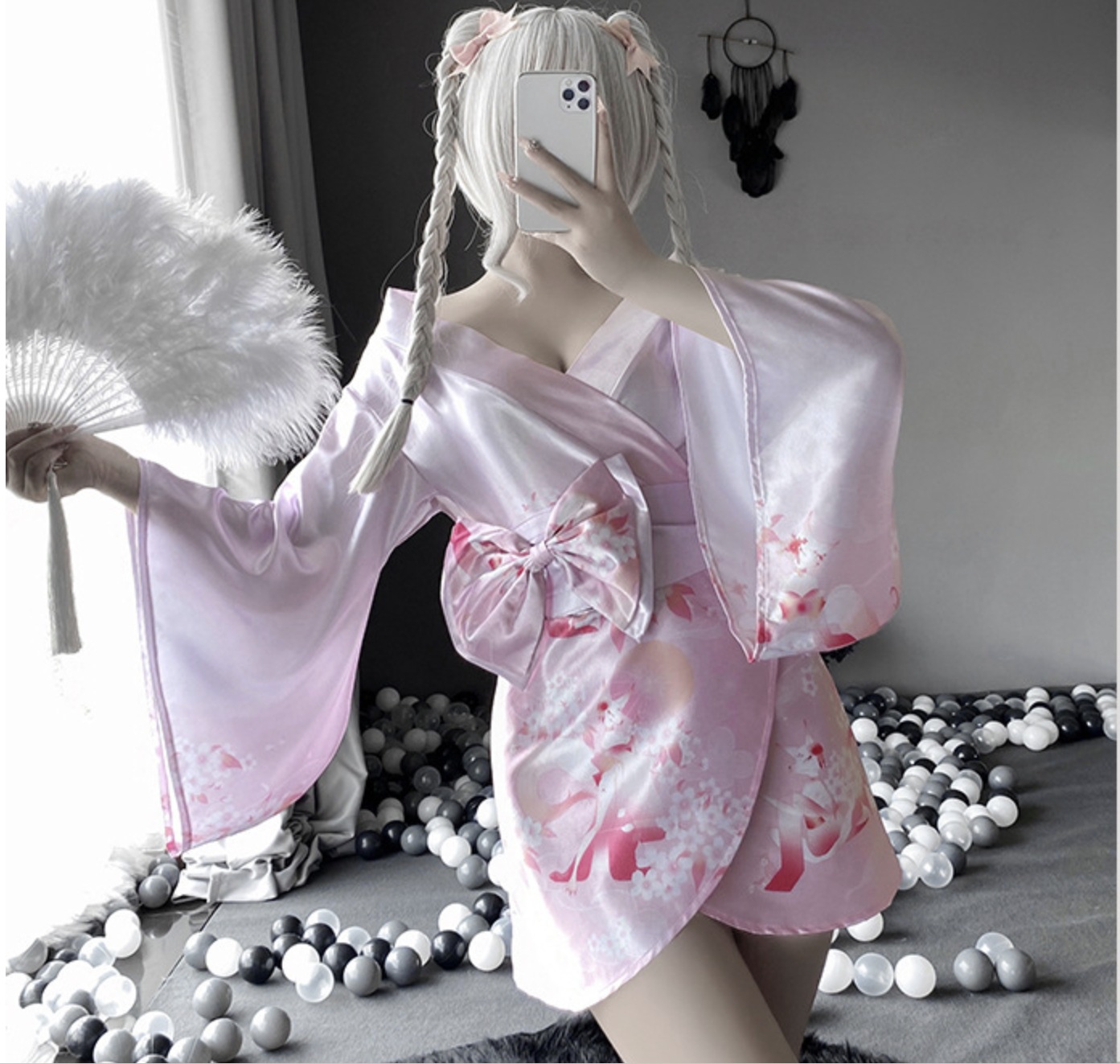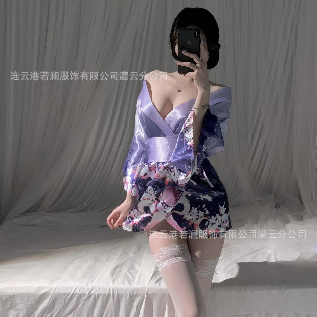 Ruolan 섹스 란제리 일본 기모노 달콤한 섹시한 세컨더리 소녀 카디건 목욕 잠옷 세트 5200
