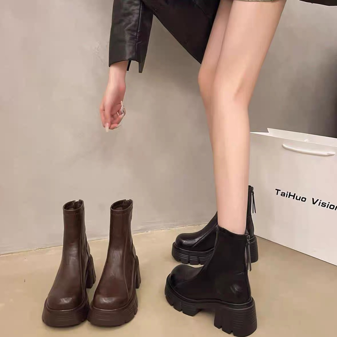 두꺼운 밑창 마틴 부츠 여성 가을 겨울 마틴 부츠 2024 새로운 두꺼운 굽 초가을 부츠 가을 겨울 부츠 슬림 부츠