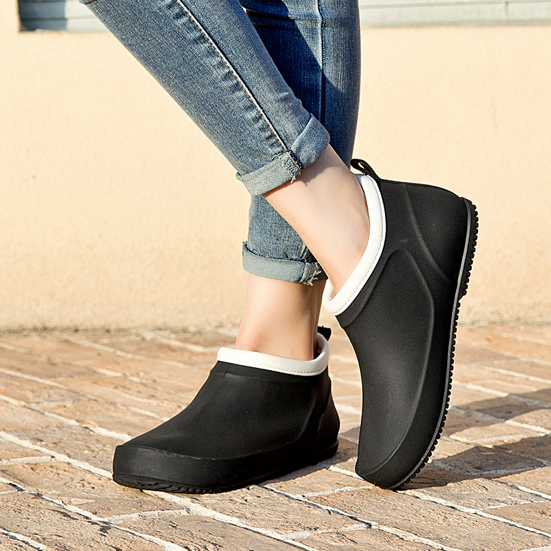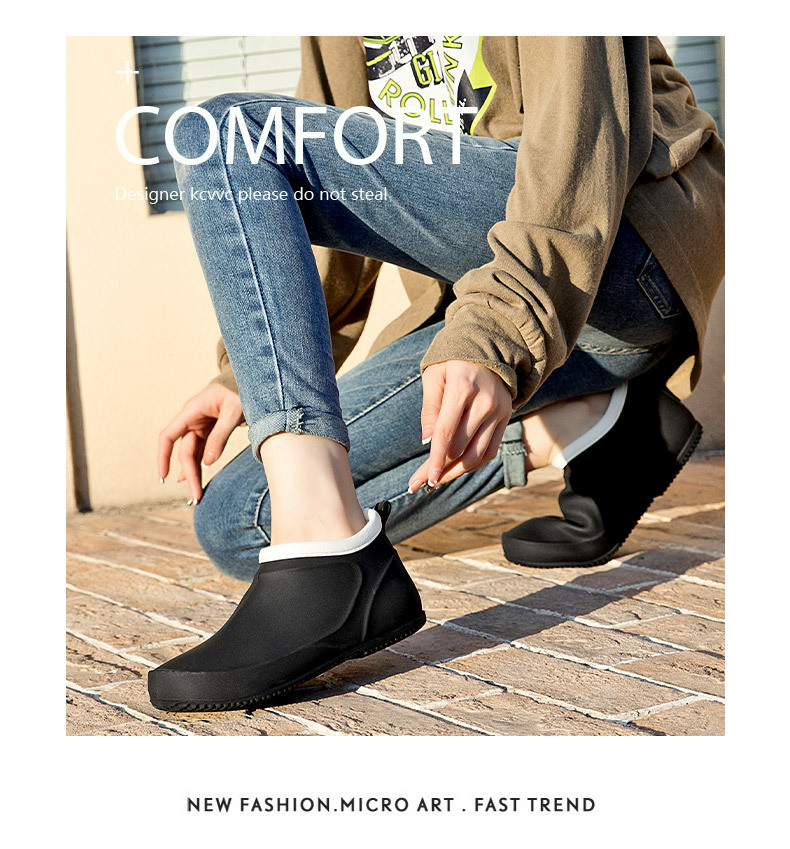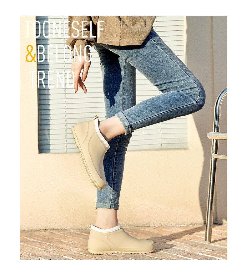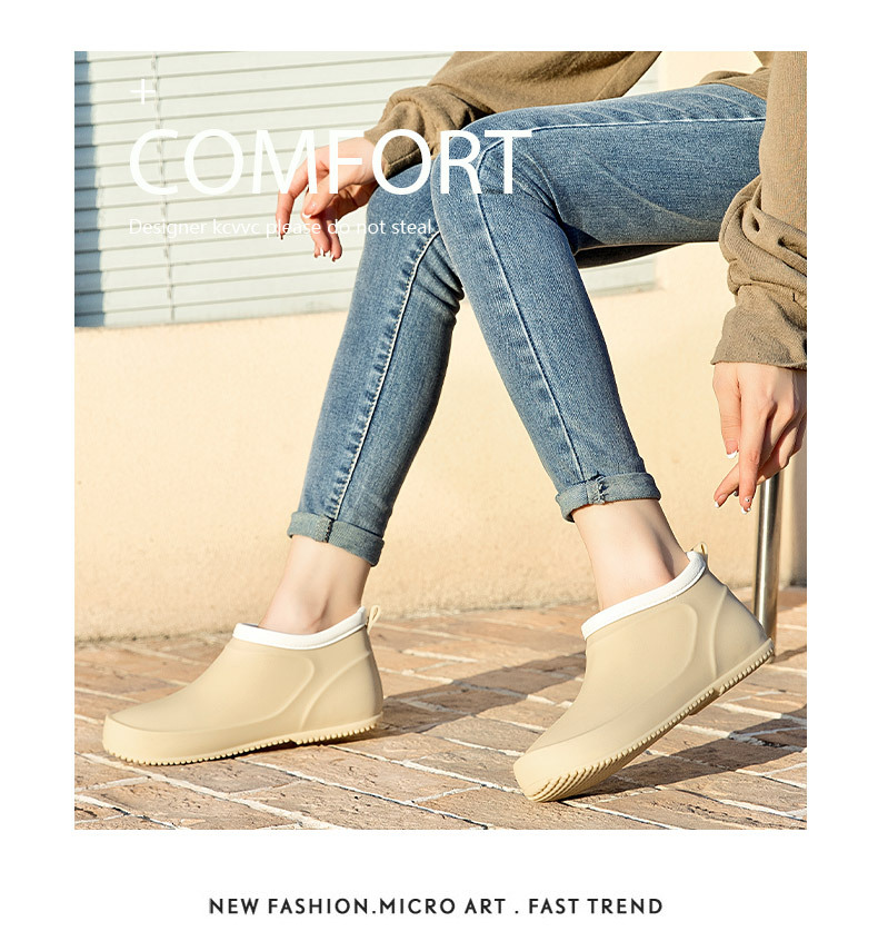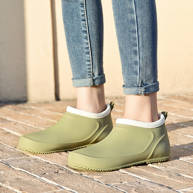 일본과 한국의 뉴 기모 따뜻한 로우 탑 레인 부츠 여성용 미끄럼 방지 경량 방수 신발 짧은 배럴 주방 작업 비 부츠 고무 신발