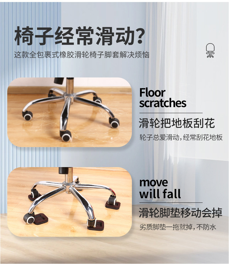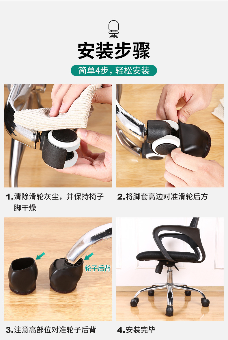 컴퓨터 의자 롤러 보호 커버 도르래 의자 고정 커버 아기 침대 유니버설 휠 미끄럼 방지 발 패드