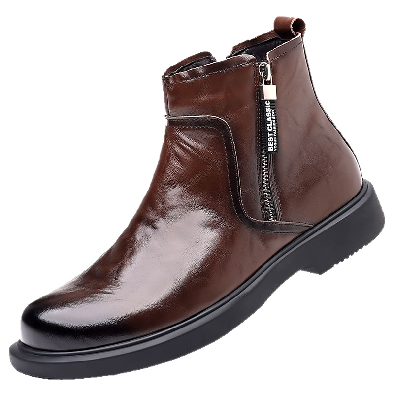 캐주얼 슬립온 마틴 부츠 2026 가을/겨울 남성용 면화 안감 가죽 부츠, 두꺼운 가죽 부츠, 하이탑 보온 가죽 부츠