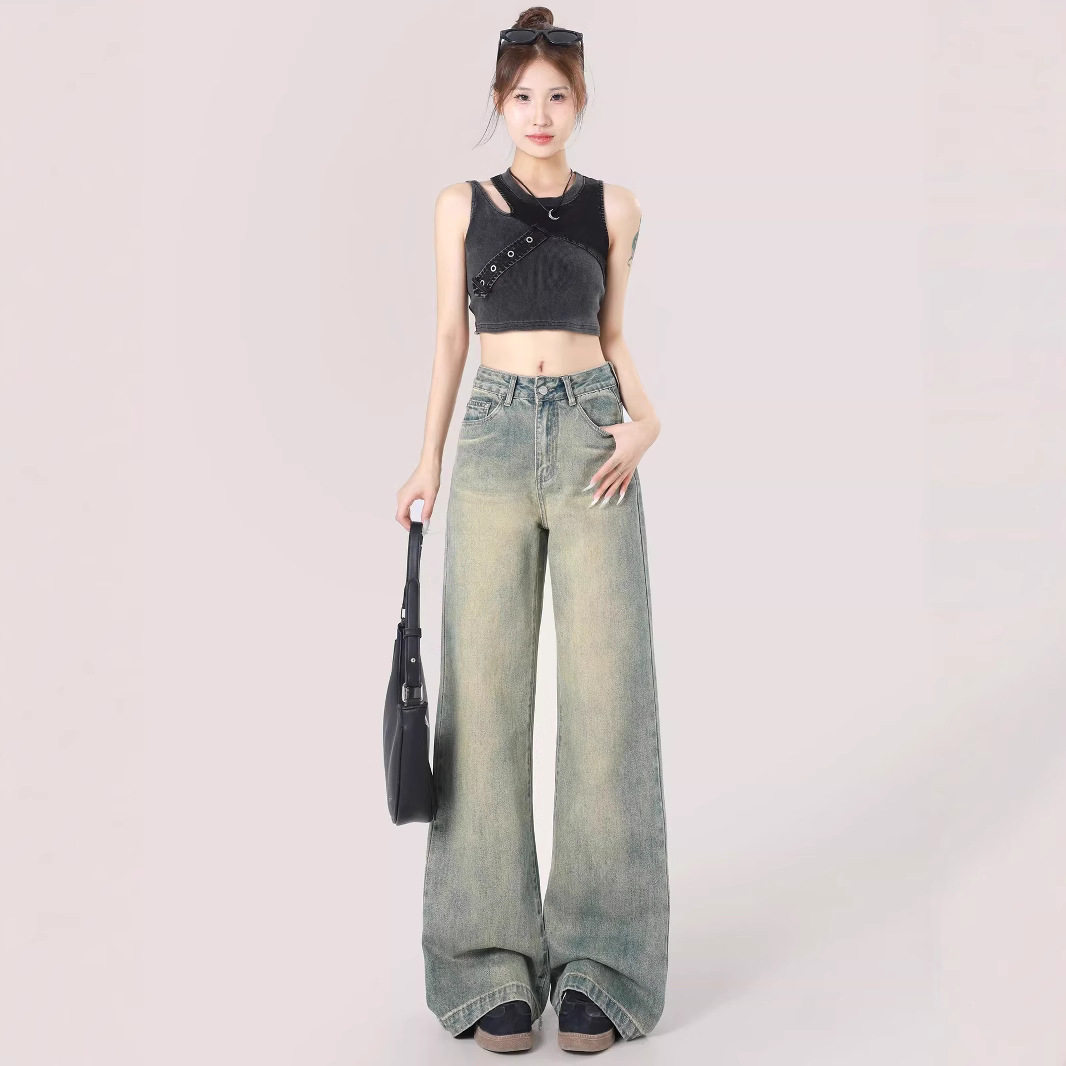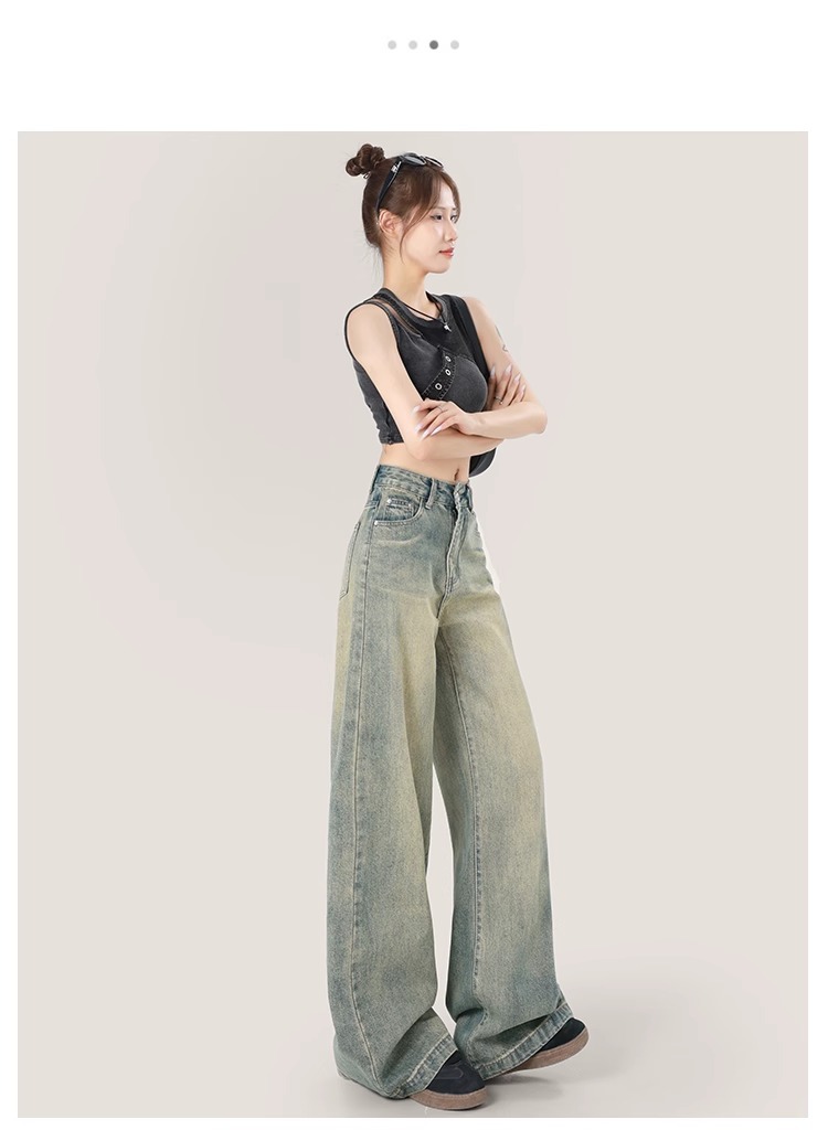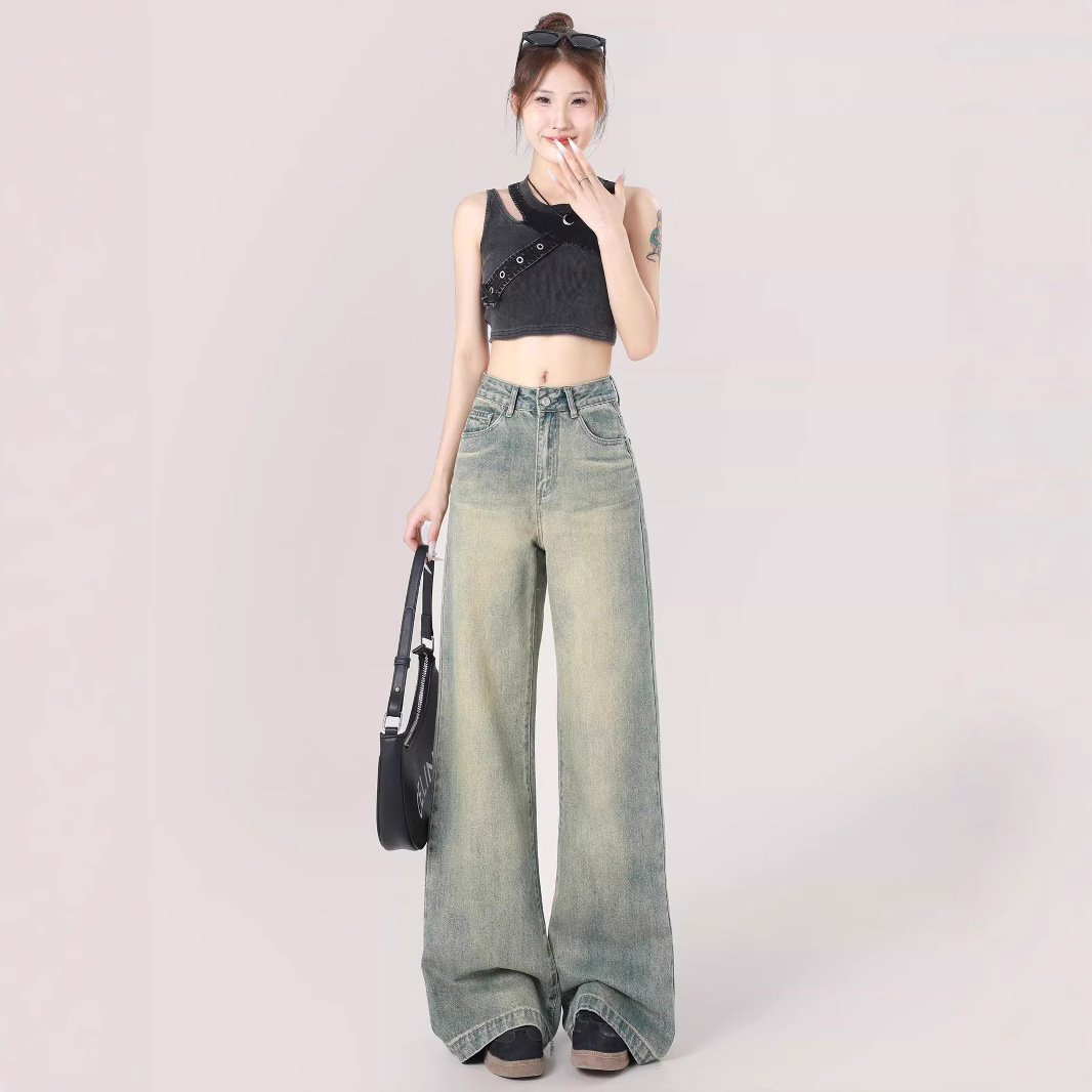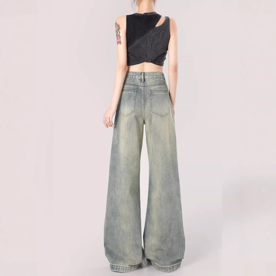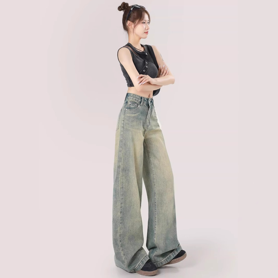 미국 스타일 높은 허리 오래 된 넓은 다리 청바지 여성의 2024 새로운 가을과 겨울 느슨한 슬림