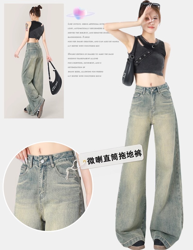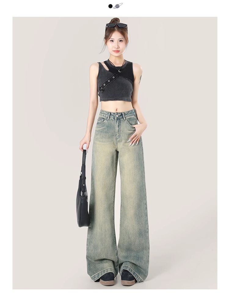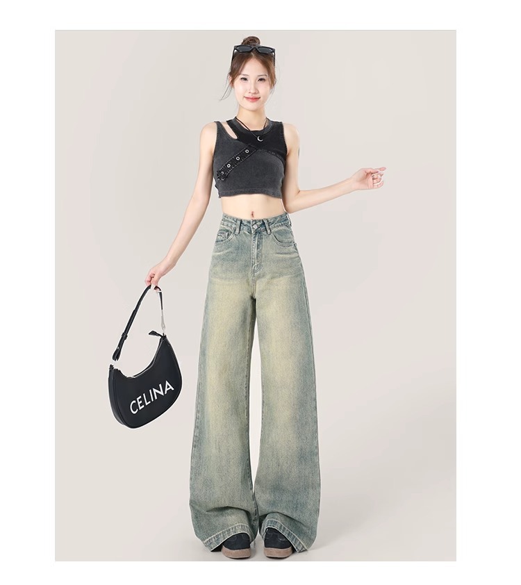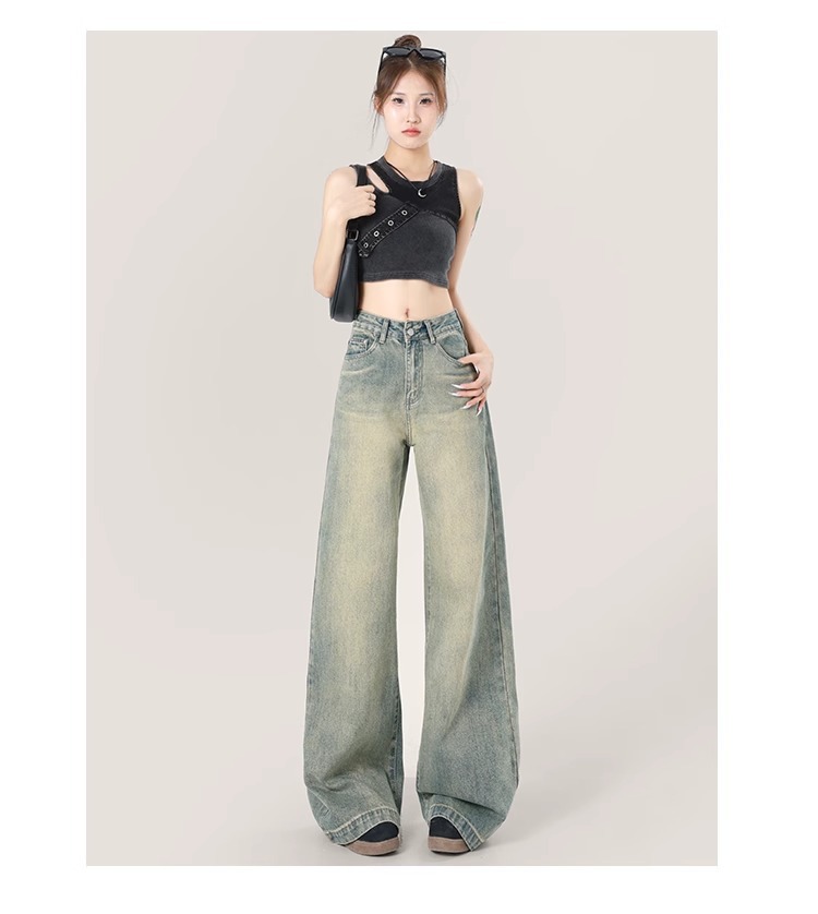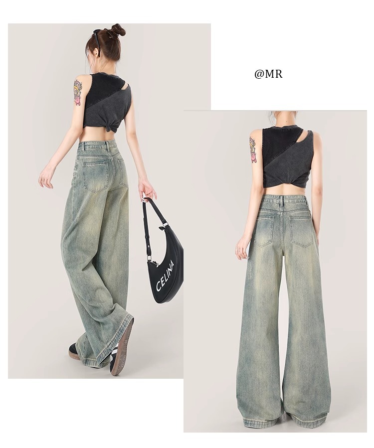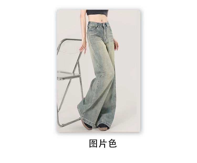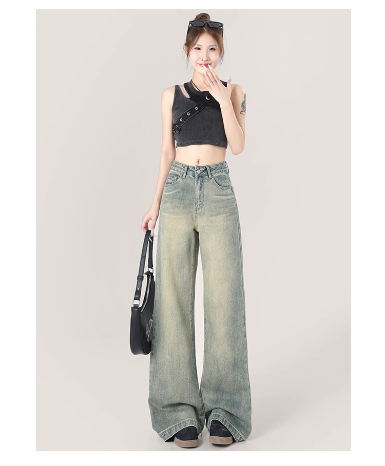 미국 스타일 높은 허리 오래 된 넓은 다리 청바지 여성의 2024 새로운 가을과 겨울 느슨한 슬림
