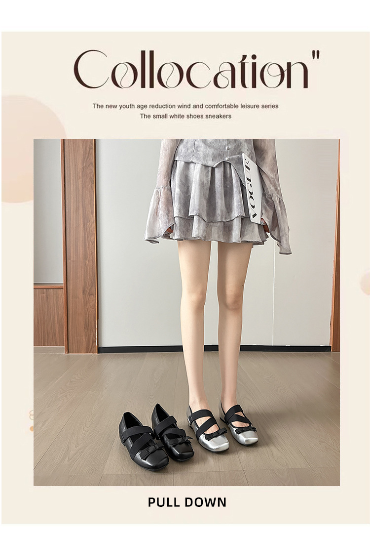 [재고] 내부 높이 발레 신발 여성 2024 새로운 레트로 메리 제인 플랫 실버 33 스몰 사이즈 싱글 신발