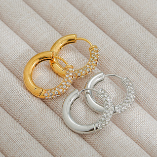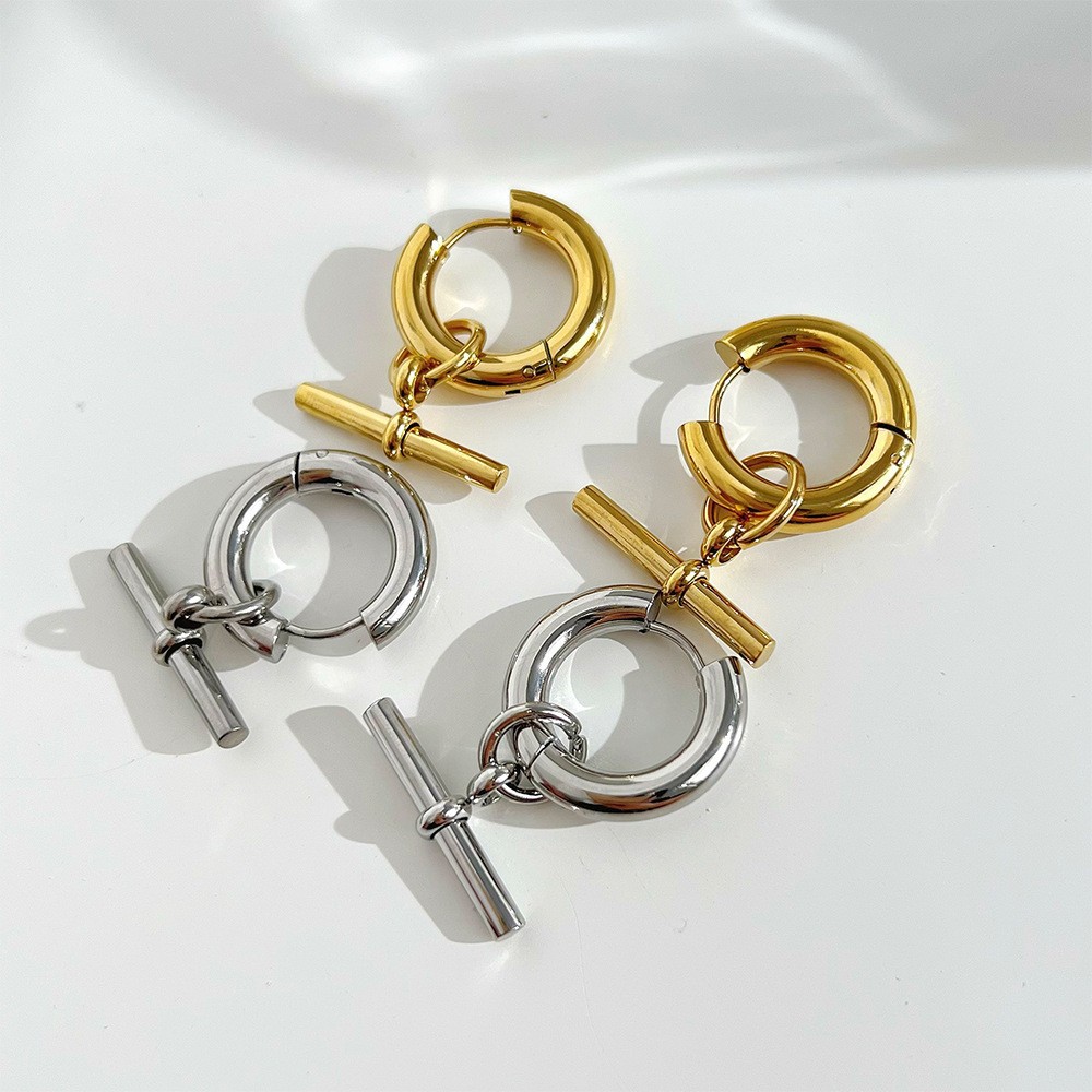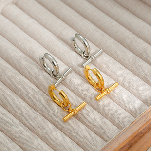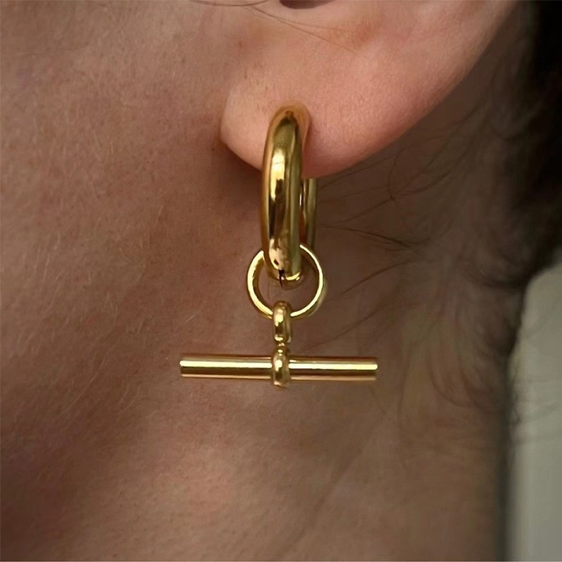 유럽과 미국의 복고풍 기하학적 T 자형 여성 귀걸이 티타늄 스틸 비 페이딩 Ot 버클 펜던트 귀걸이 패션 18K 귀걸이