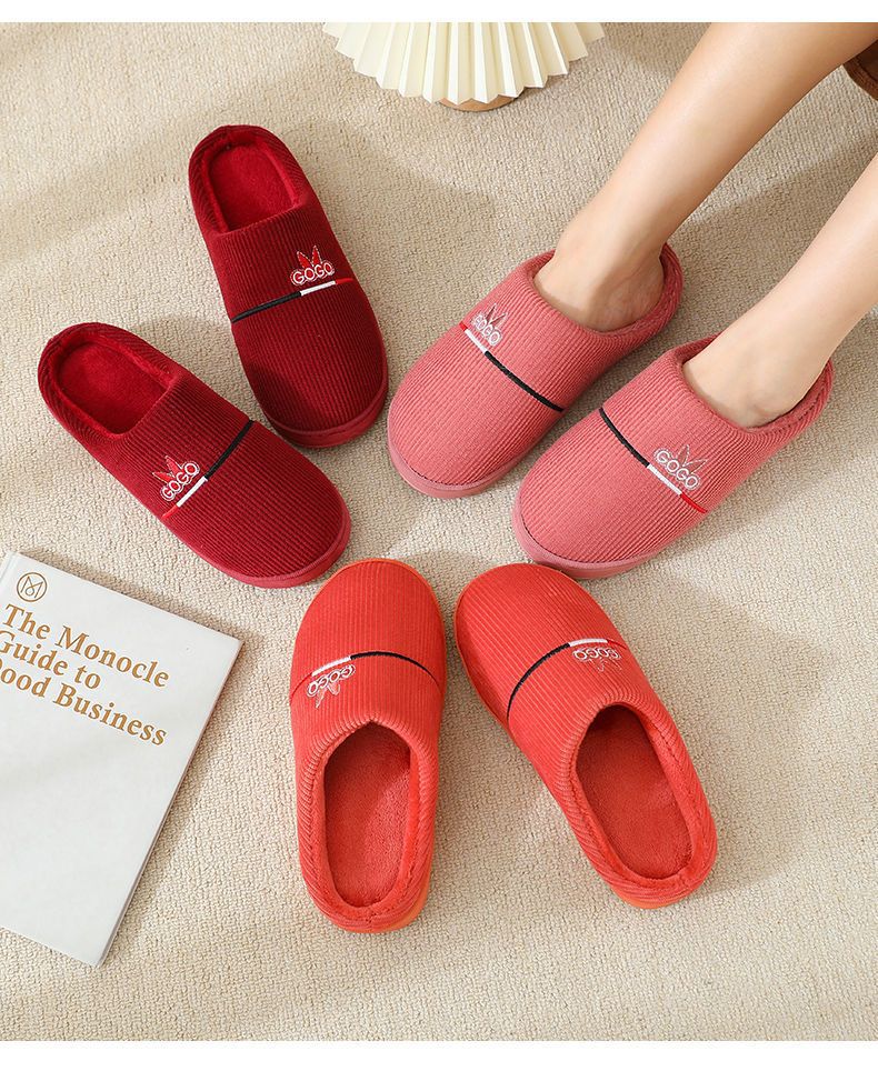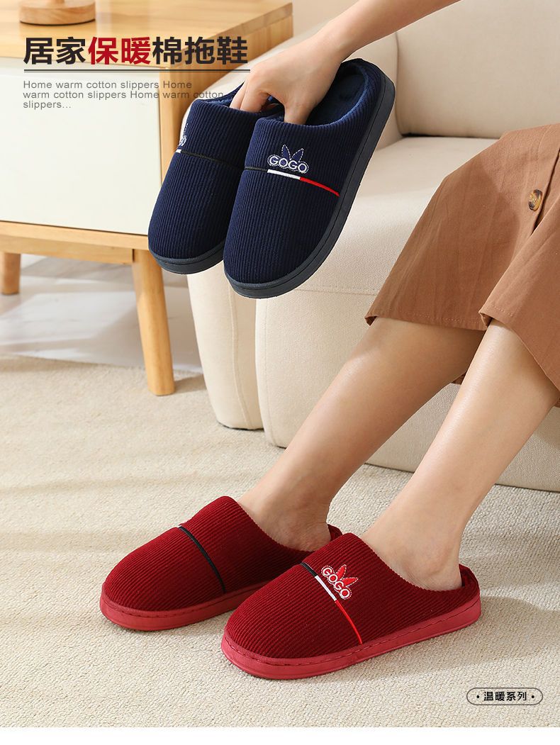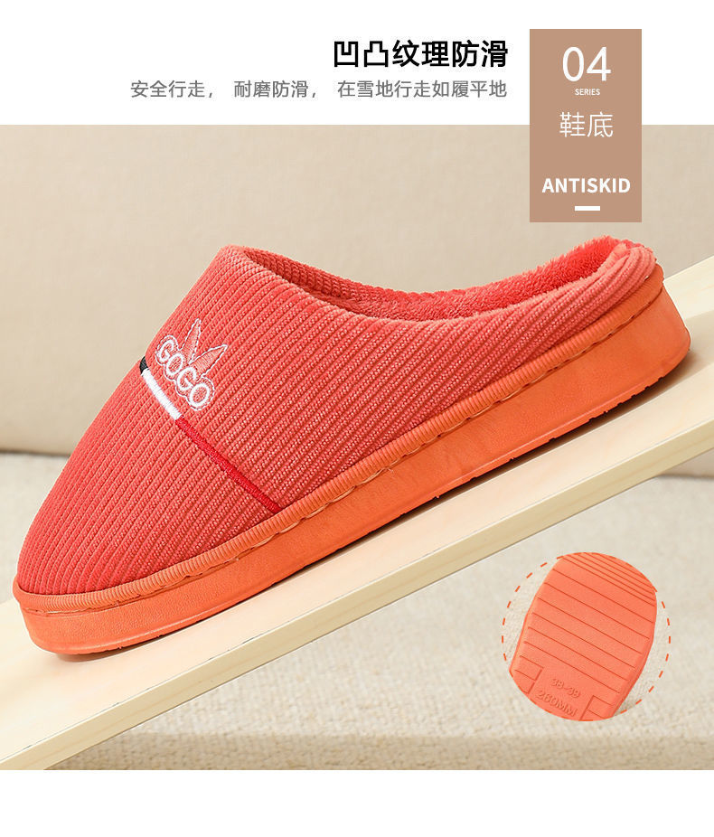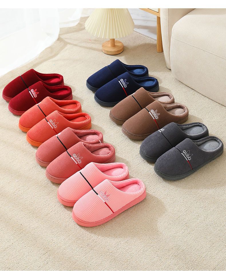 2024 새로운 가을과 겨울 면화 슬리퍼 여성 커플 실내 가정 및 가정용 비 슬립 두꺼운 문 가방 뒤꿈치 슬리퍼 남성용