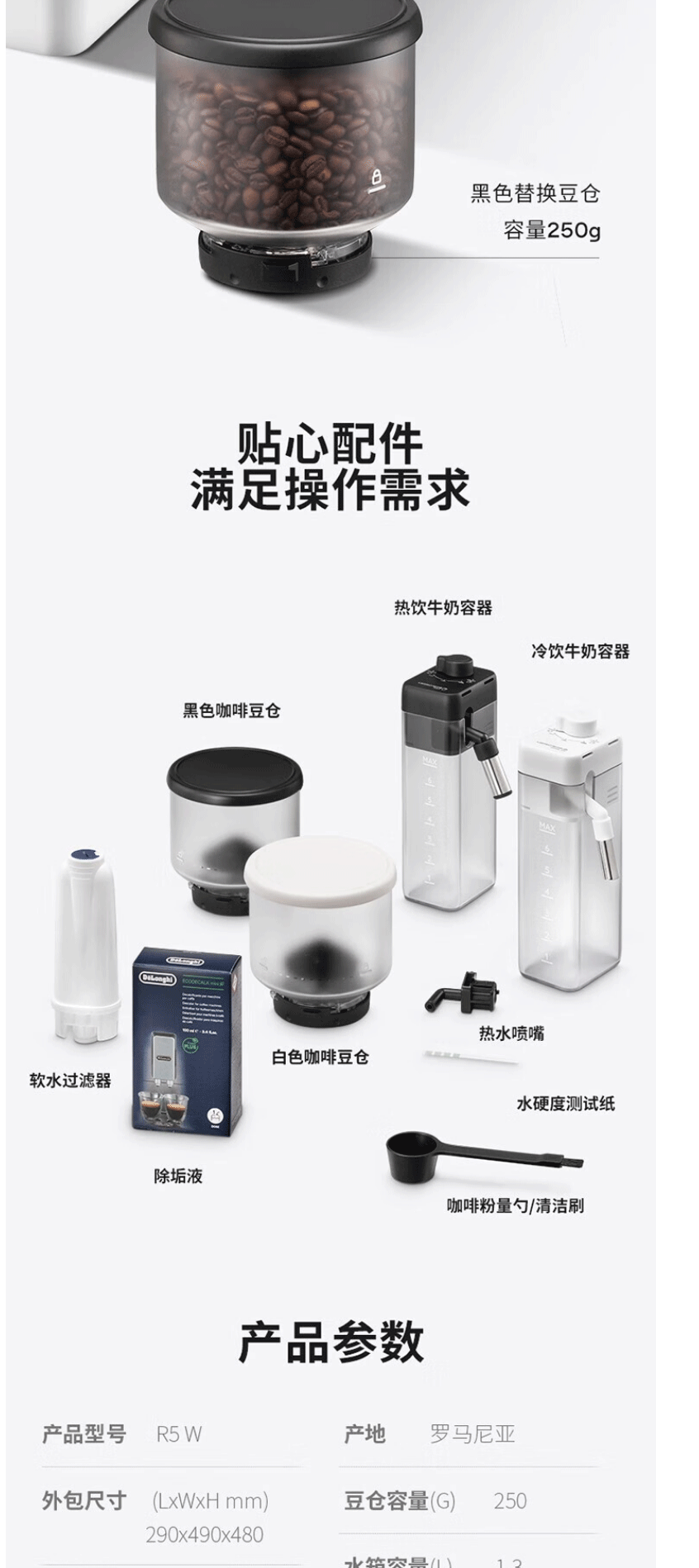 Delonghi 커피 머신 이탈리아 완전 자동 커피 머신 가정용 컬러 터치 스크린 더블 콩 창고 R5W