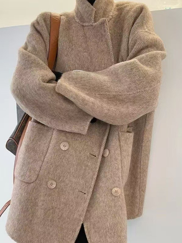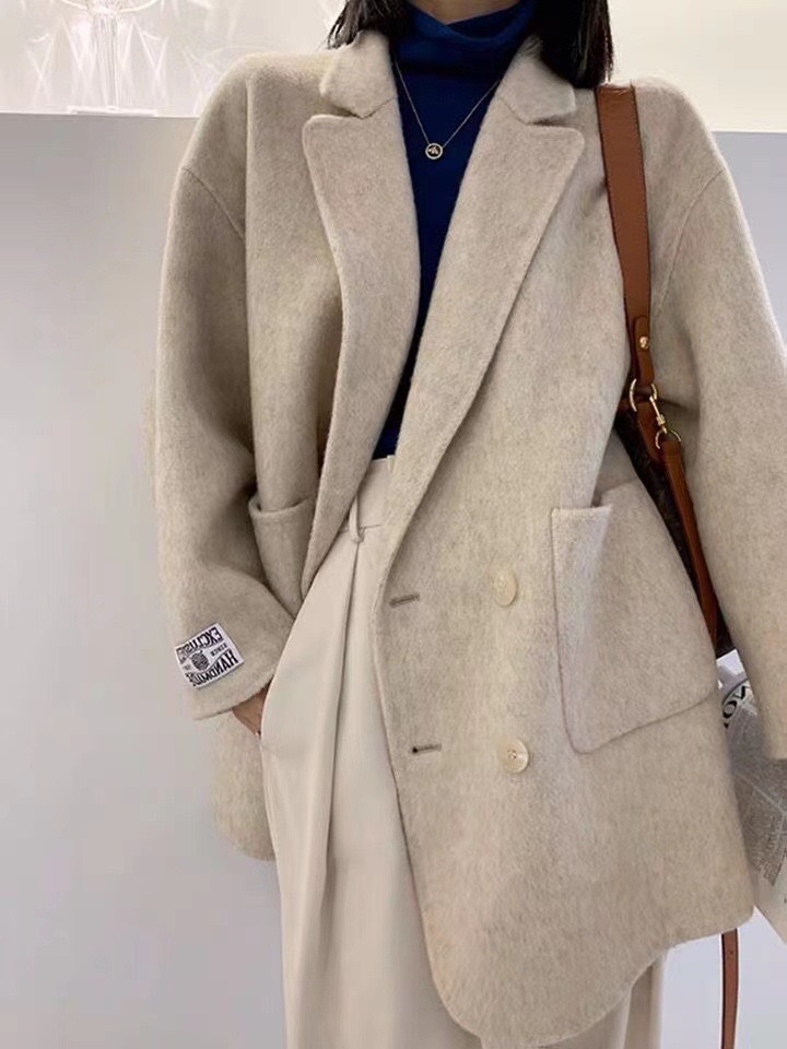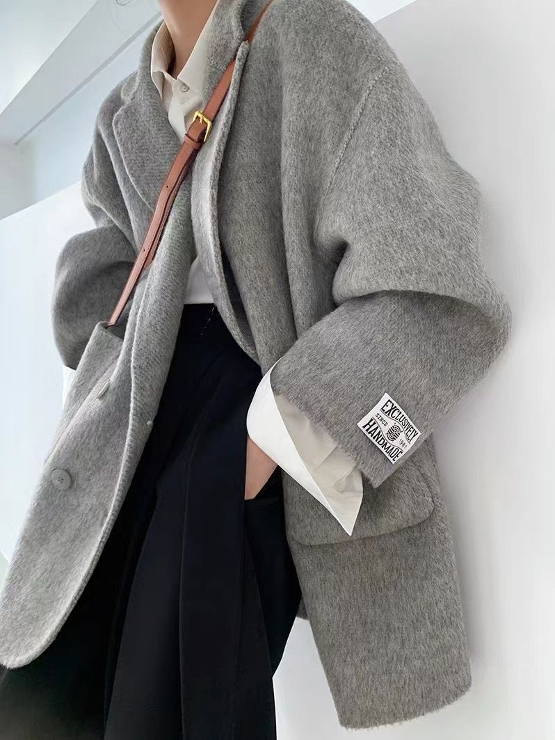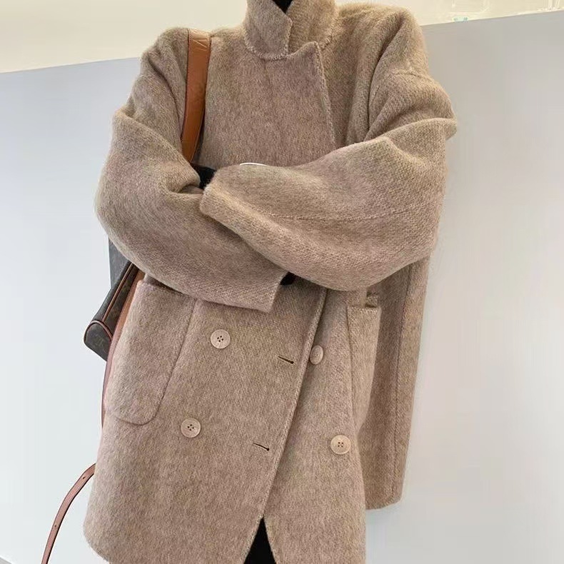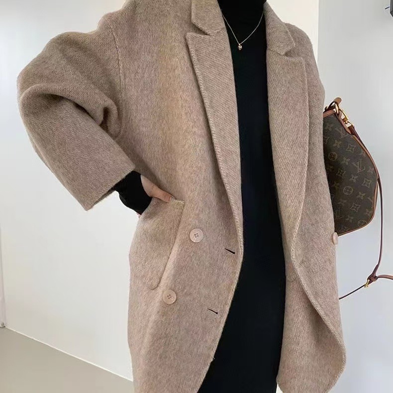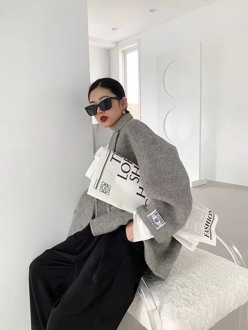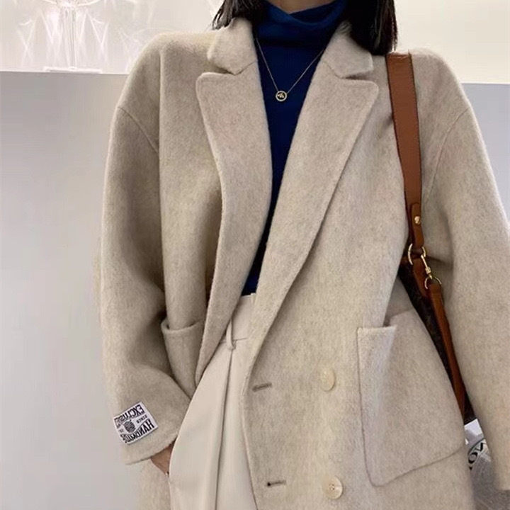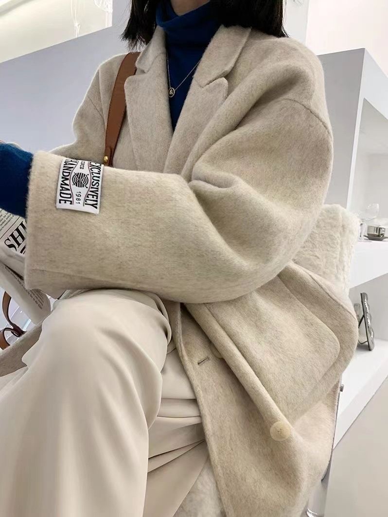 여성을 위한 가을 겨울 고급 부드럽고 밀랍 같은 짧은 양면 캐시미어 코트, 여성을 위한 느슨하고 고급 한국 모직 정장 재킷