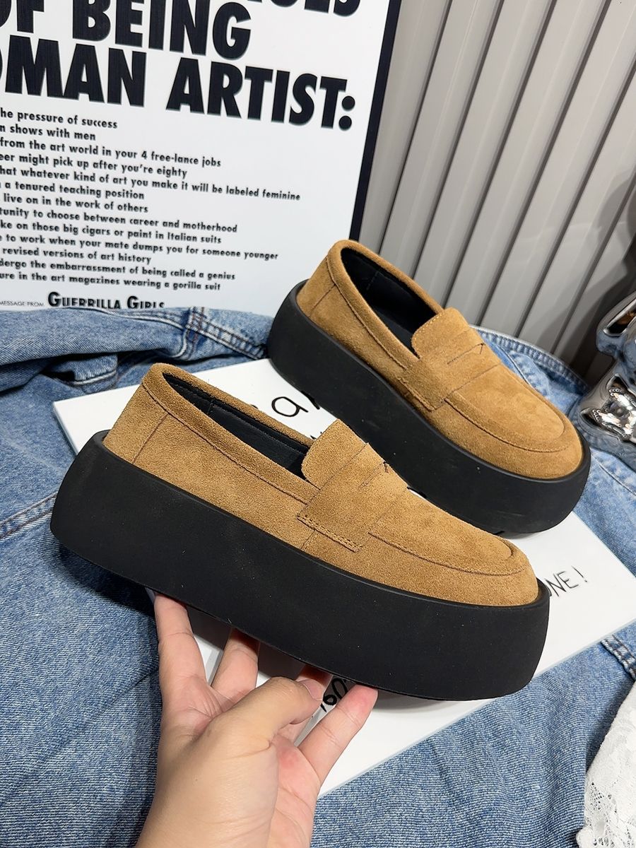 핫 로퍼 2024 새로운 캐주얼 신발 편안한 패션 올 매치 슬리밍 울트라 라이트 두꺼운 바닥 여성 올 매치 트렌디 신발