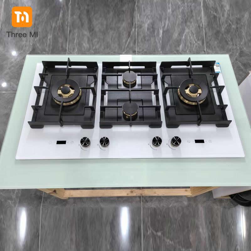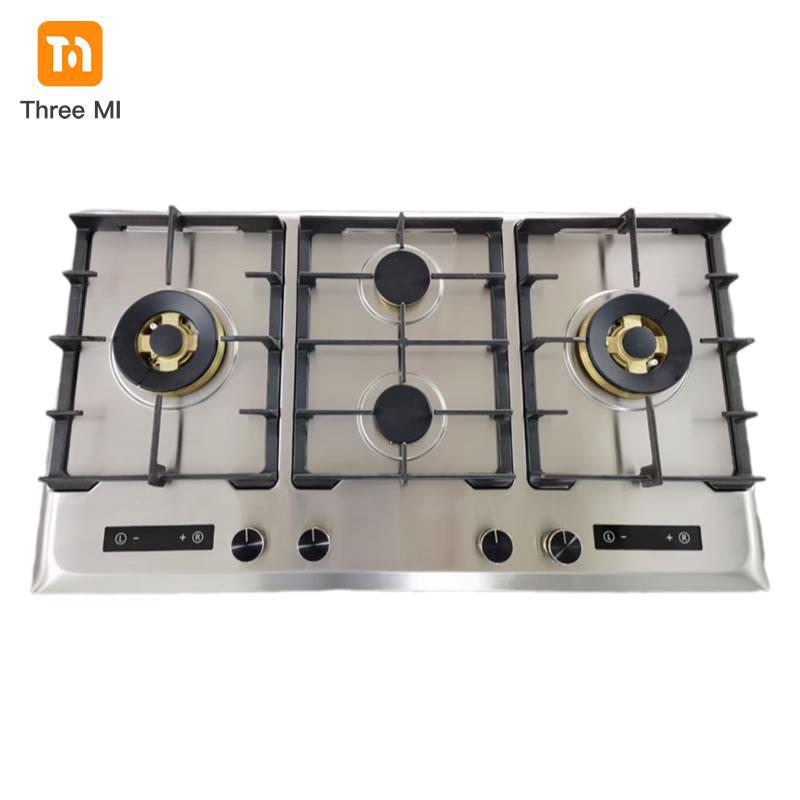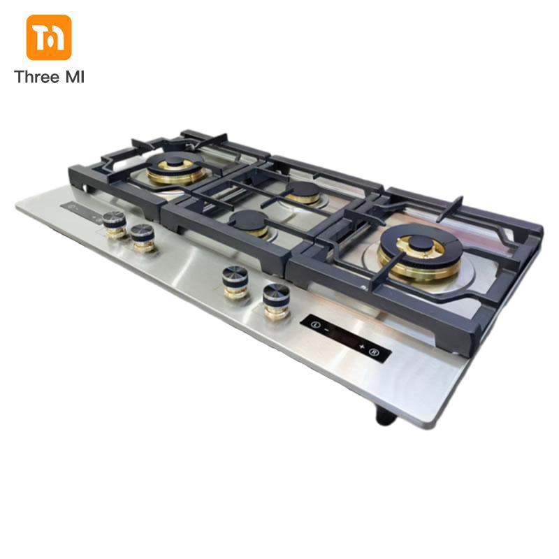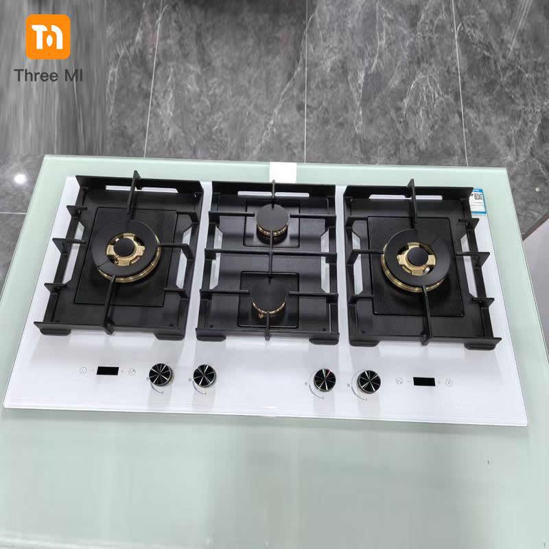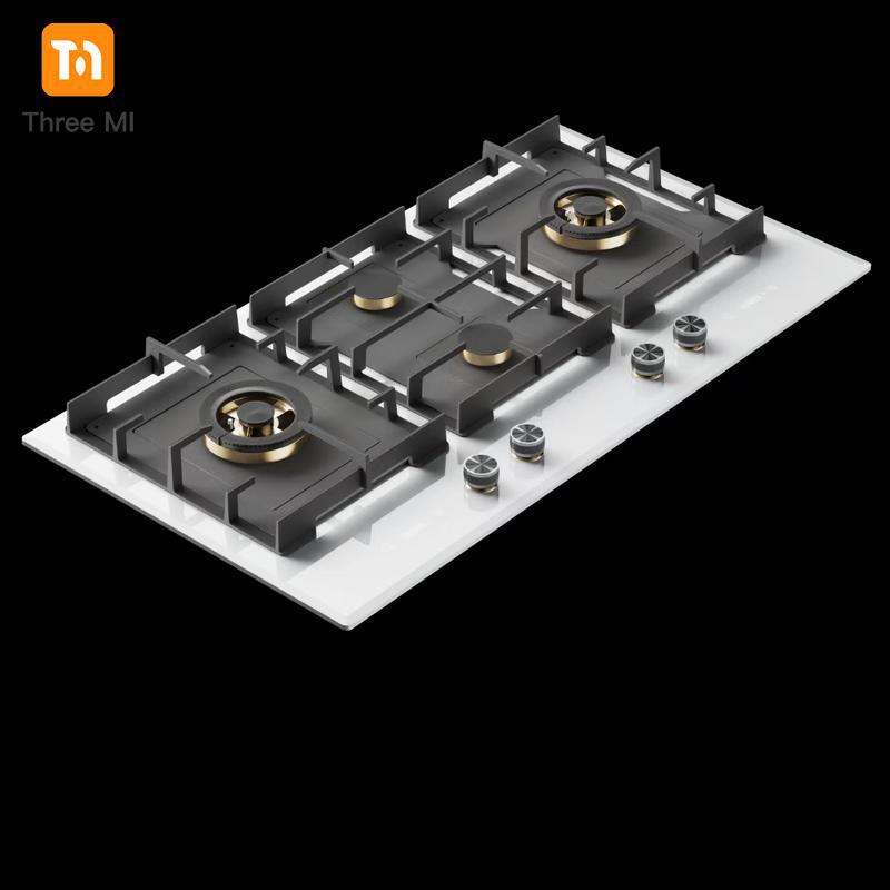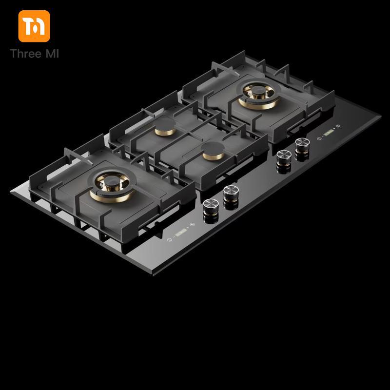2.铝合金飞机炉头,左右上铜下铝全黑火盖.中间铁盖. 天然气左右5.2kw中间1.8kw,液化气左右5.0kw中间1.3kw