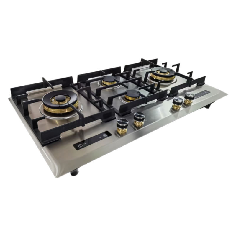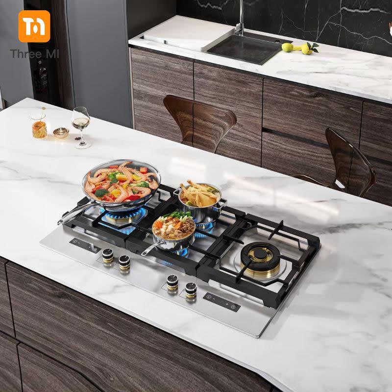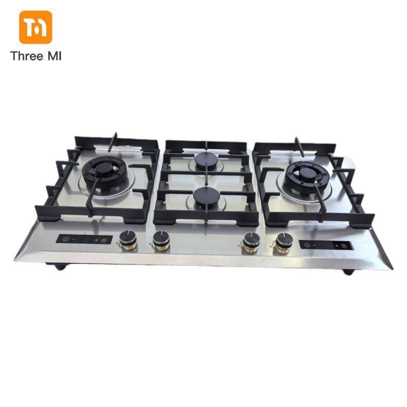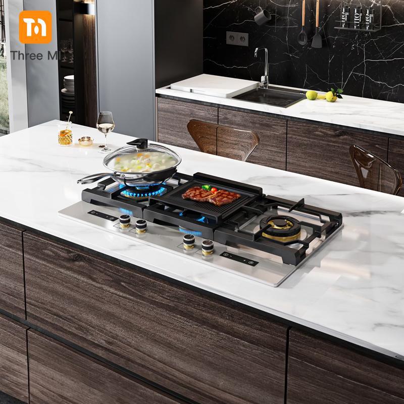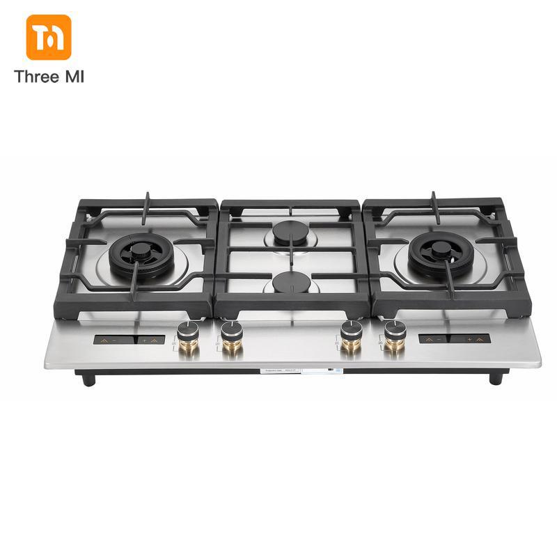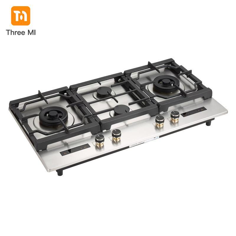 2.铝合金飞机炉头,左右上铜下铝全黑火盖.中间铁盖. 天然气左右5.2kw中间1.8kw,液化气左右5.0kw中间1.3kw