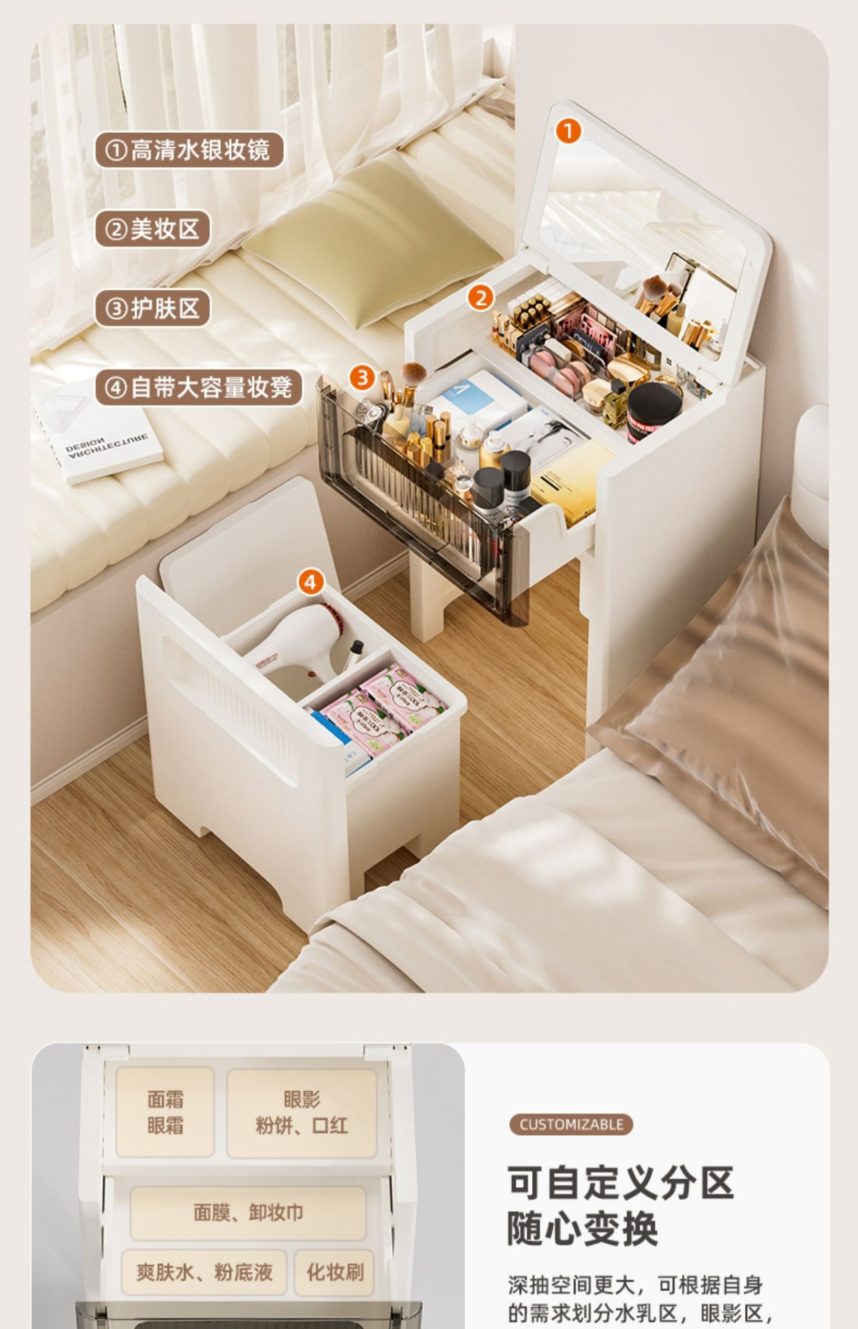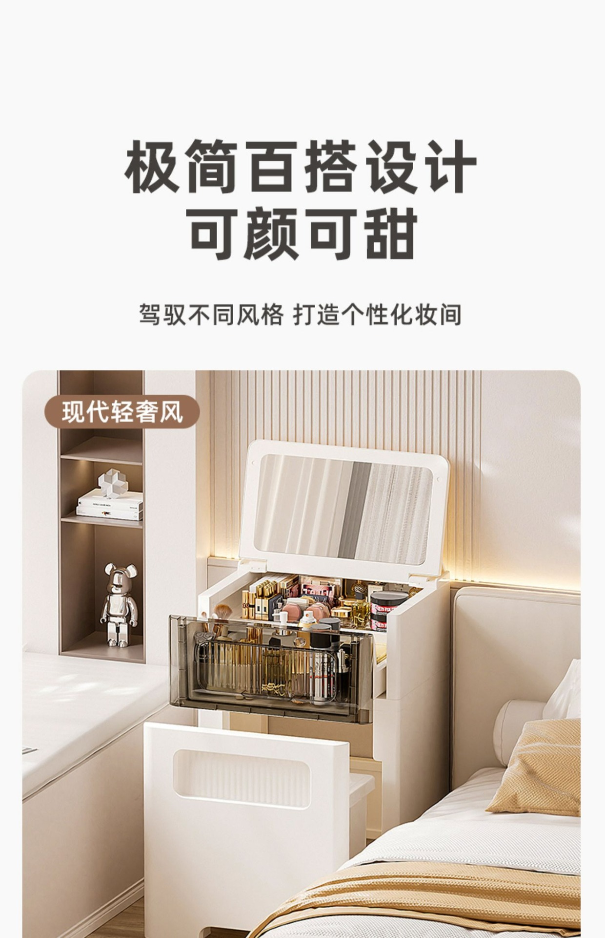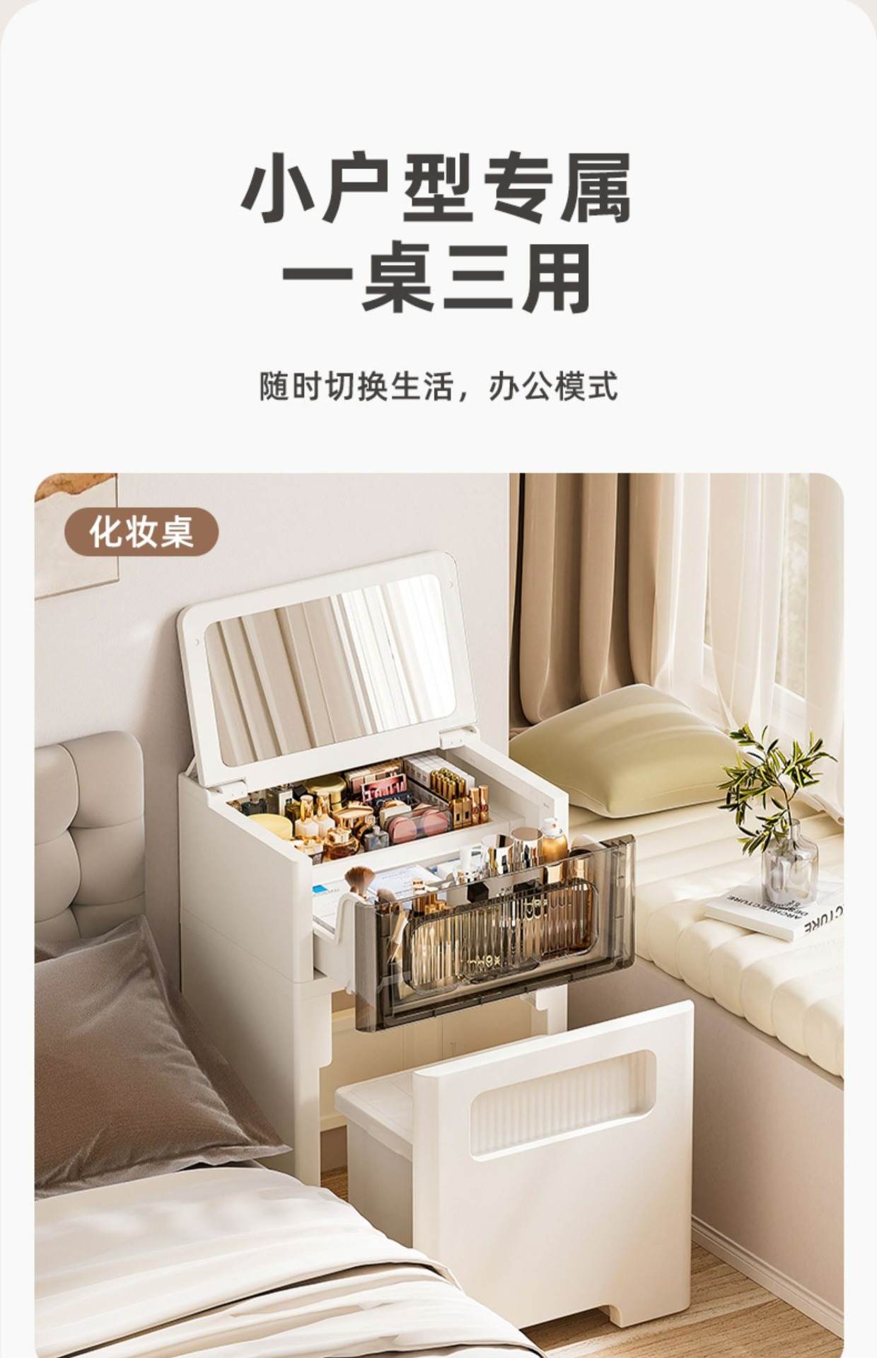 야야 드레싱 테이블 작은 메이크업 테이블 침대 옆 테이블 침실 플라스틱 간단한 플립 베이 창 보관 캐비닛 통합 새로운 스타일