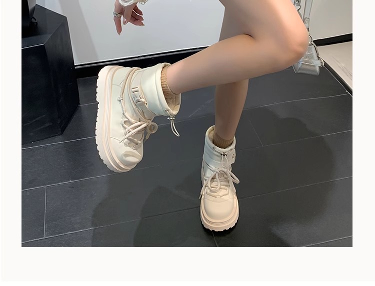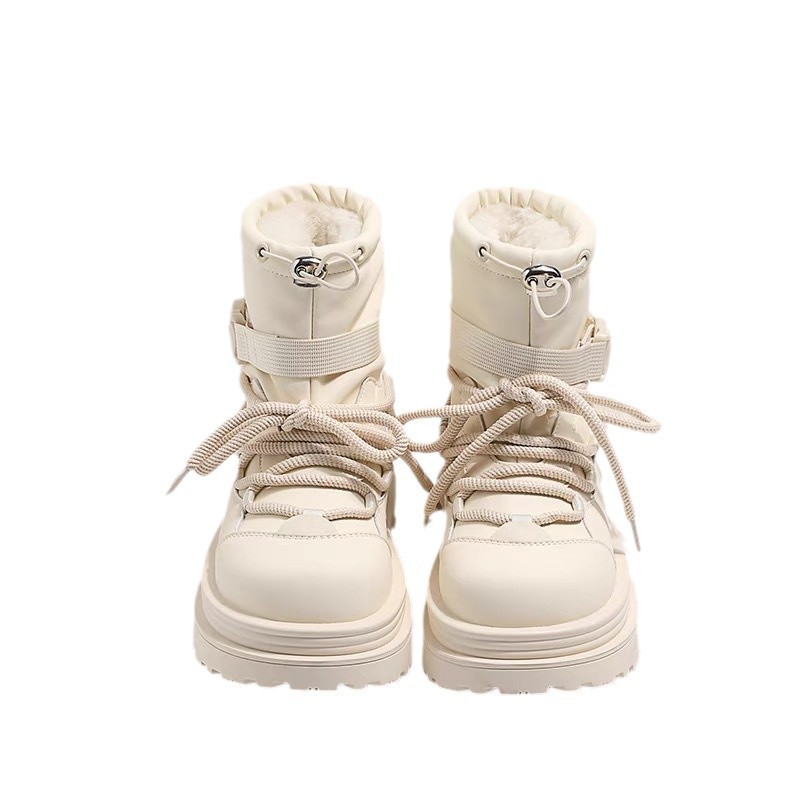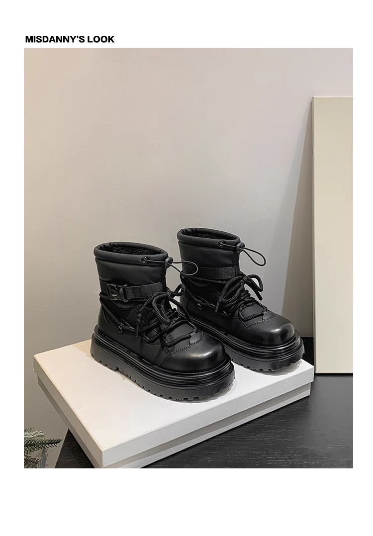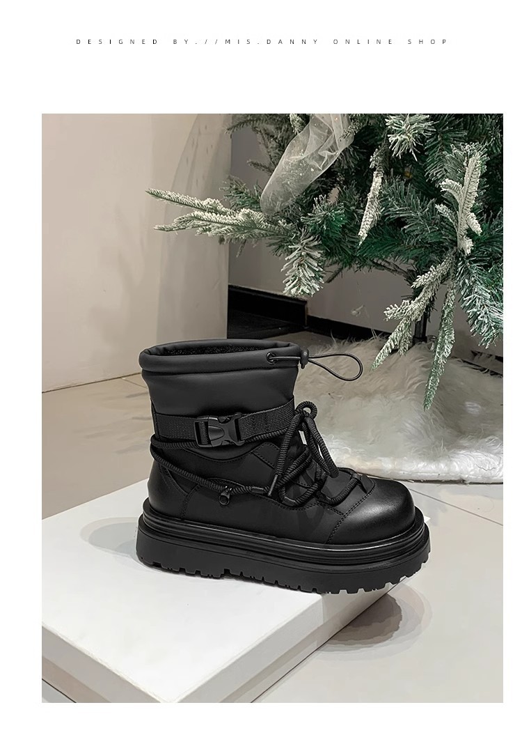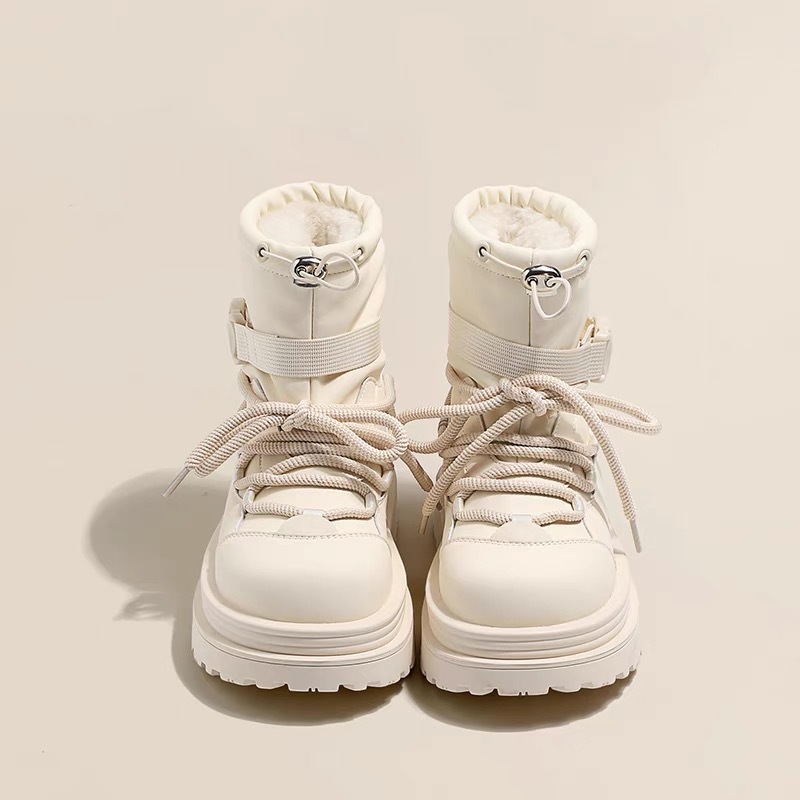 여성용 두꺼운 밑창 스노우 부츠 2024 새로운 겨울 기모 두꺼운 북동쪽 큰면 신발 방수 미끄럼 방지 마틴 짧은 부츠
