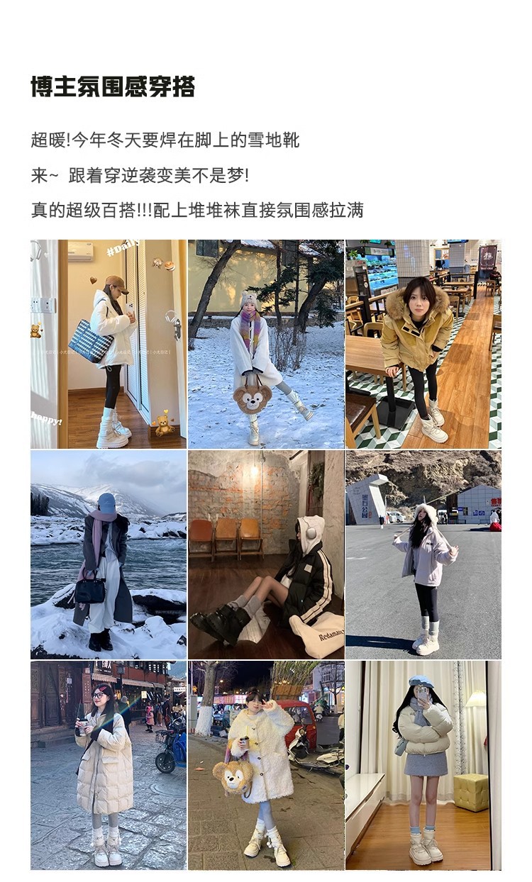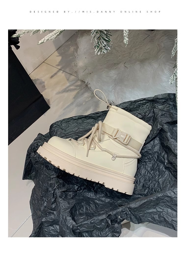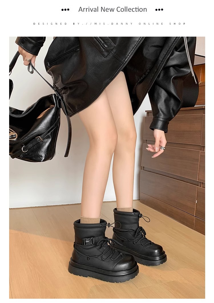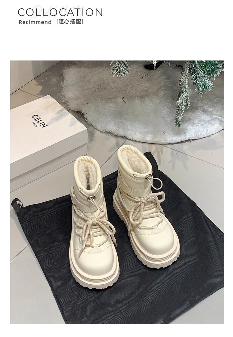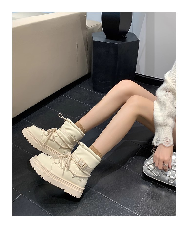 여성용 두꺼운 밑창 스노우 부츠 2024 새로운 겨울 기모 두꺼운 북동쪽 큰면 신발 방수 미끄럼 방지 마틴 짧은 부츠