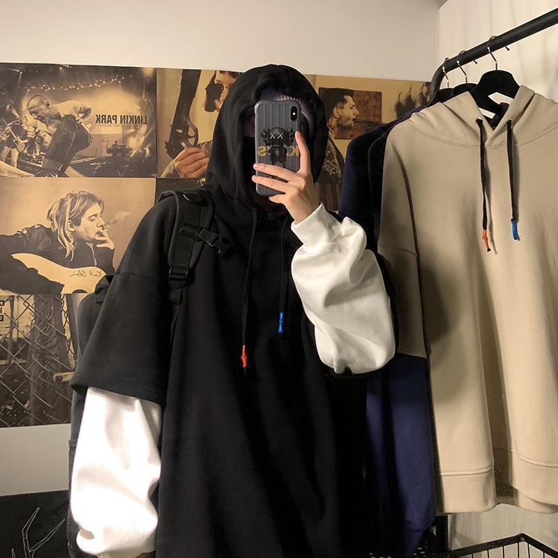 가짜 투피스 스웨트 셔츠 남성 후드 가을 겨울 패션 브랜드 인 힙합 탑 가을 특대 틈새 하이 스트리트 재킷