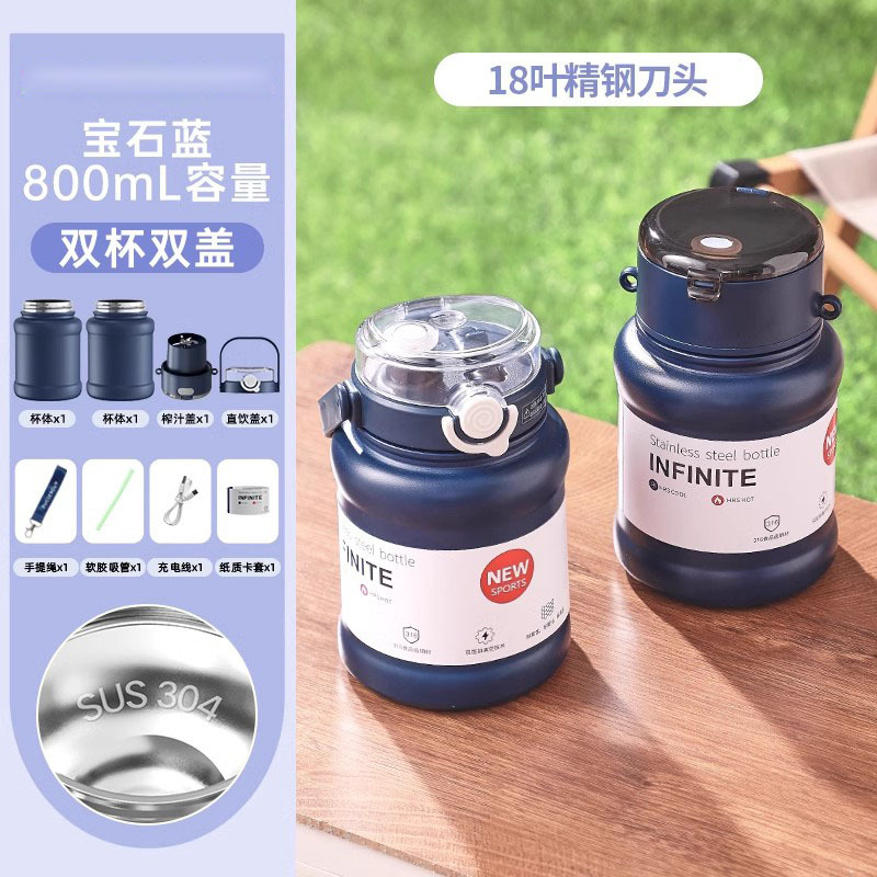 이중 진공 스테인리스 주스컵 가정용 얼음 분쇄 가능 믹서 주스기 이중 뚜껑 주스컵 도매