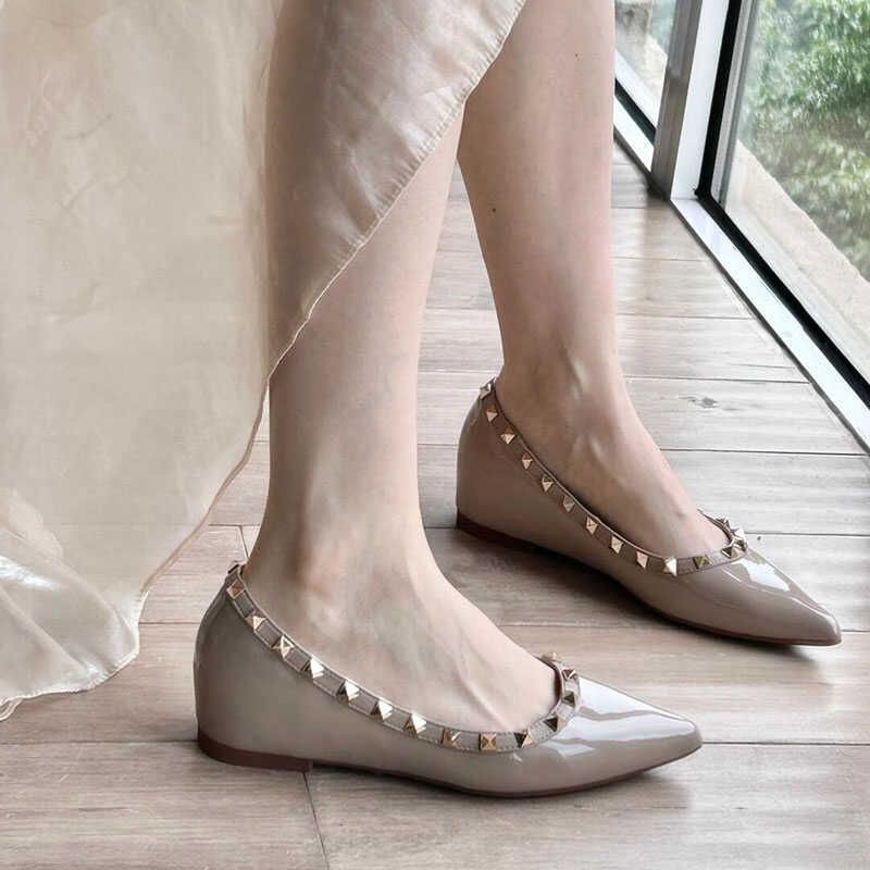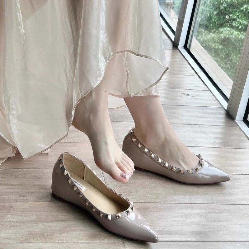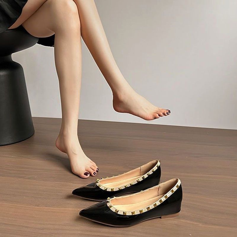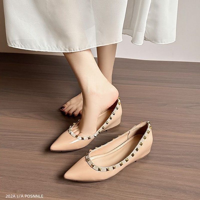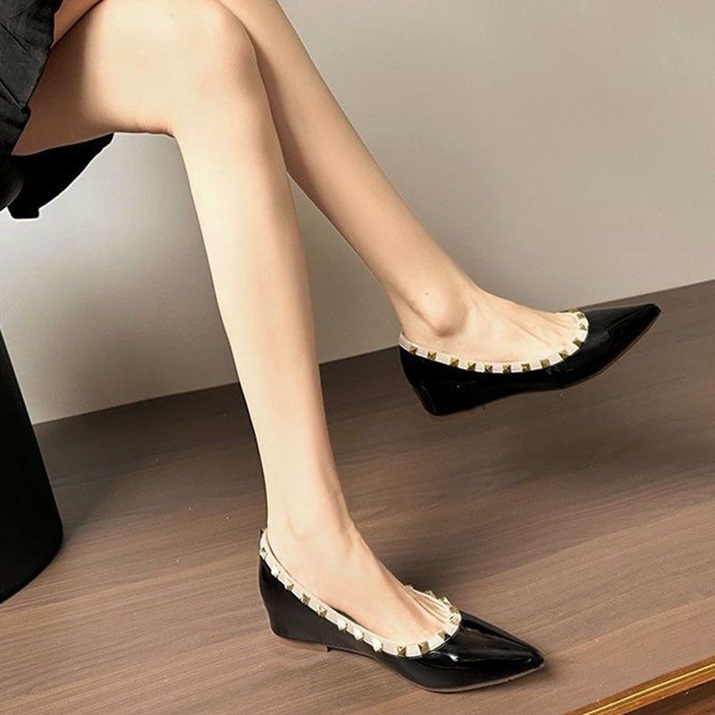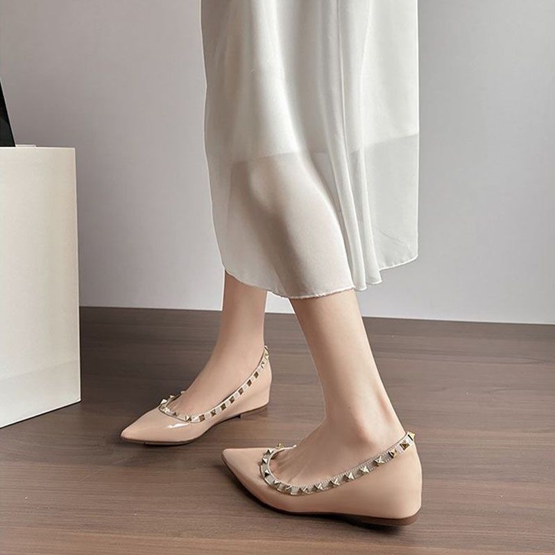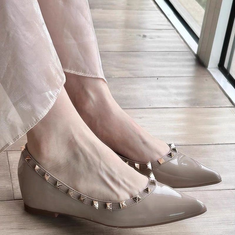 메리 제인 작은 5 cm 내부 높이 리벳 포인팅 신발 여성의 2024 새로운 스타일 슬립 온 신발 보트 신발