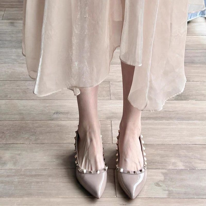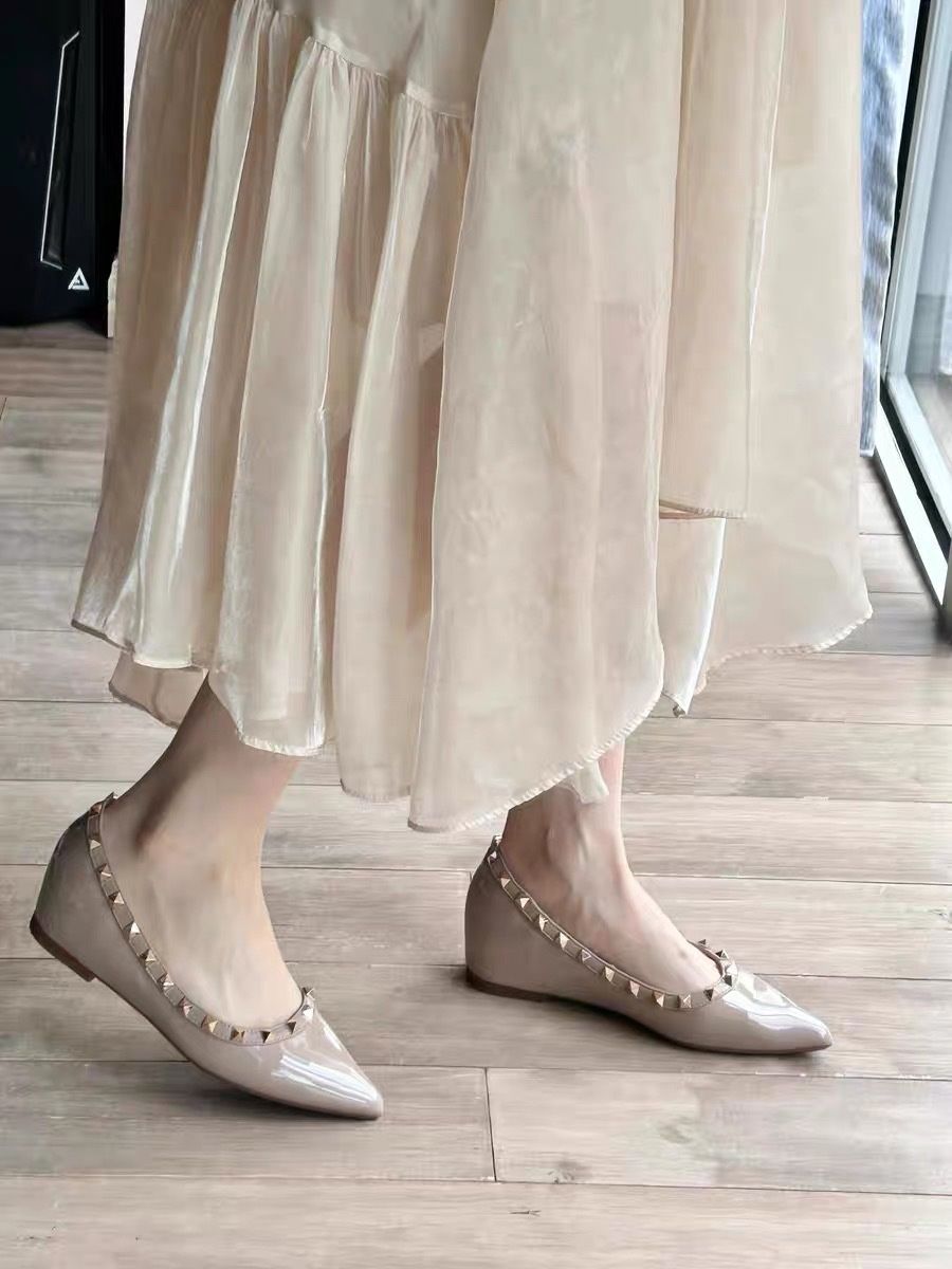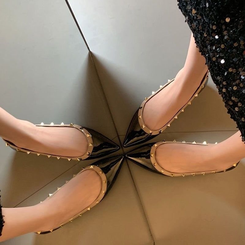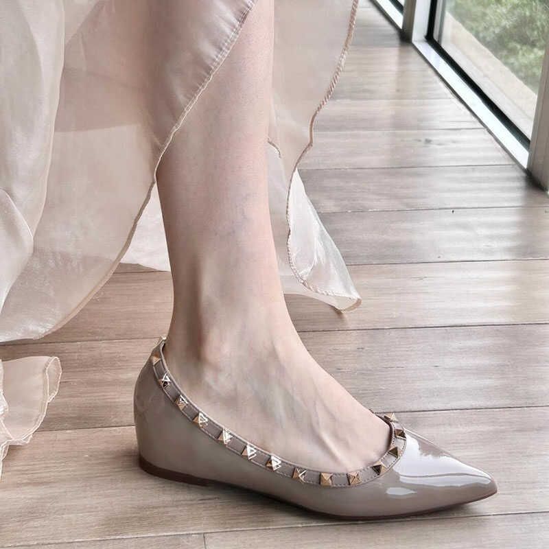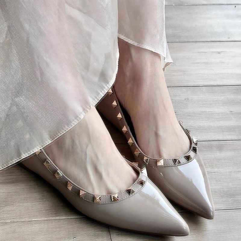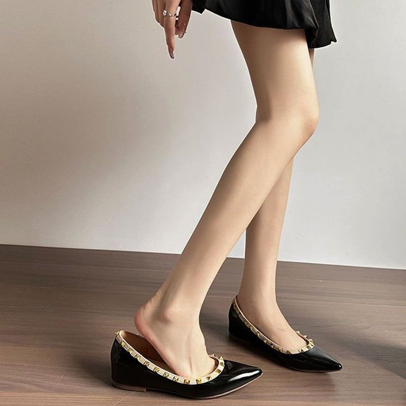 메리 제인 작은 5 cm 내부 높이 리벳 포인팅 신발 여성의 2024 새로운 스타일 슬립 온 신발 보트 신발