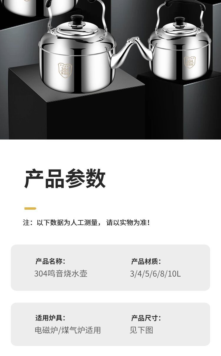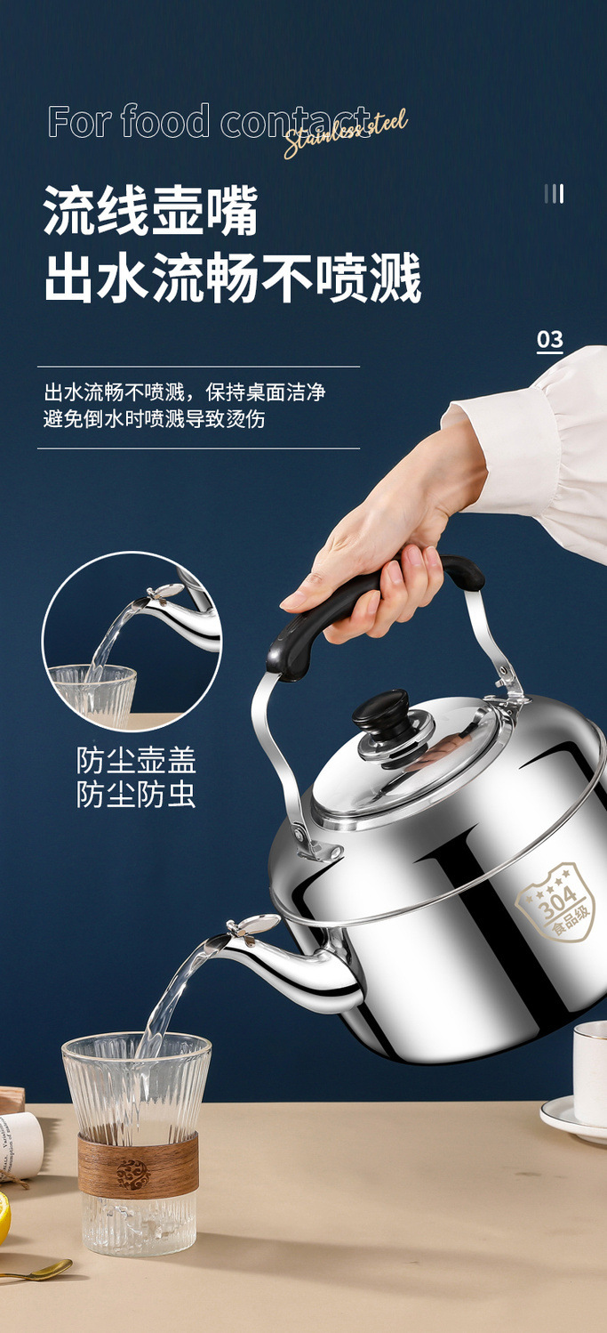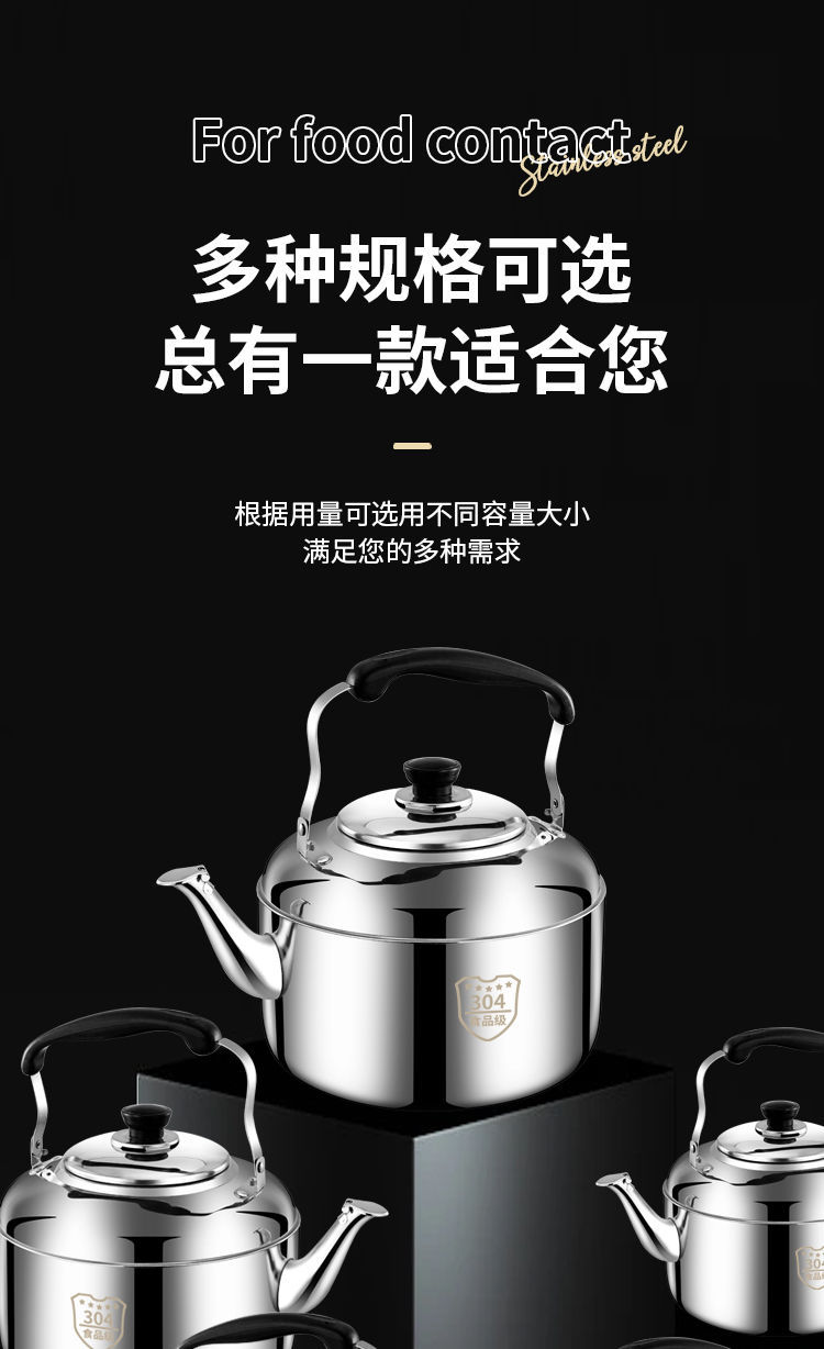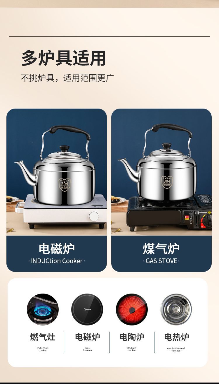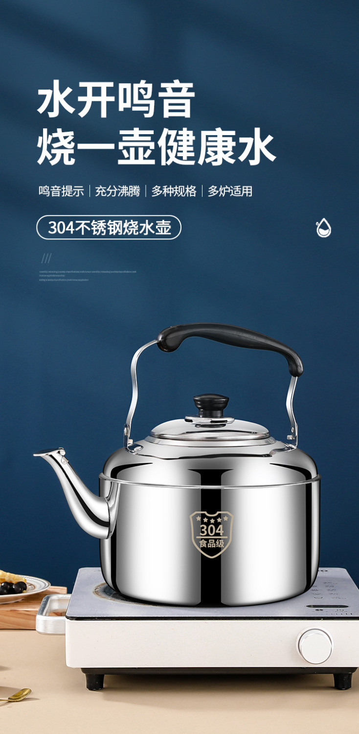 국경 스테인레스 스틸 304 사운드 주전자 상업용 대용량 주전자 유도 쿠커 가스 오픈 불꽃 주전자
