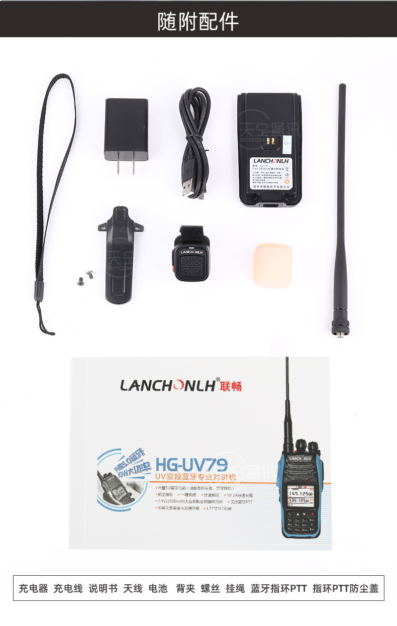 Lianchang HG-UV79 블루투스 인터폰 핸드스탠드 10W 항공, UV 더블 세그먼트 라이딩 오토바이 Vimeitong 수신